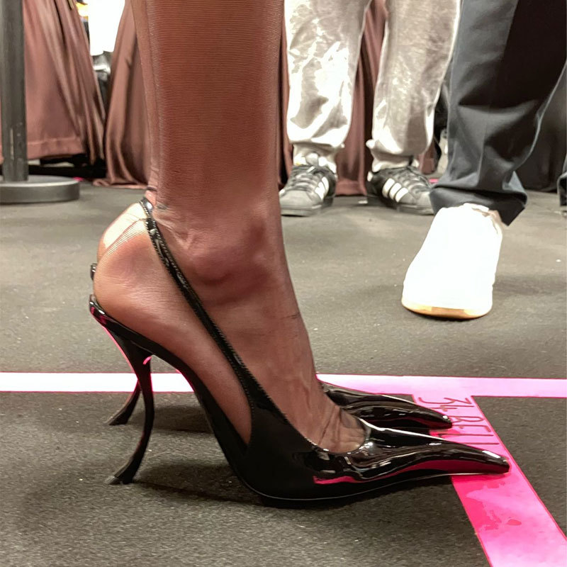 유럽 및 미국 무역 봄 여름 신상 레트로 스타일 여성용 하이힐 뾰족코 오픈백 빅사이즈 구두