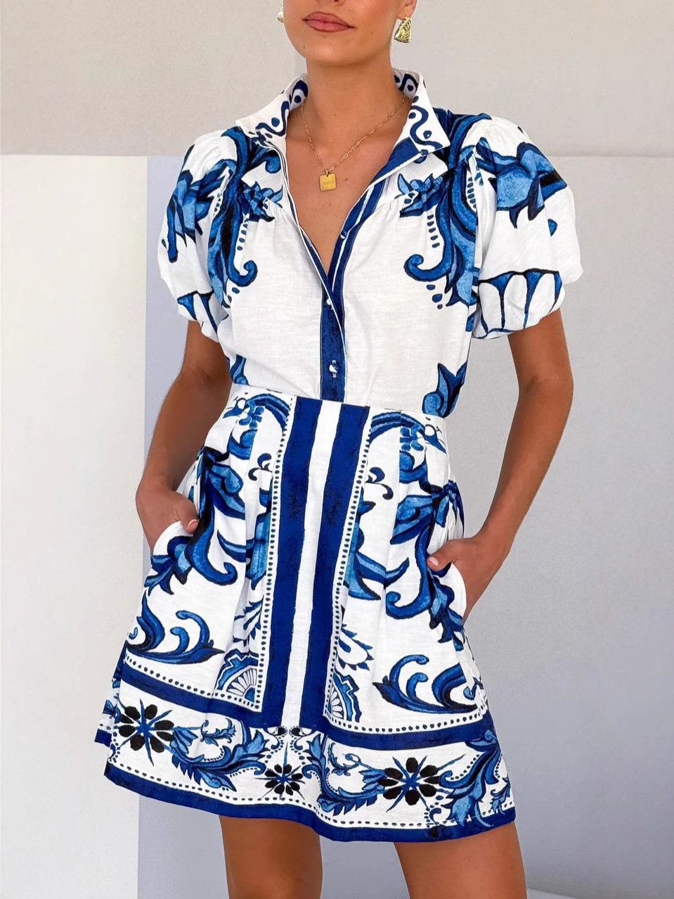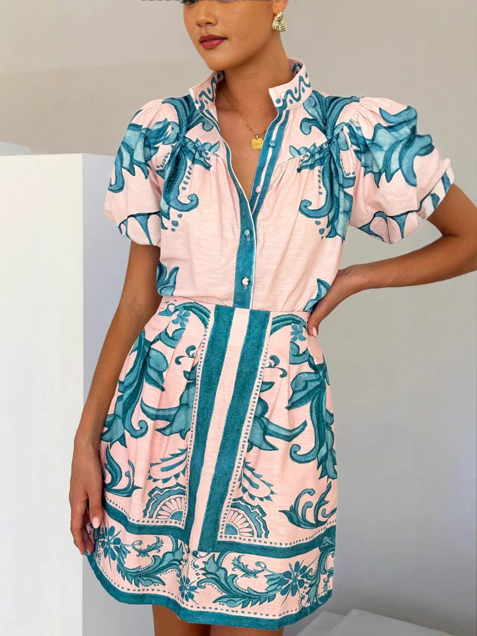 유럽과 미국의 국경을 넘나드는 2026년 신상품, 알리익스프레스, 아마존, 독립 홈페이지, 캐주얼 패션, 퍼프 소매, 린넨 짧은 스커트 세트