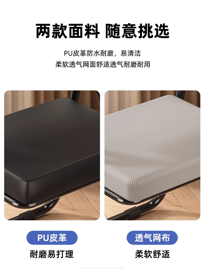 휴대용 [두꺼운 철제 프레임 + 두꺼워진 등쿠션] 가죽 블랙