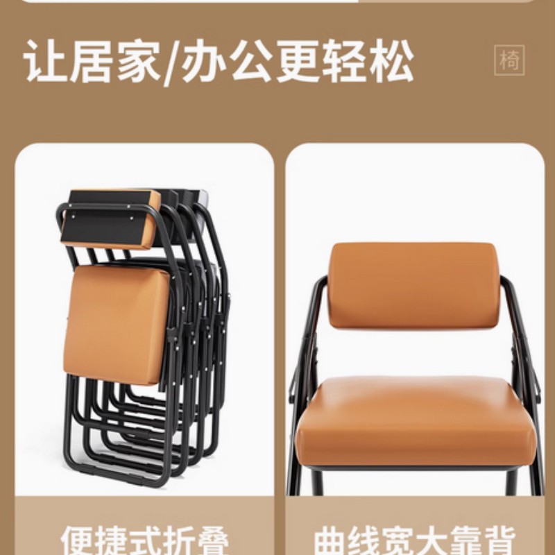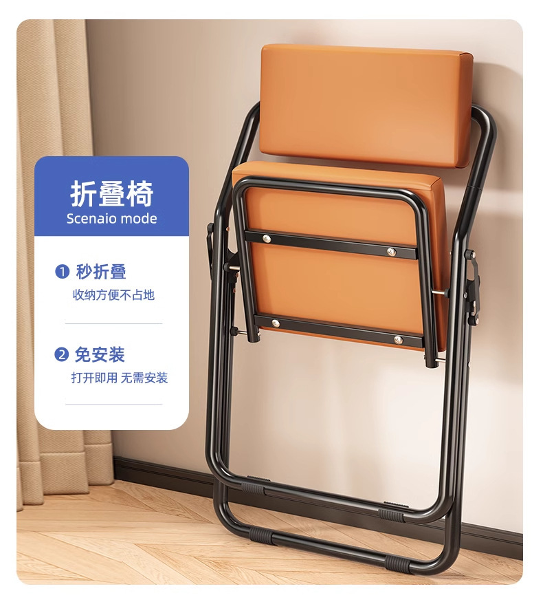 휴대용 [두꺼운 철제 프레임 + 두꺼워진 등쿠션] 가죽 오렌지