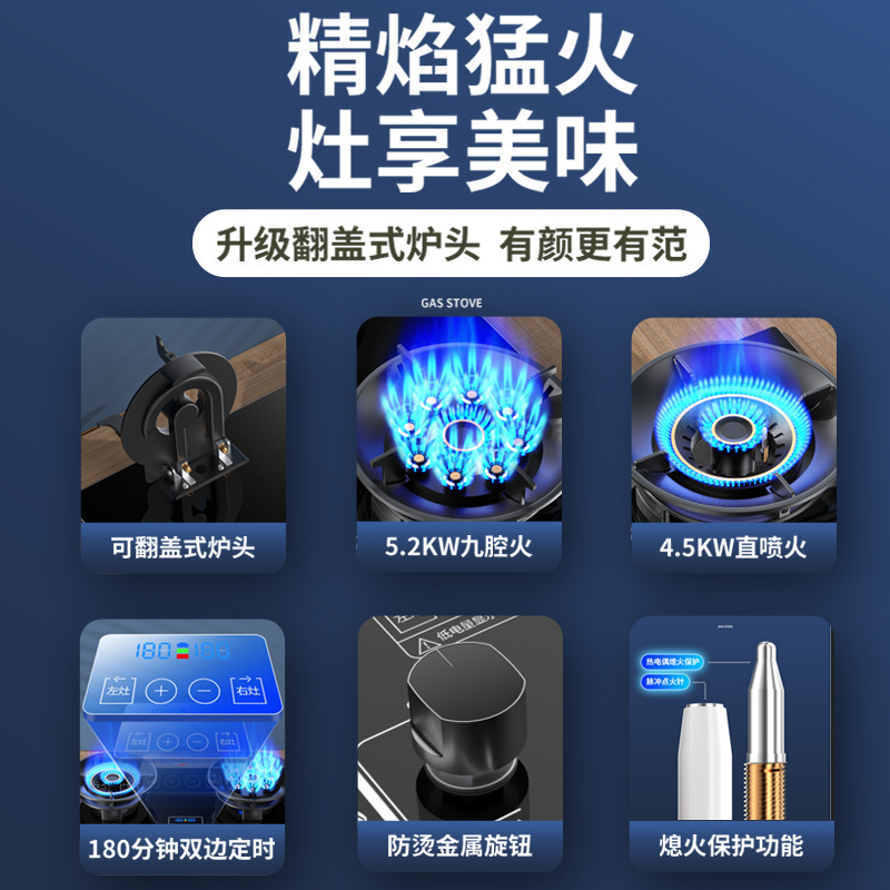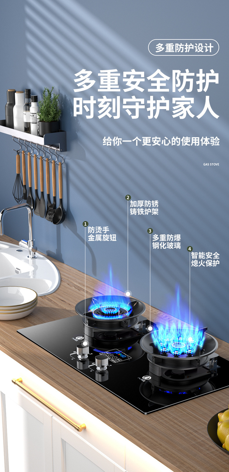 좋은 아내 Xi Wannian 가스 스토브 가정의 날 가스 스토브 더블 스토브 임베디드 불꽃 보호 내장 가스 스토브