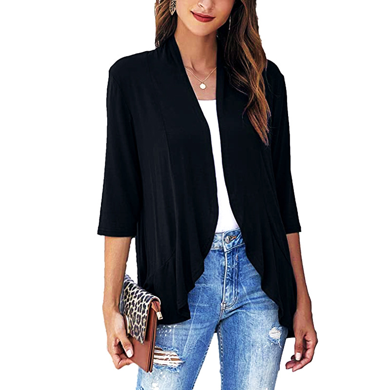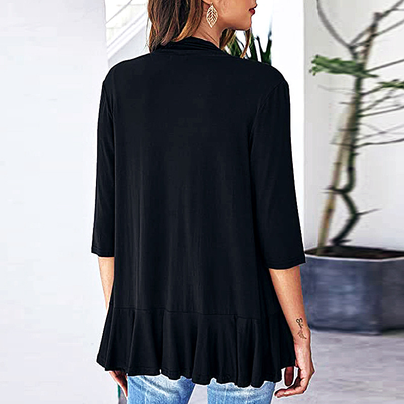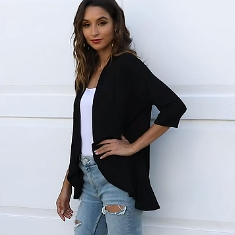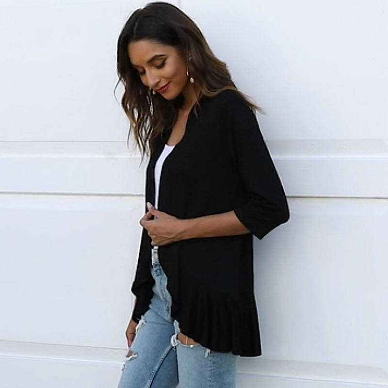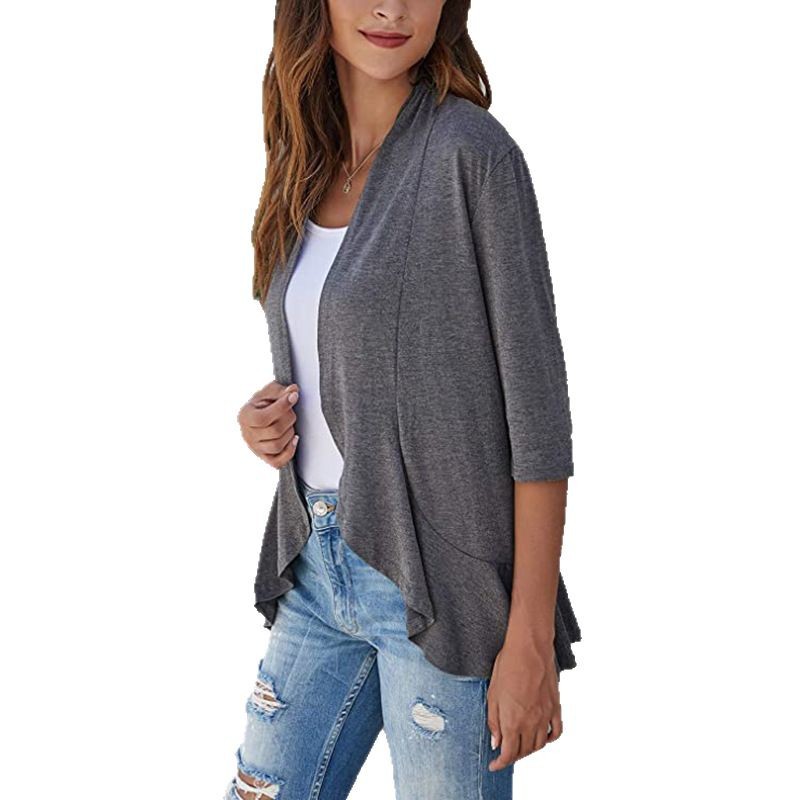 국경 간 유럽과 미국의 대형 니트 가디건 Amazon 가을 신상 솔리드 컬러 재킷 7부 소매 러플 탑