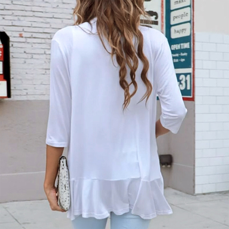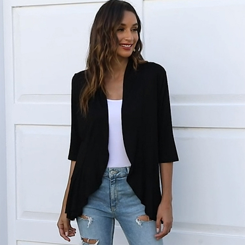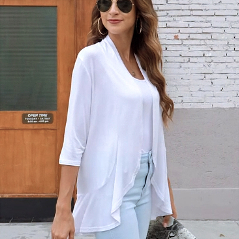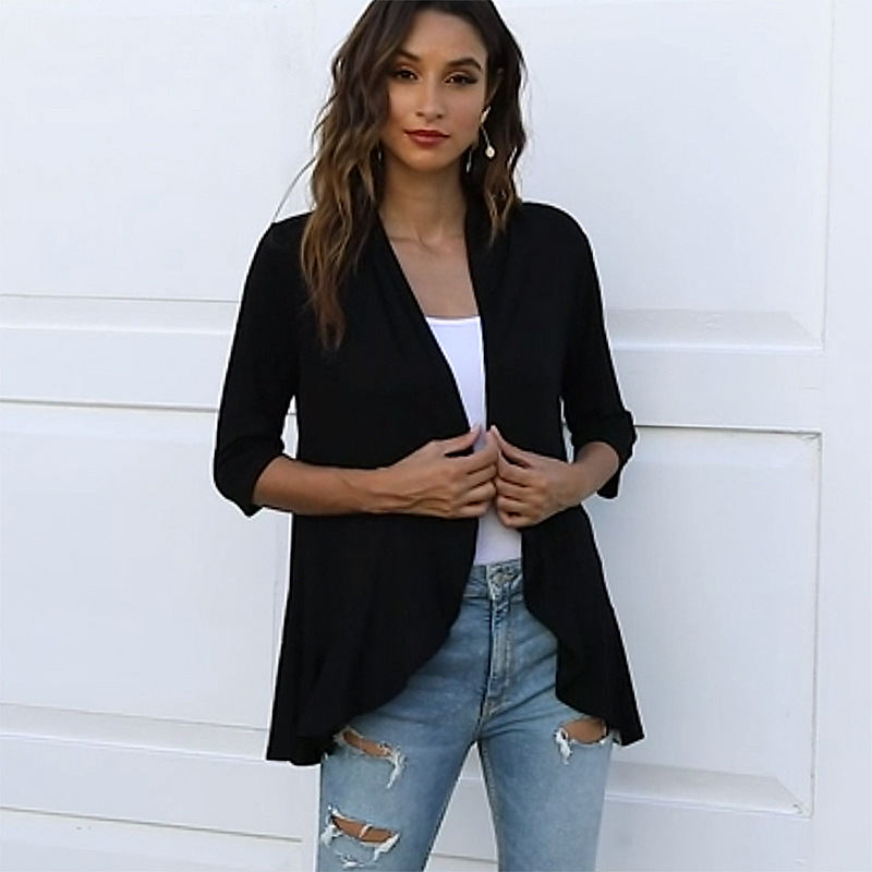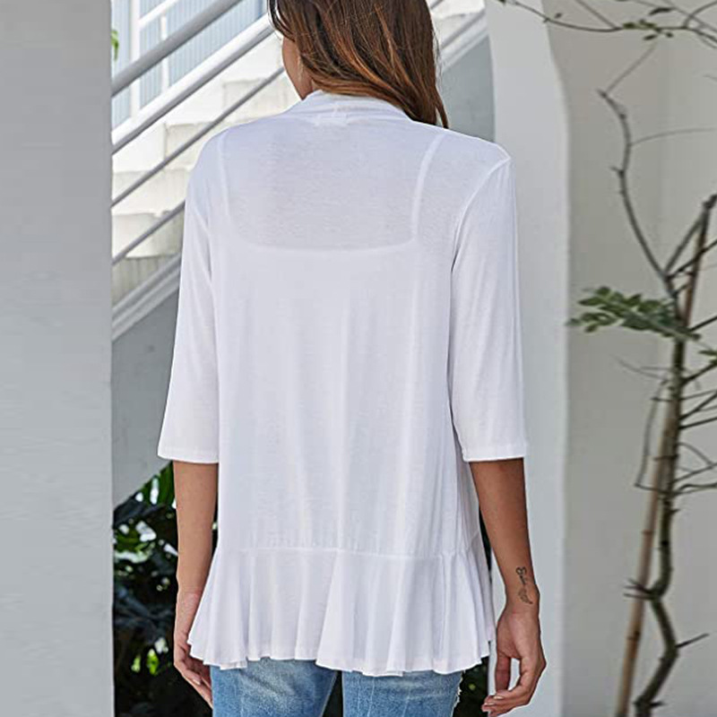 국경 간 유럽과 미국의 대형 니트 가디건 Amazon 가을 신상 솔리드 컬러 재킷 7부 소매 러플 탑