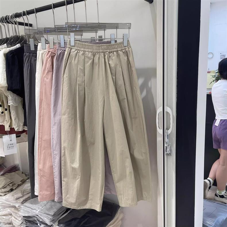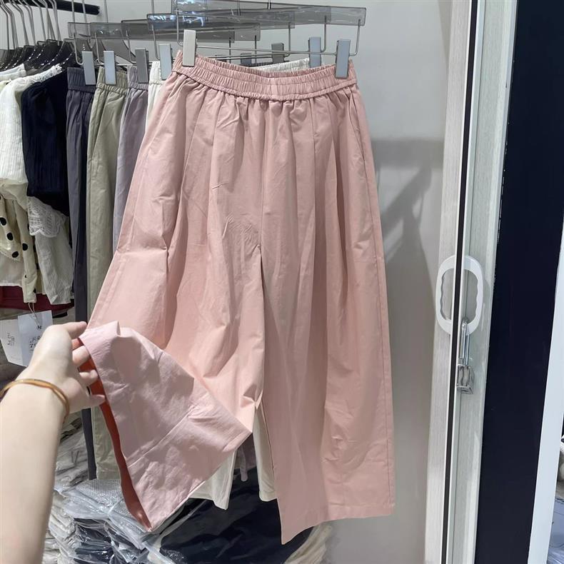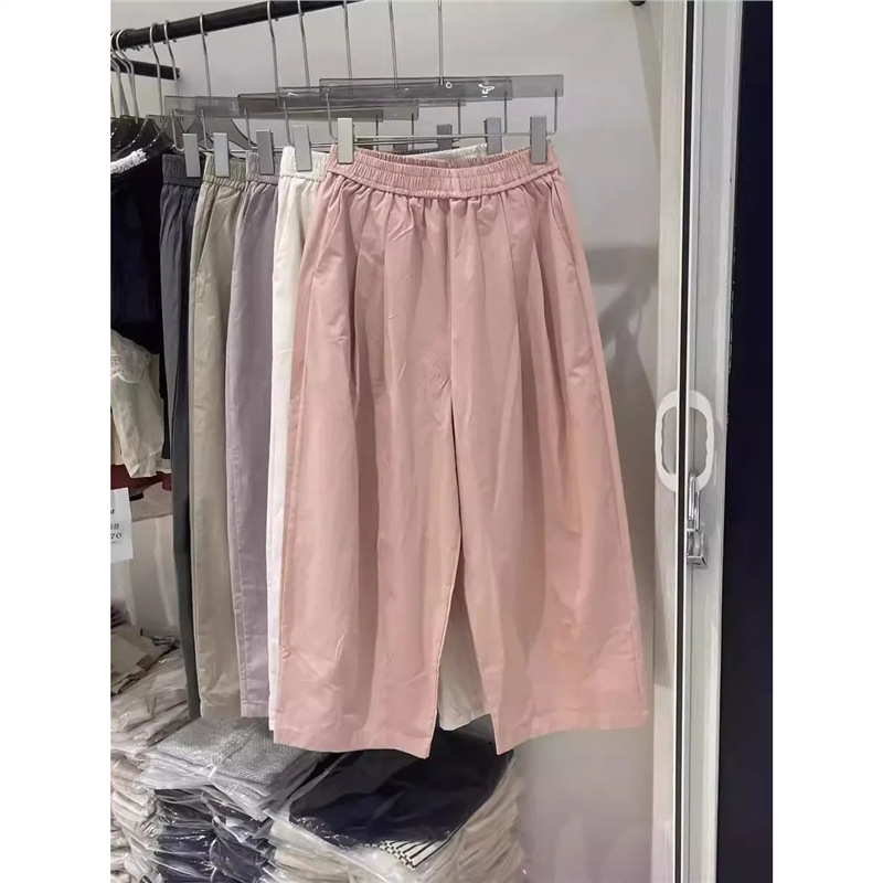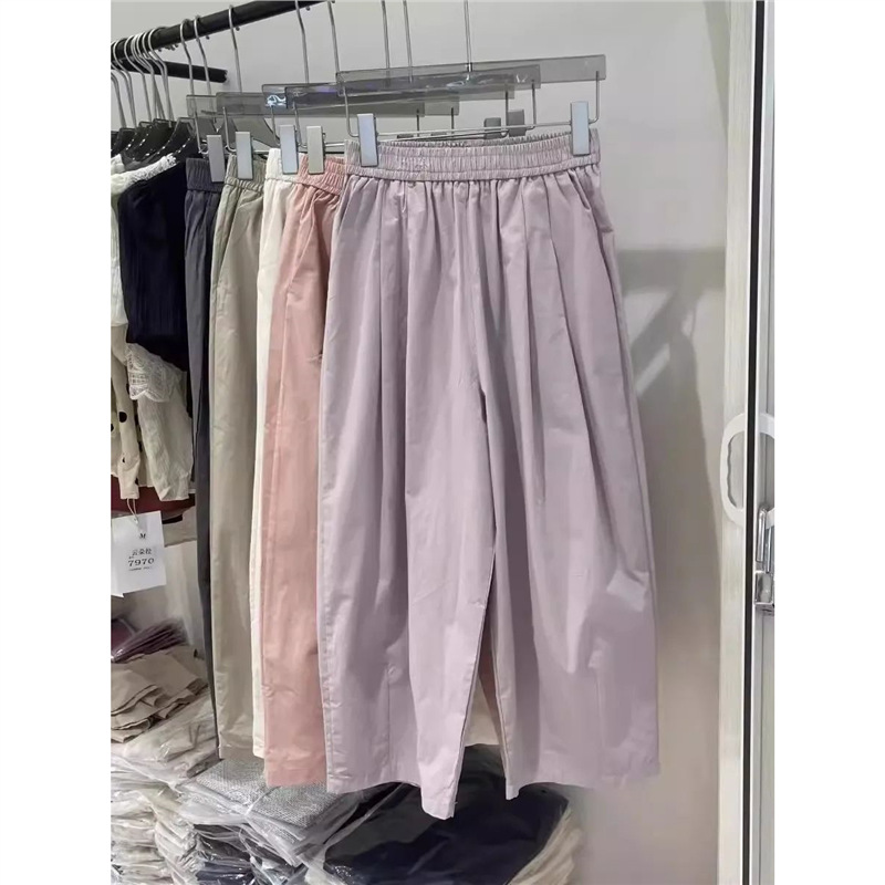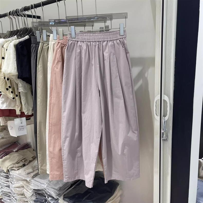 씻은 면화 핑크 할란 바지 여자 여름 2025 새로운 도착 느슨한 올매치 캐주얼 당근 바지