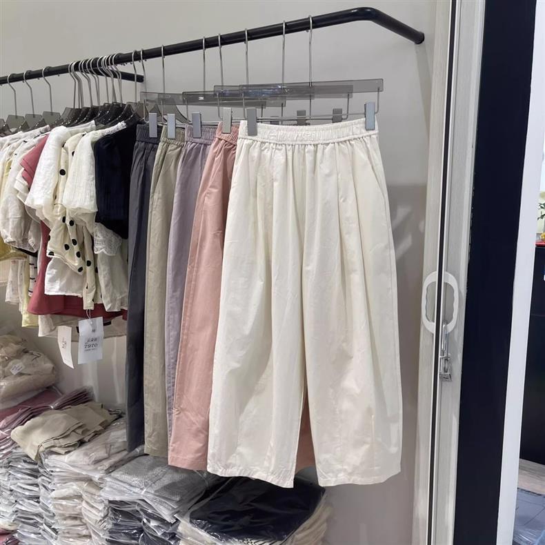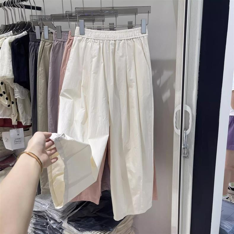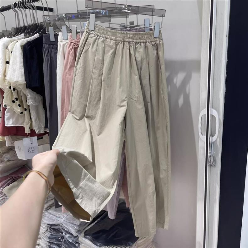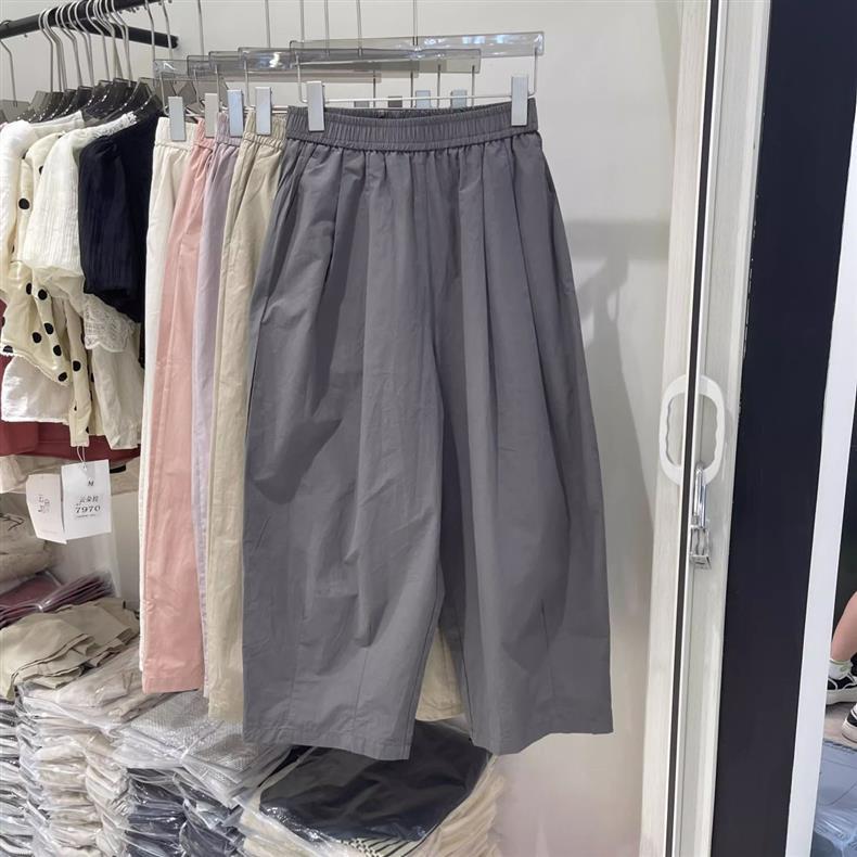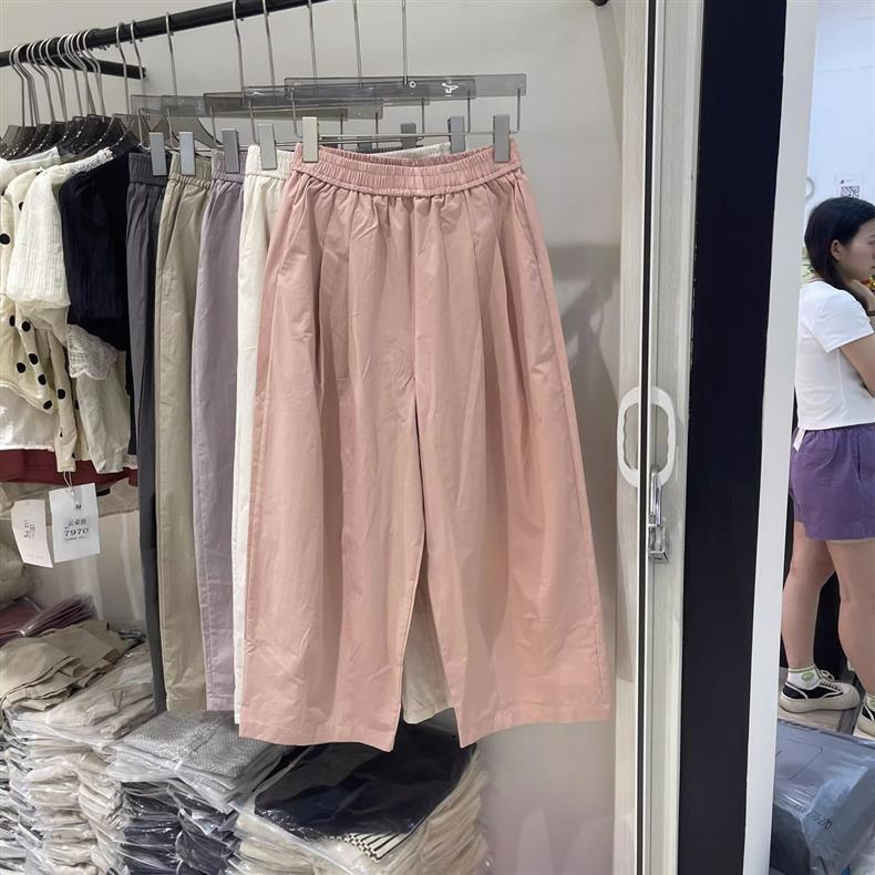 씻은 면화 핑크 할란 바지 여자 여름 2025 새로운 도착 느슨한 올매치 캐주얼 당근 바지