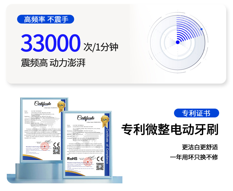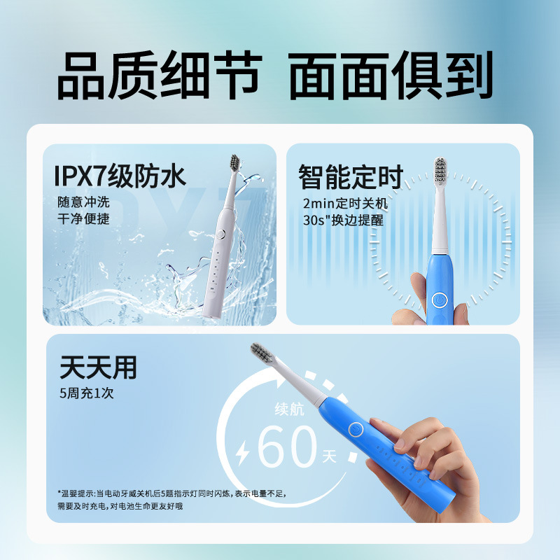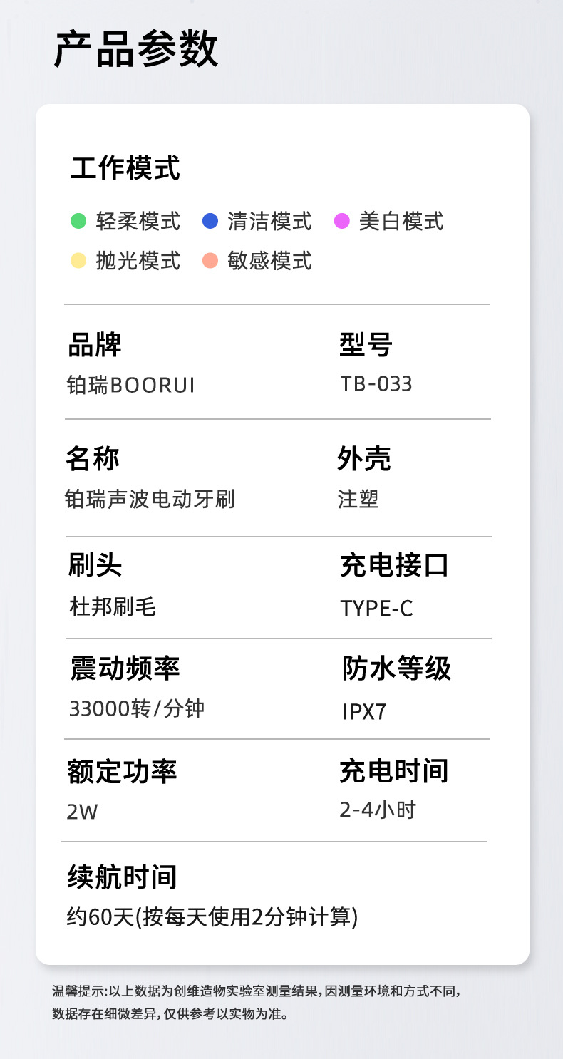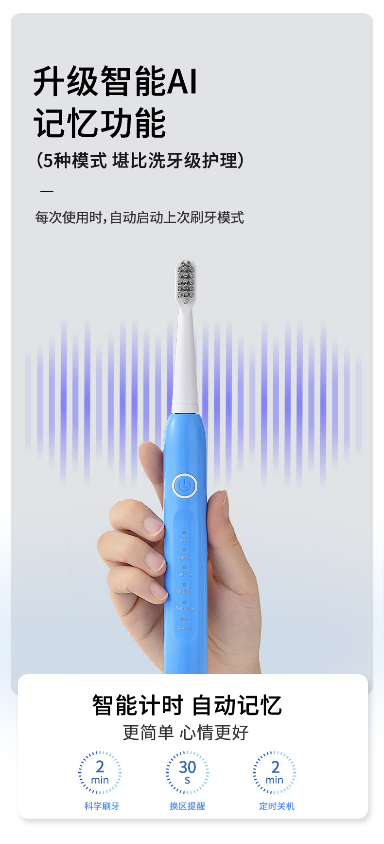 신제품 크로스보더 프리미엄 TB-033 5단 TYPE-C 충전식 세척 가능 음파 전동 칫솔