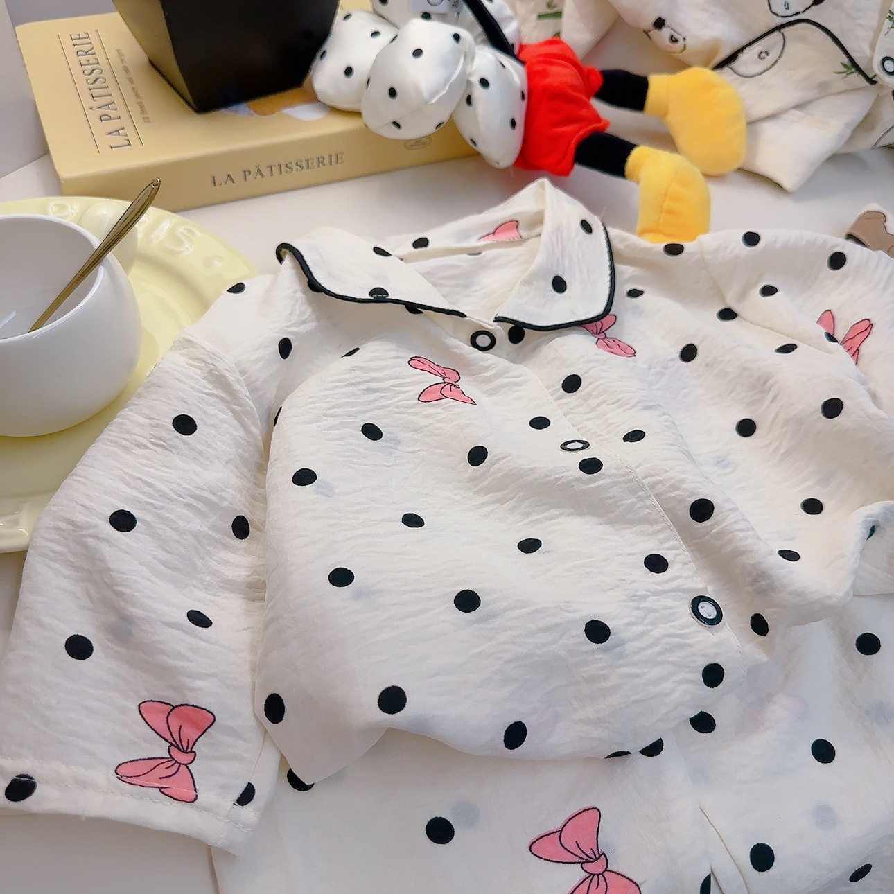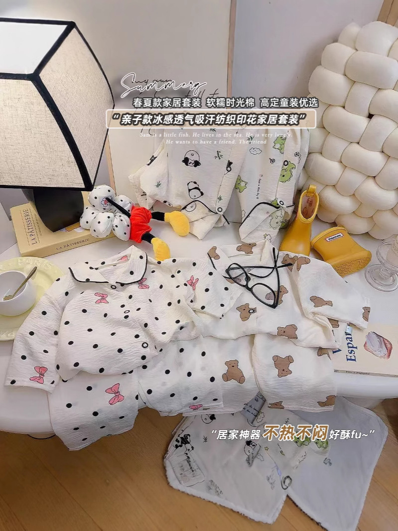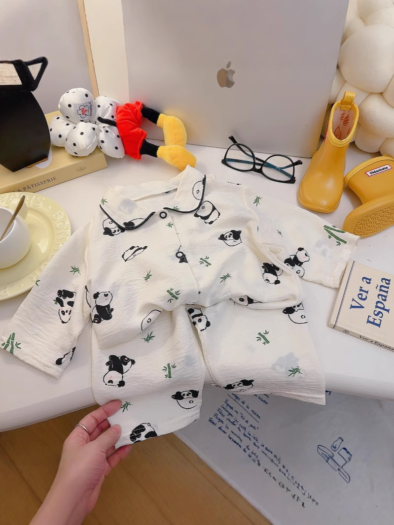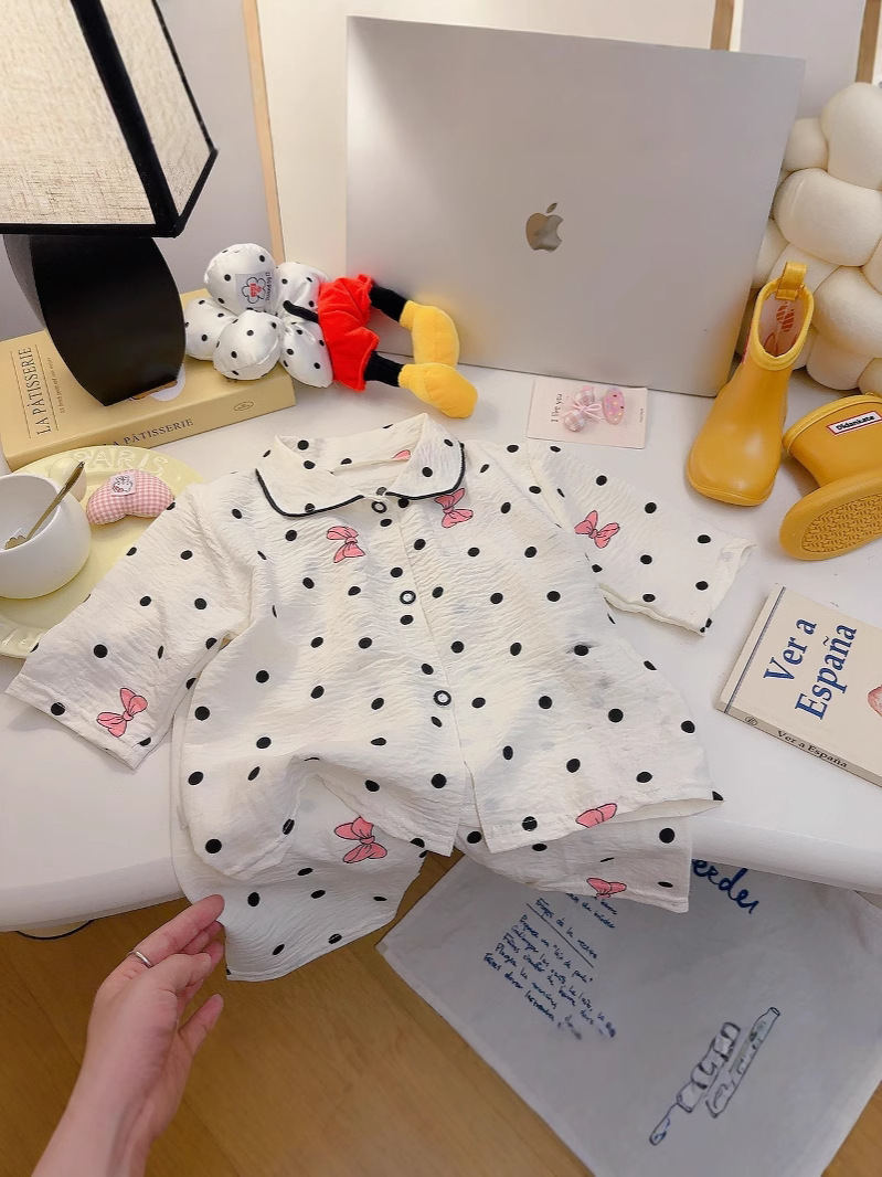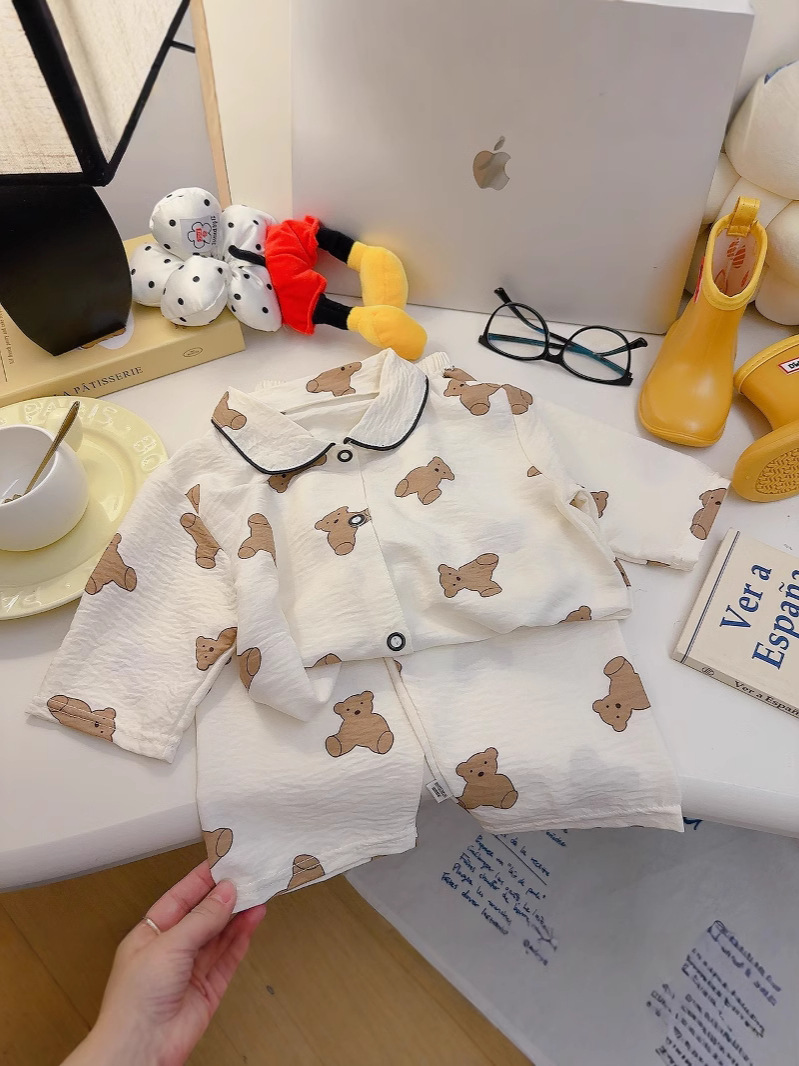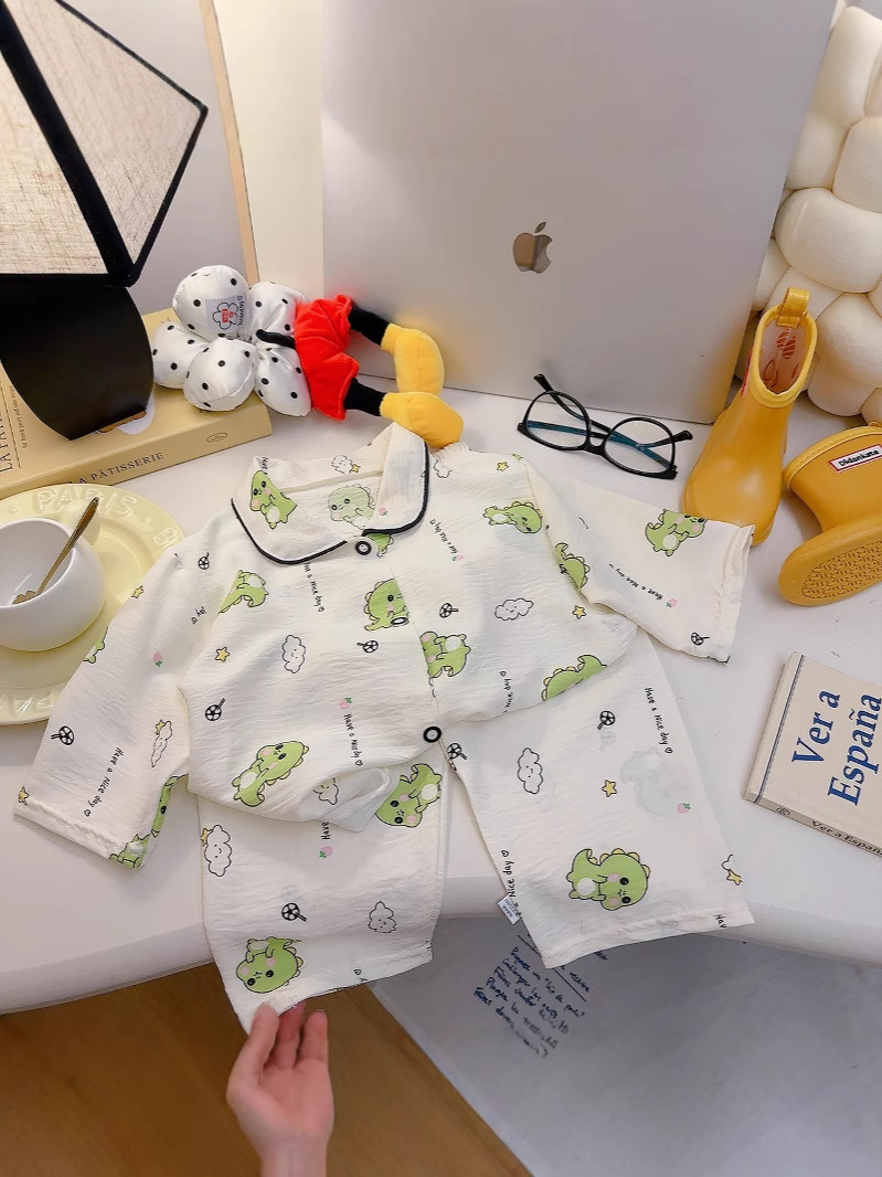 소년과 소녀를위한 여름 어린이 잠옷 2025 새로운 만화 옷깃 가정 의류 세트 얇은 구름 면화 가정 의류