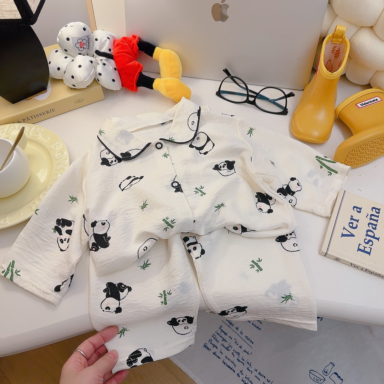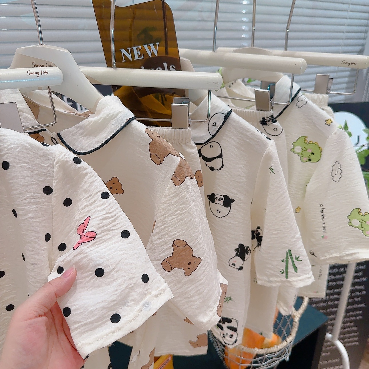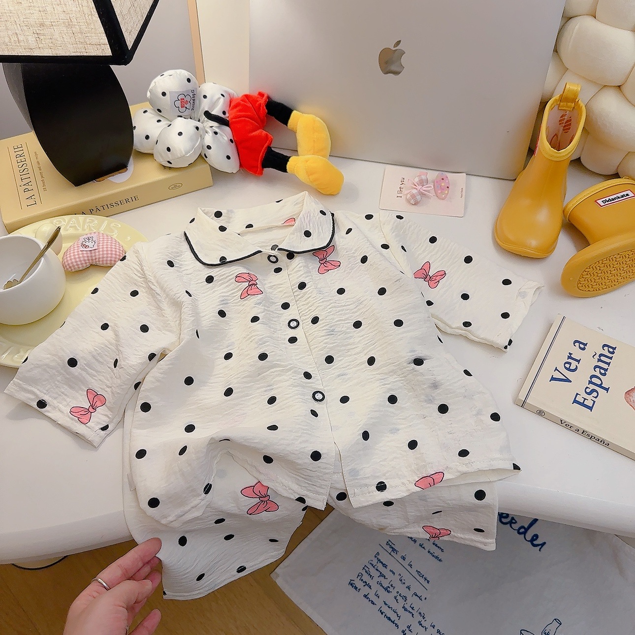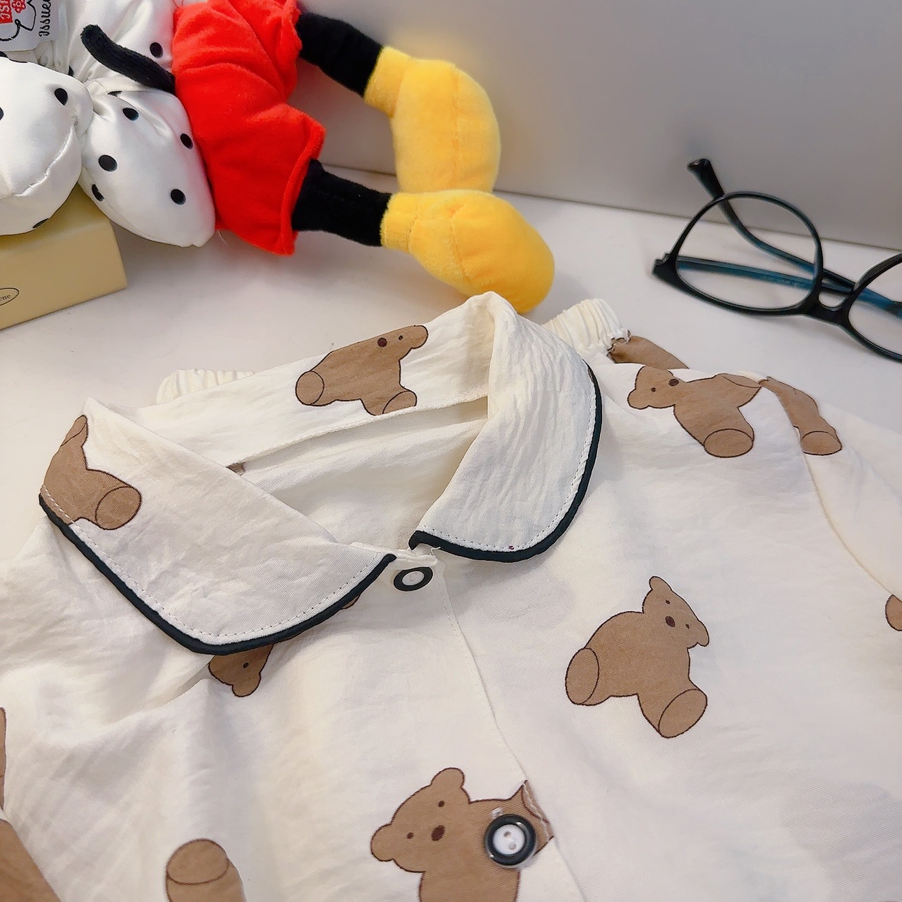 소년과 소녀를위한 여름 어린이 잠옷 2025 새로운 만화 옷깃 가정 의류 세트 얇은 구름 면화 가정 의류