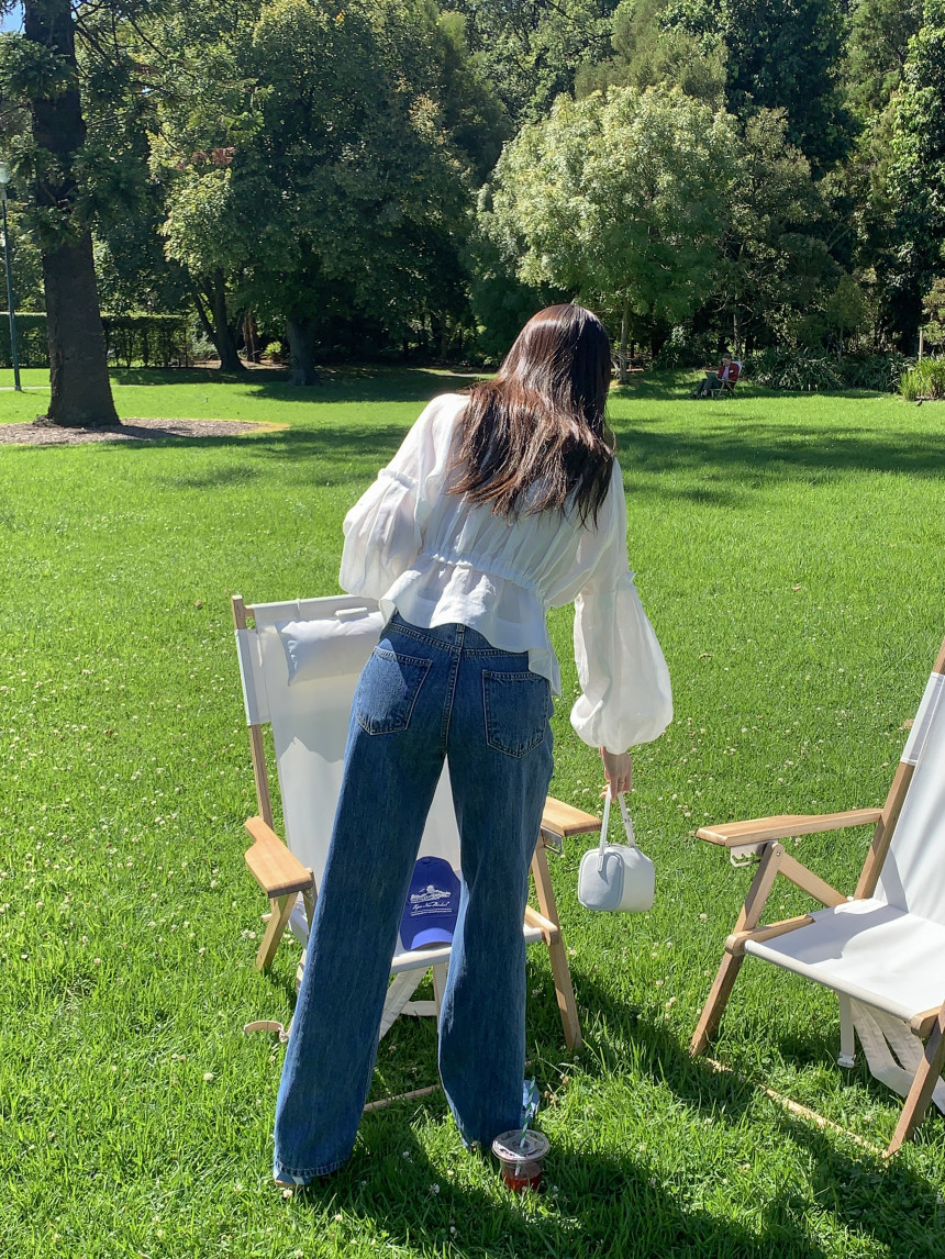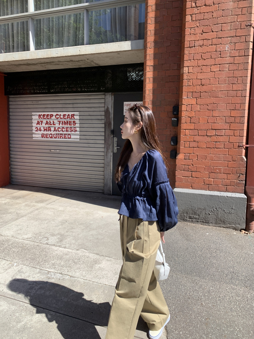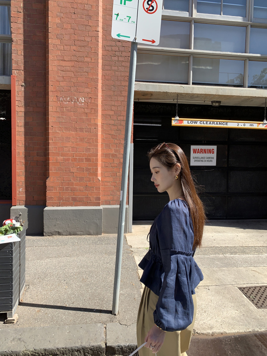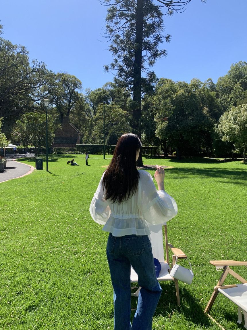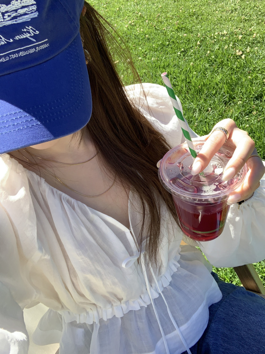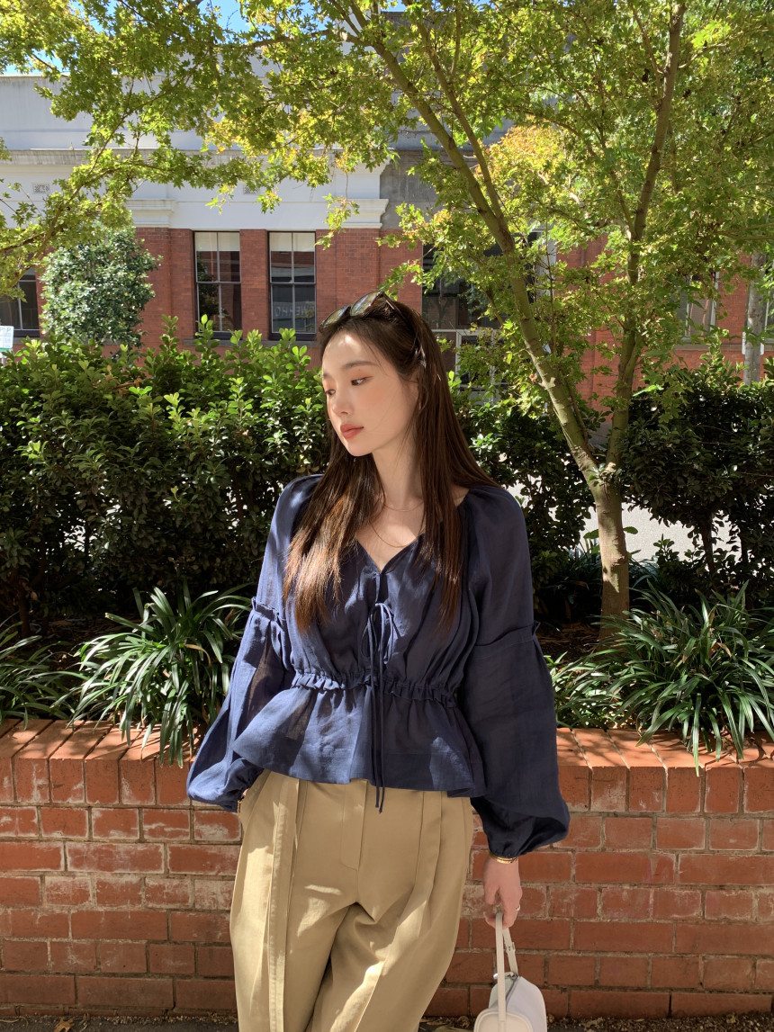 한국 인 프랑스 스타일 V 넥 드로스트링 타이트 허리 버블 슬리브 쉬폰 셔츠 여성의 봄과 여름 새로운 우아한 화이트 셔츠 탑