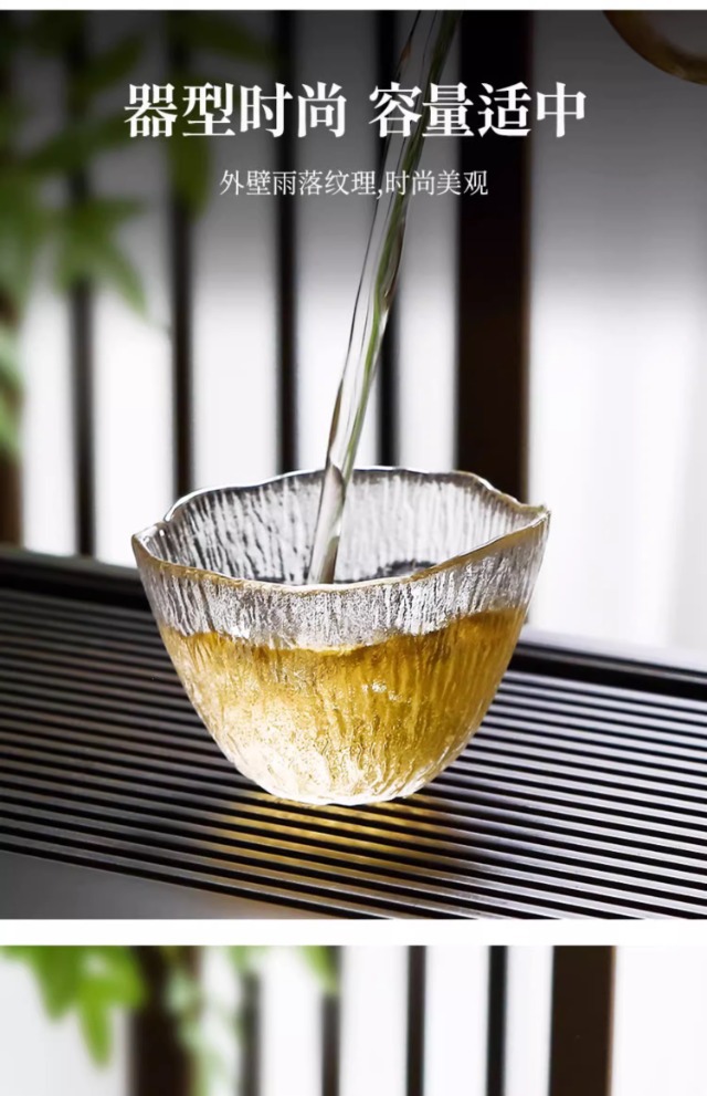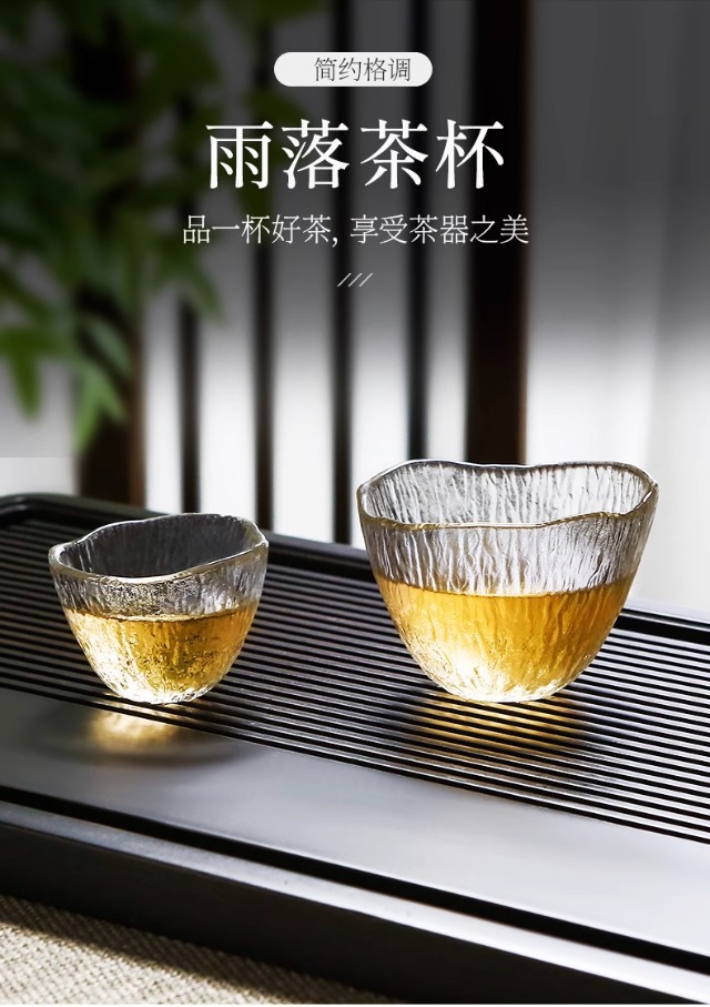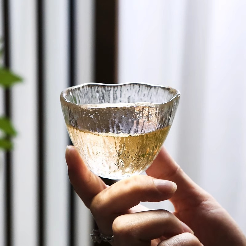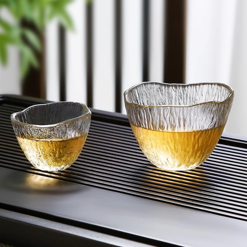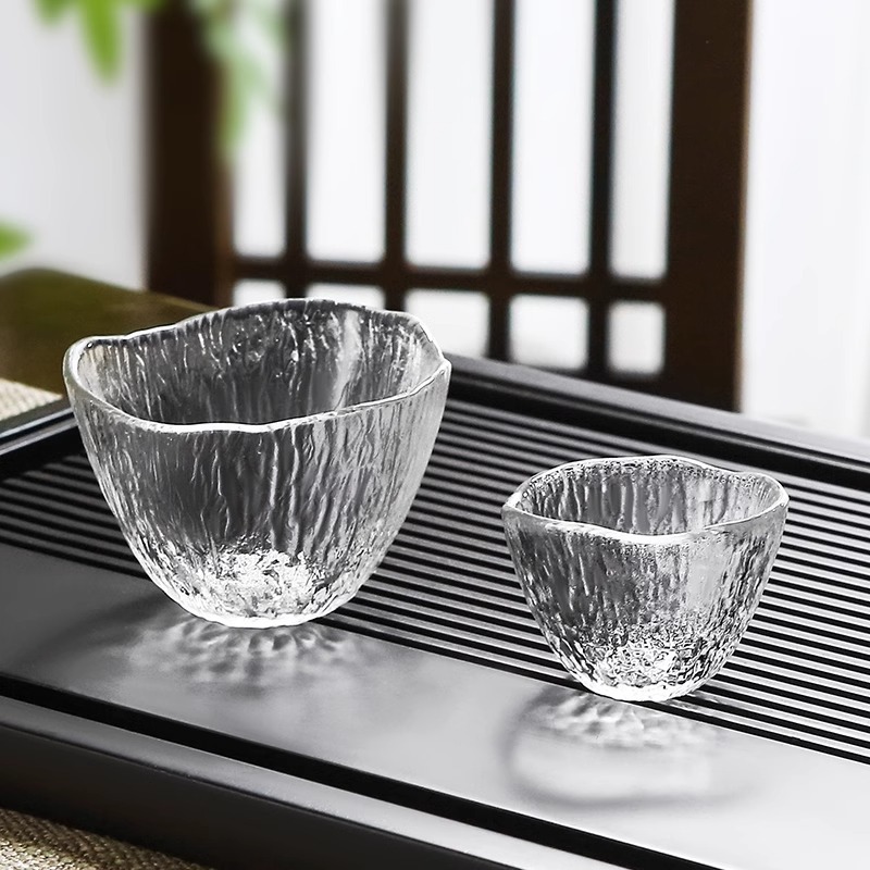 유리 마스터 컵, 레인 드롭 컵, 작은 찻잔, 일본식 쿵푸 차 세트, 찻잔, 찻그릇, 가정용 망치 무늬 컵, 물 및 와인 컵