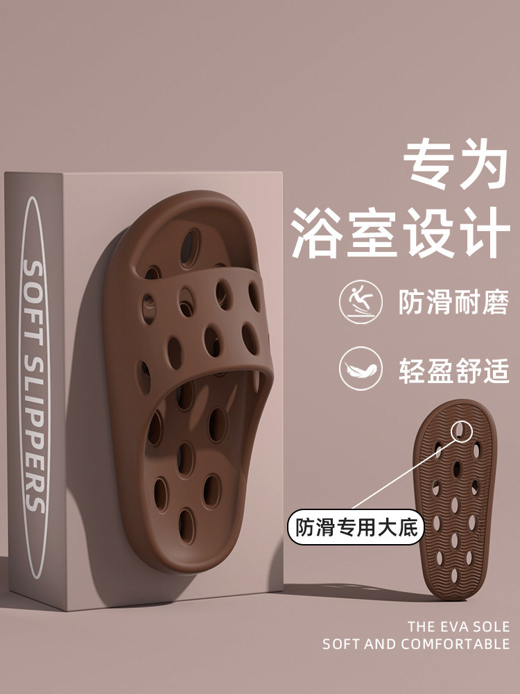가정용 여성용 욕실 에바 누수 샌들, 미끄럼 방지, 냄새 방지, 여름 실내 구멍 신발, 남성용 속건성 슬리퍼