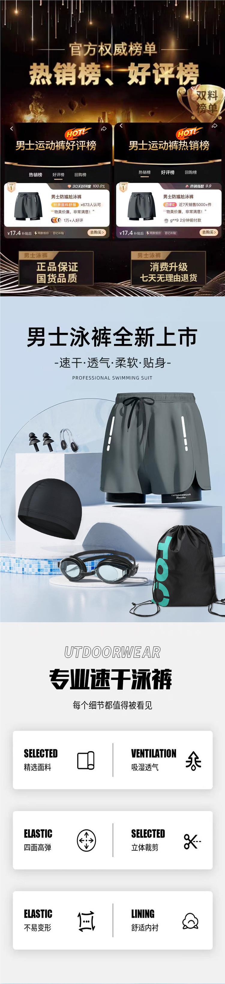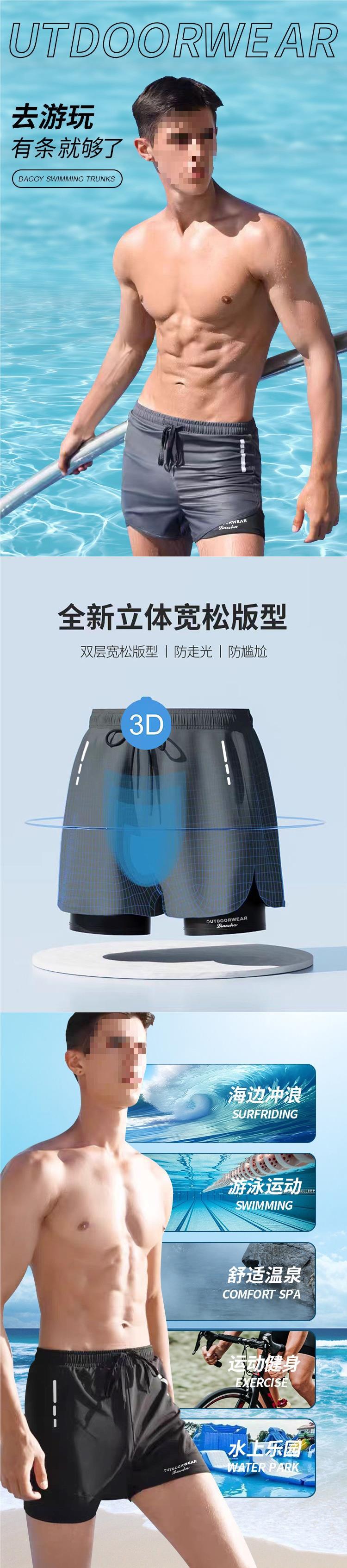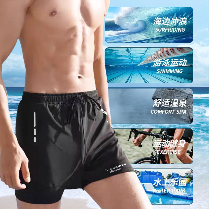 러닝 스포츠 더블 레이어 남성용 어색한 방폭 바지 정장 루즈 비치 바지 크로스 보더 피트니스 스포츠 수영 바지