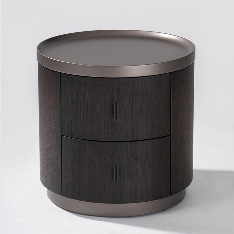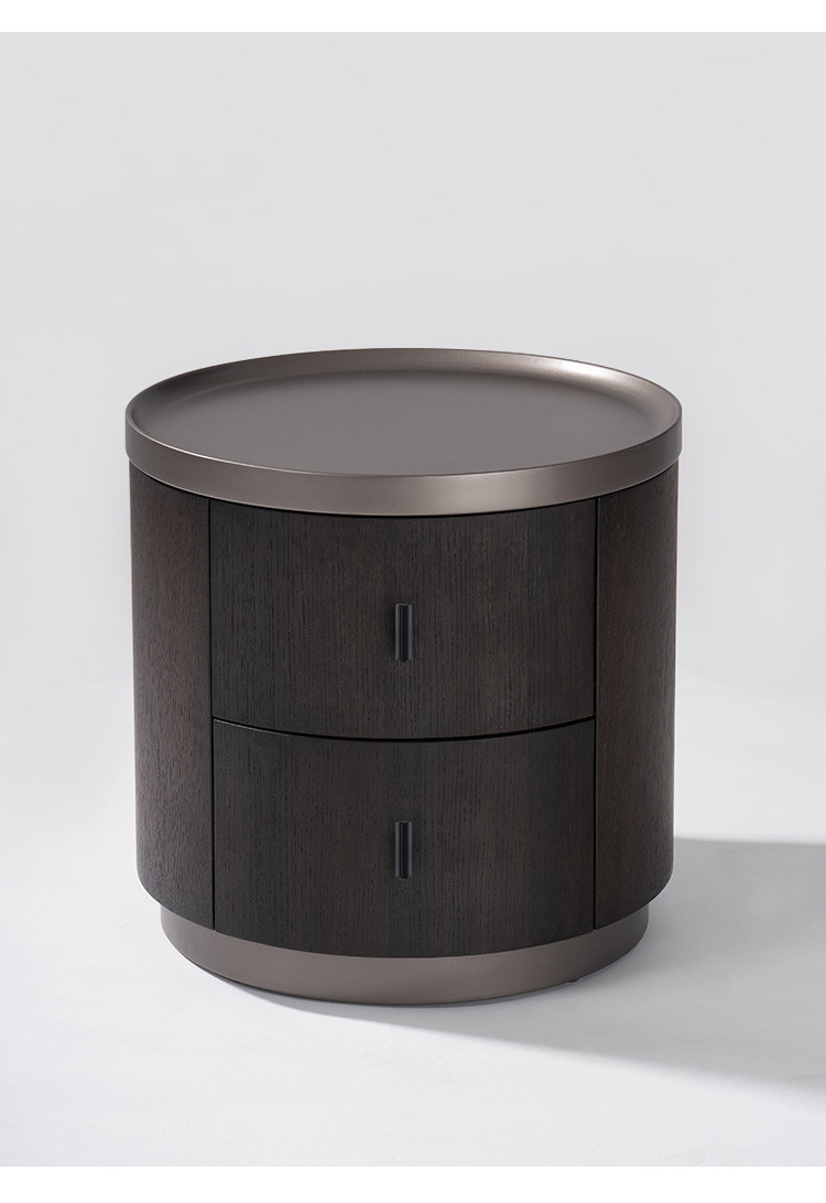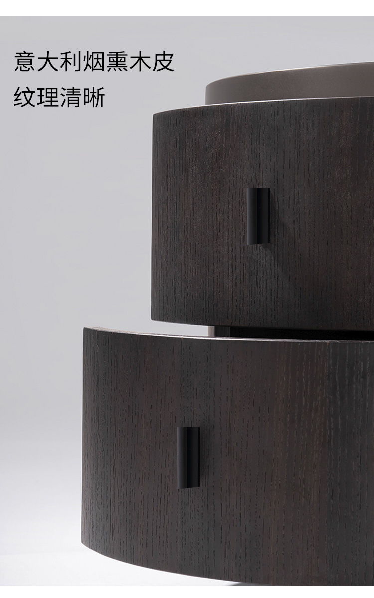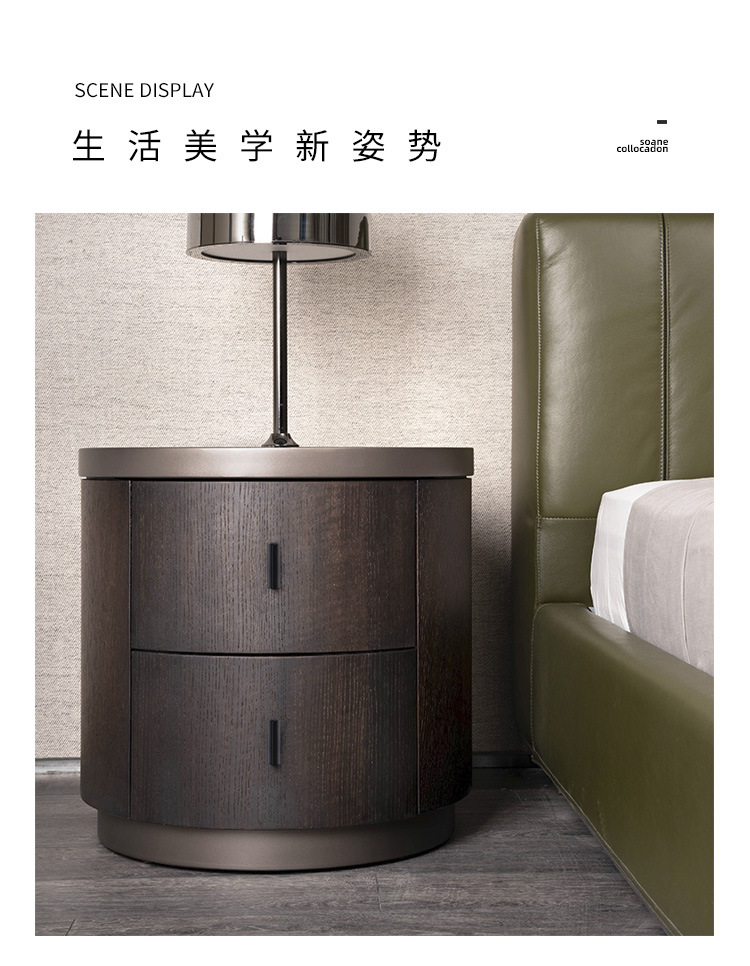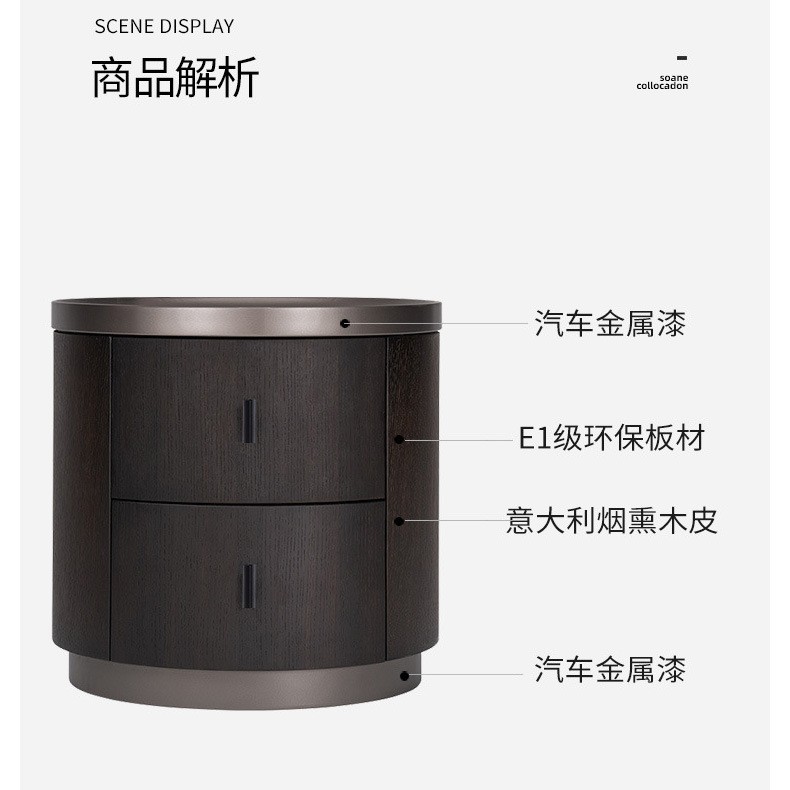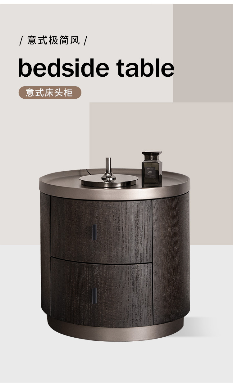 이탈리아 스타일의 미니멀리스트 폴리프롬 스모크 원목 침대협탁, 원형 심플 모던 라운드 캐비닛, 소형 아파트를 위한 독창적인 디자인