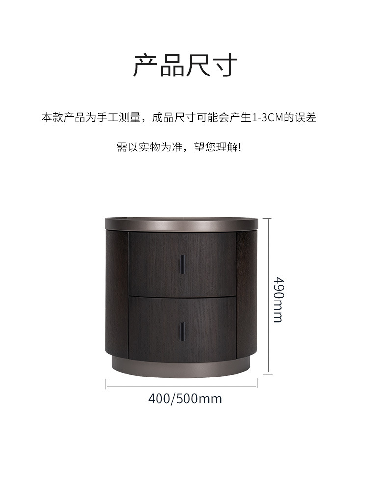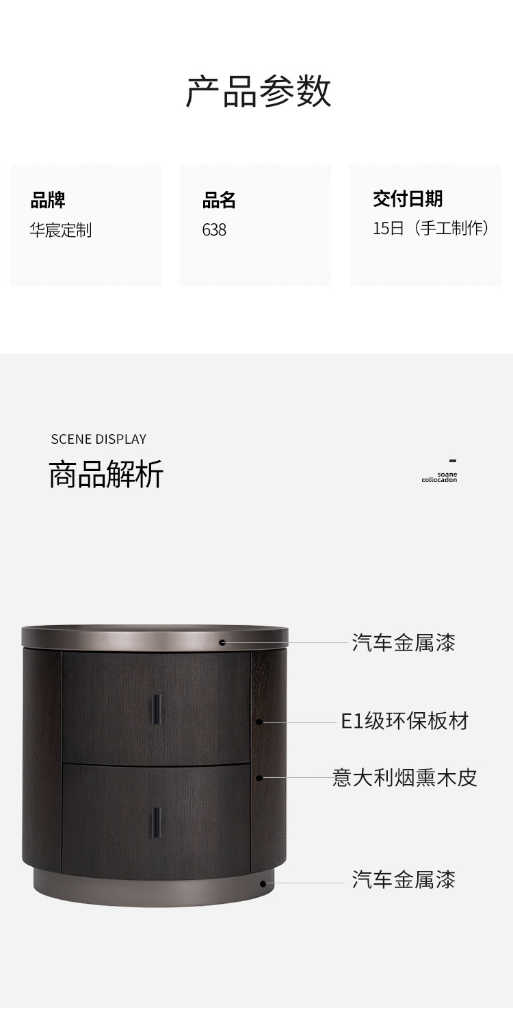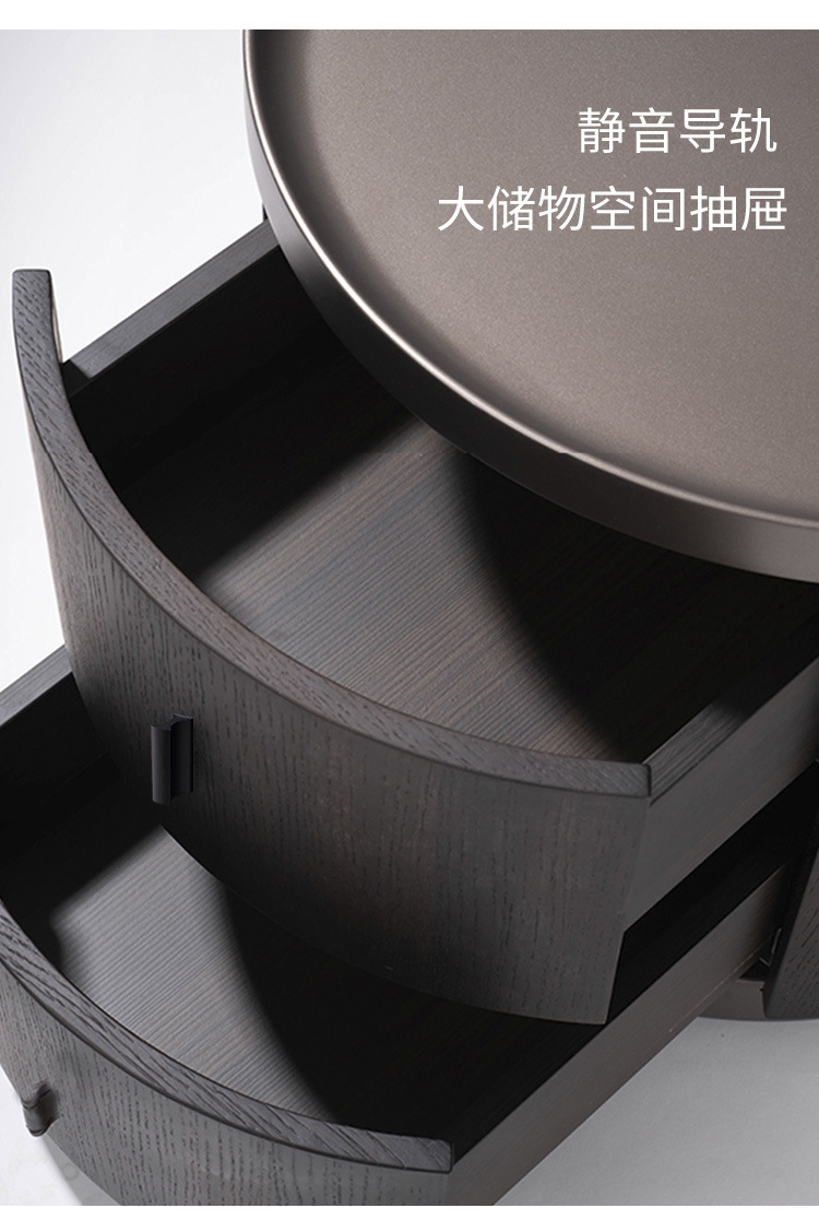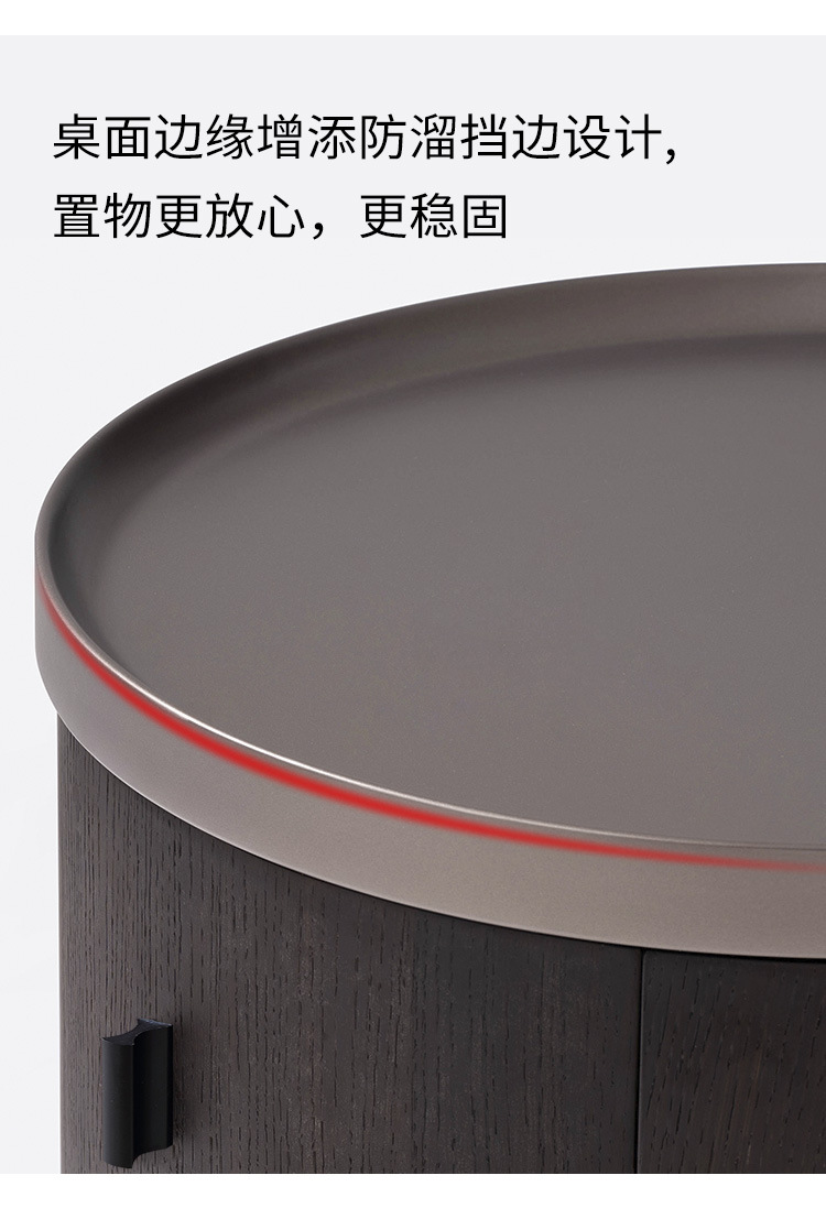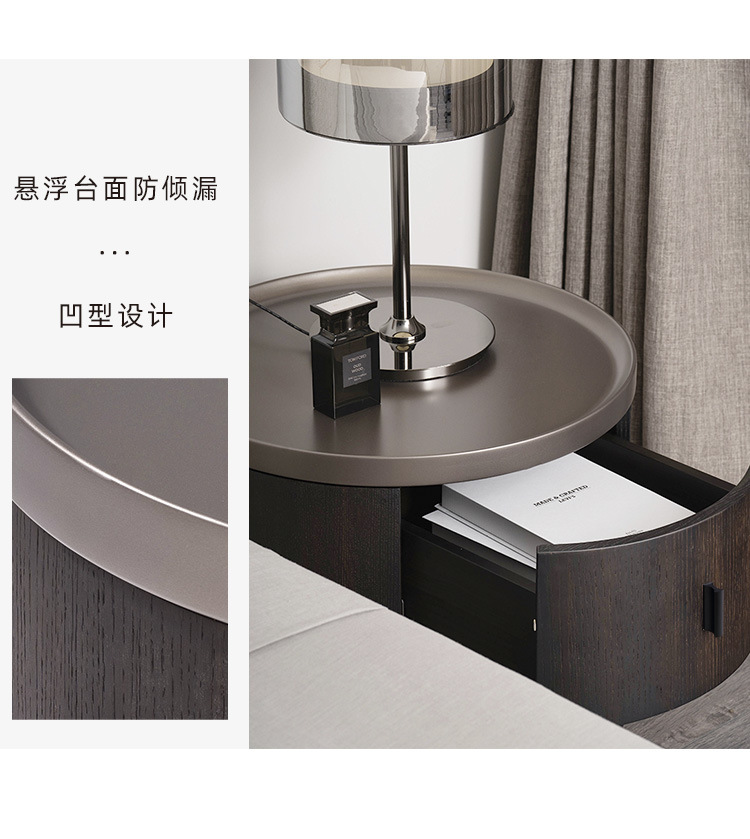 이탈리아 스타일의 미니멀리스트 폴리프롬 스모크 원목 침대협탁, 원형 심플 모던 라운드 캐비닛, 소형 아파트를 위한 독창적인 디자인