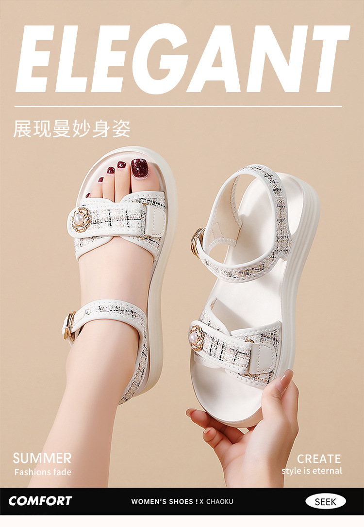 스포츠 샌들 여자 2025 새로운 올매치 경량 벨크로 여름 샤넬 스타일 미끄럼 방지 인터넷 축하 해변 신발