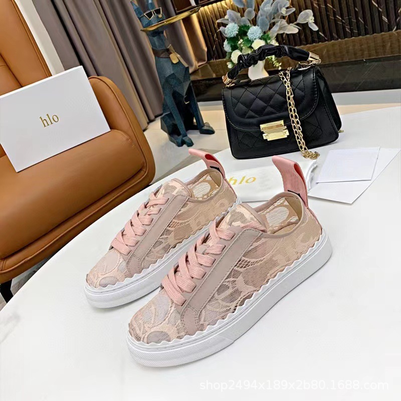 2025 봄과 여름 메쉬 신발 캐주얼 패션 레이스 업 플랫 여성 신발 레이스 메쉬 라운드 발가락 통기성 운동화 직접 판매