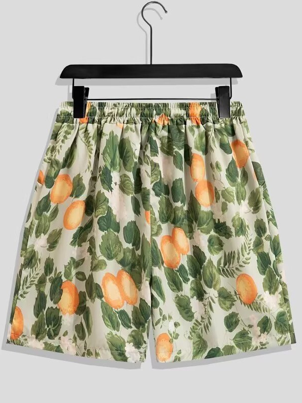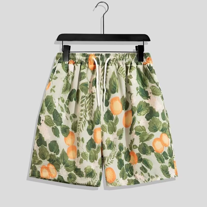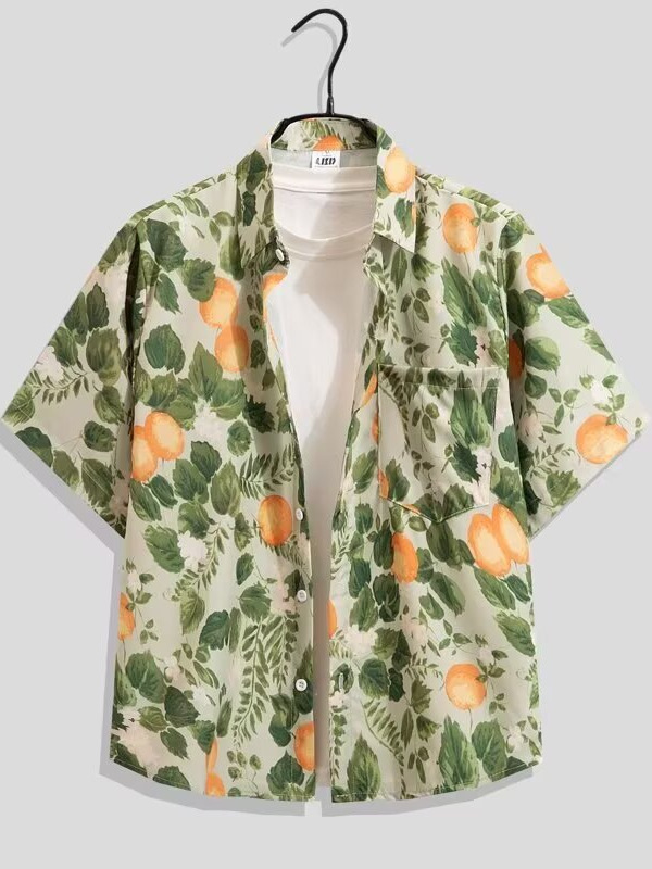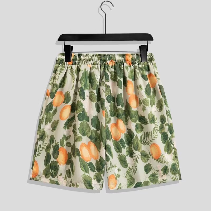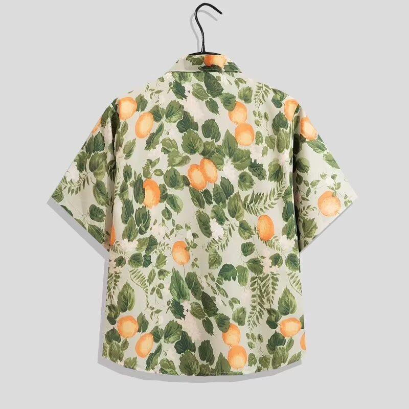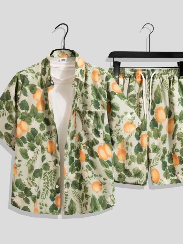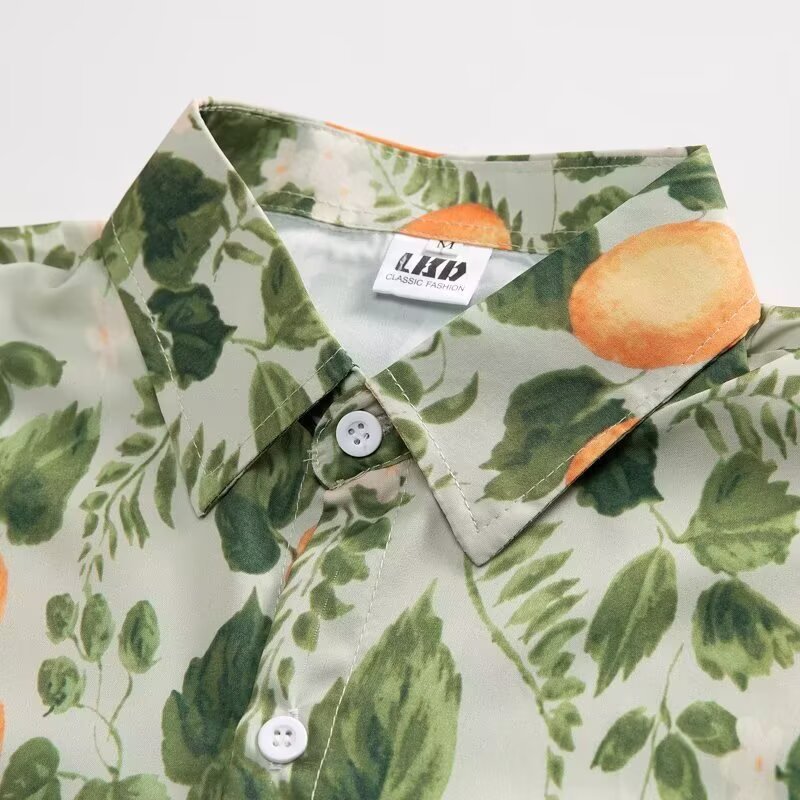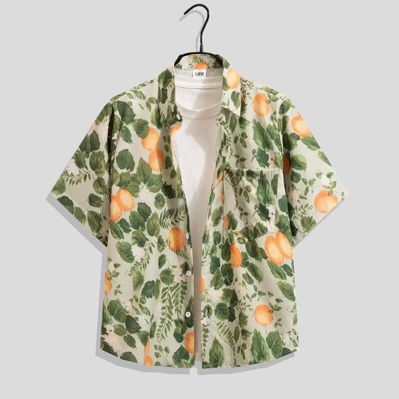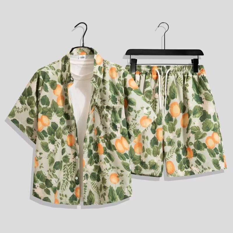 국경 간 남성 라펠 반팔 비치 홍콩 스타일 셔츠 하와이 패션 정장 휴가 꽃 셔츠 캐주얼 반바지