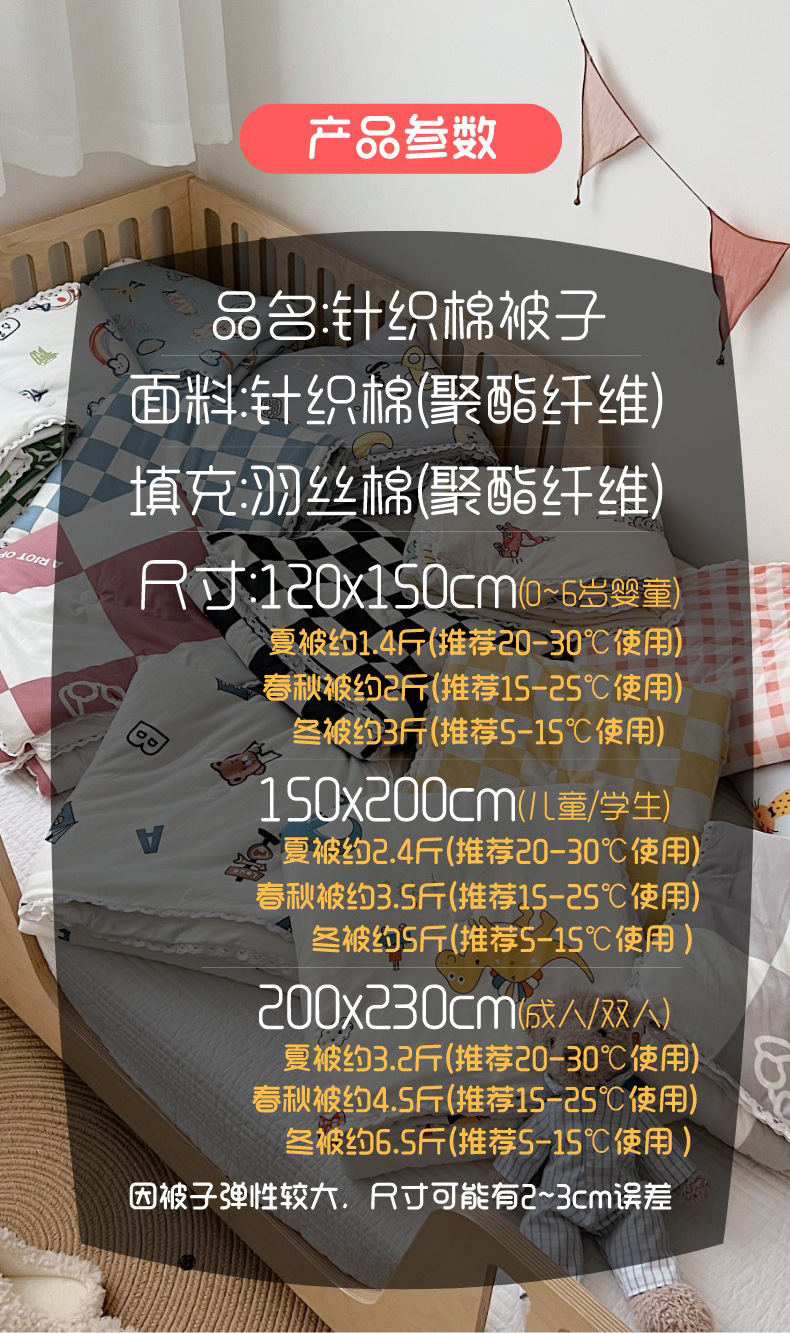 1.2x1.5m 아동용 봄, 가을 이불 [카테고리 A 산모 및 유아용 등급 약 1.0kg ]