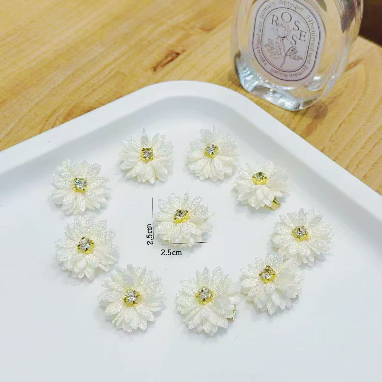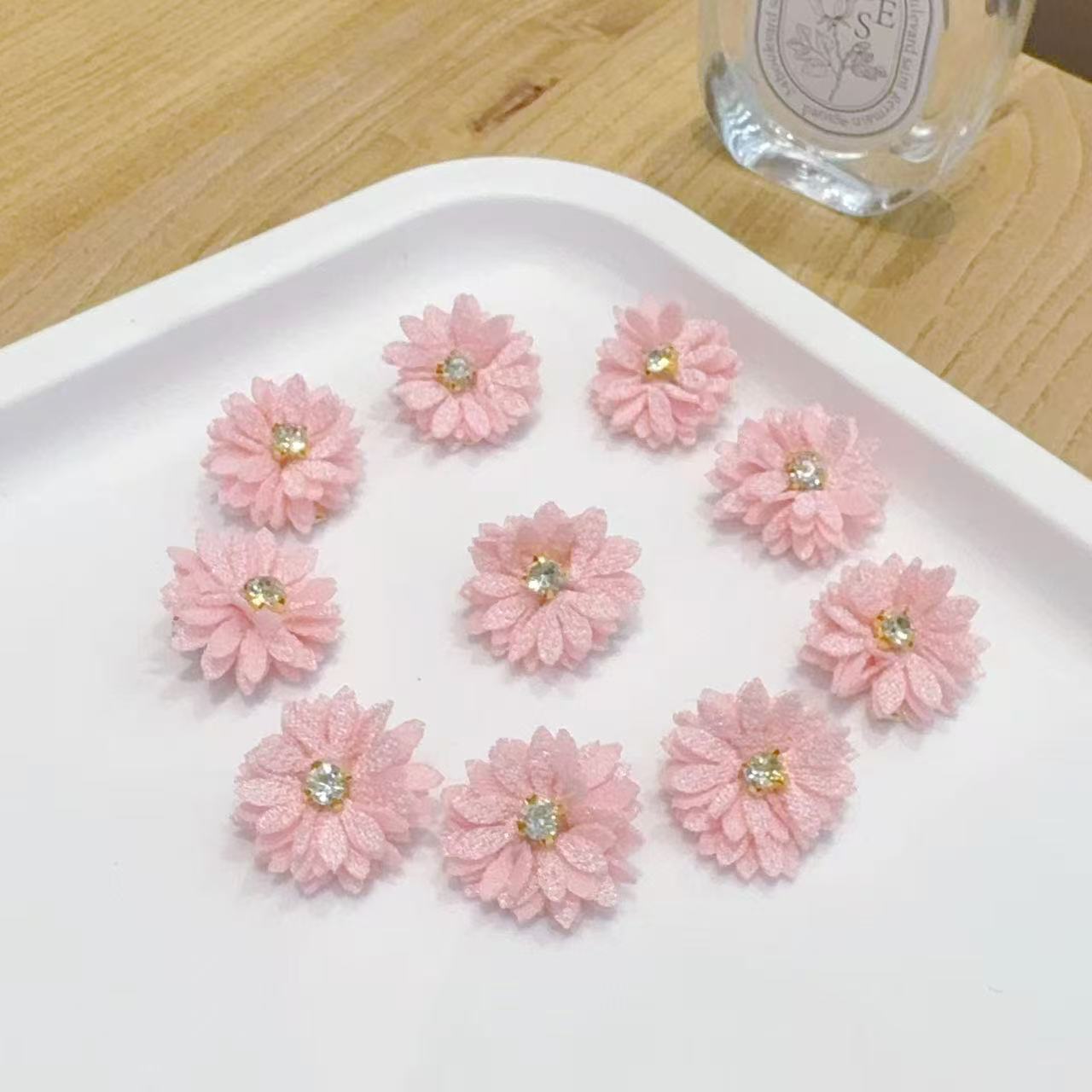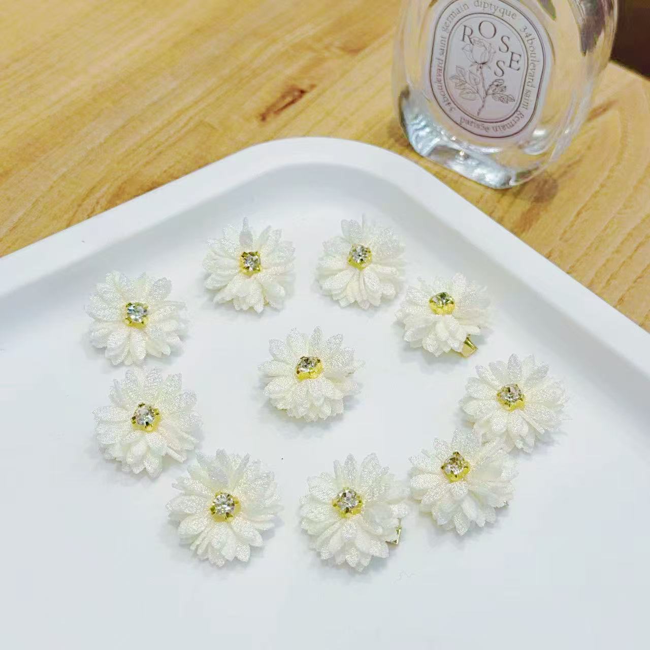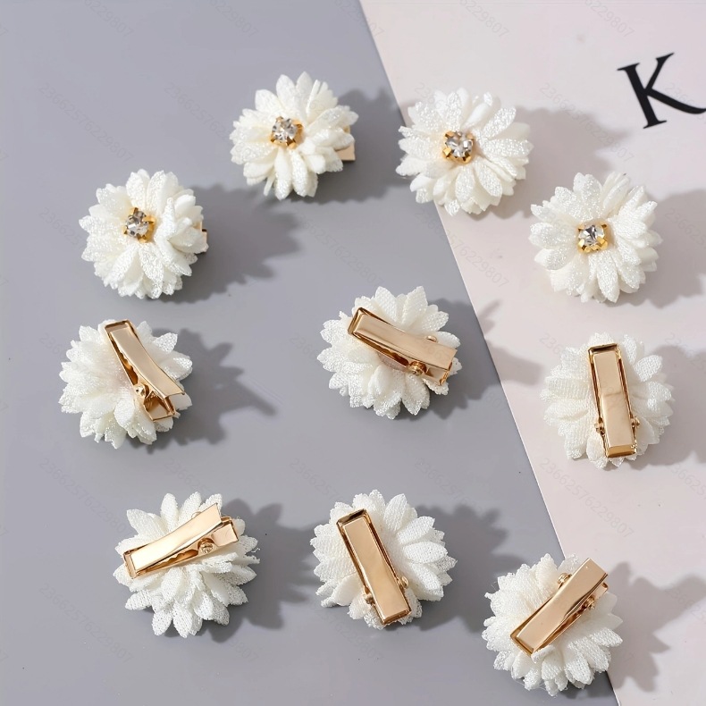 천 꽃 머리핀 중국 신부 머리 장식 단색 모조 다이아몬드 센터 꽃 헤어 액세서리 멀티 앵글 꽃 머리핀 도매