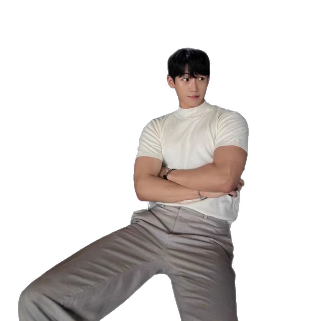 한국의 가벼운 럭셔리 작은 터틀넥 티셔츠 남성용 머서라이즈 코튼 아이스 실크 반팔 스웨트 셔츠 시원하고 통기성이 뛰어난 하프 터틀넥 스웨터 트렌디
