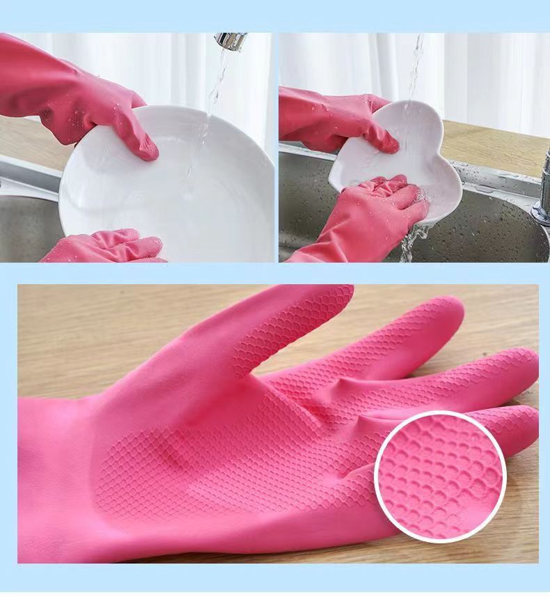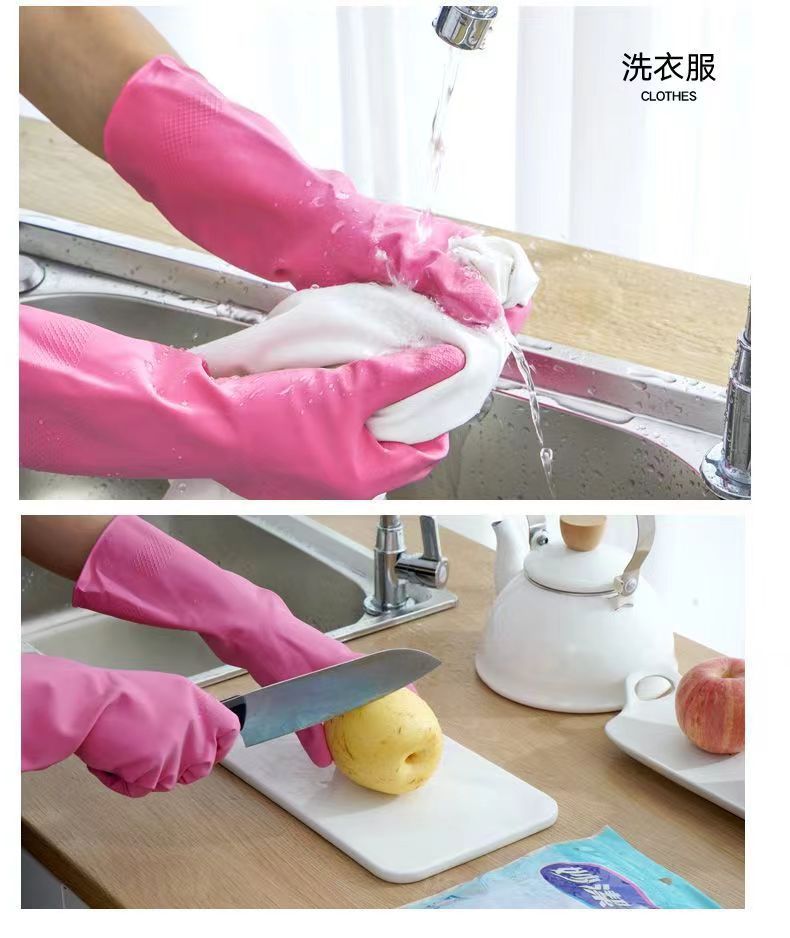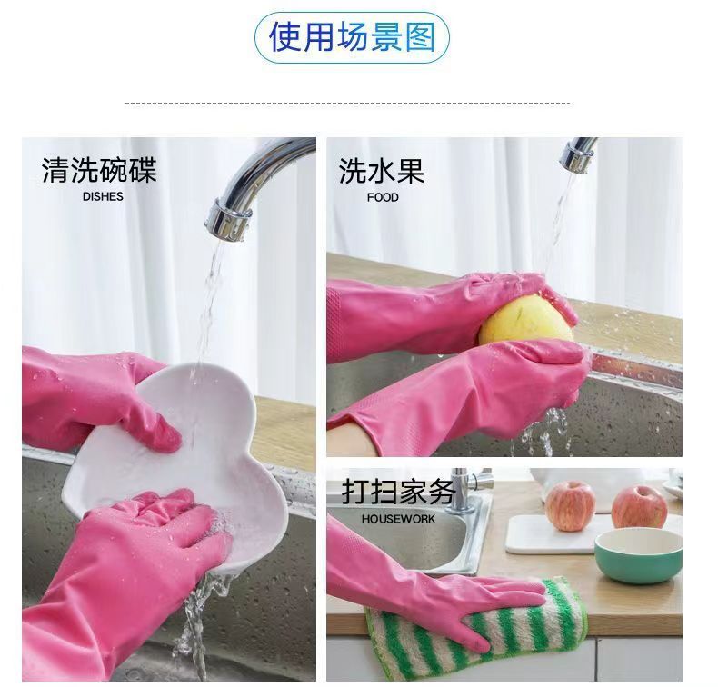 Miaojie 식기 세척 가사 주방 내구성 고무 식기 세척 장갑 여성용 세탁 방수 두꺼워 깨지기 쉽지 않음