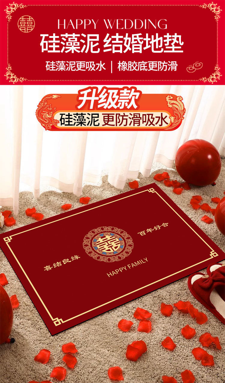 결혼식 빨간색 축제 규조토 진흙 미끄럼 방지 도어 매트 홈 입구 입구 내마모성 바닥 매트 호텔 상업용 도어 매트