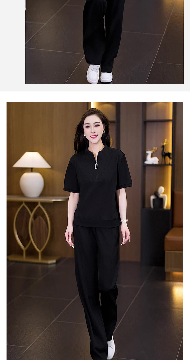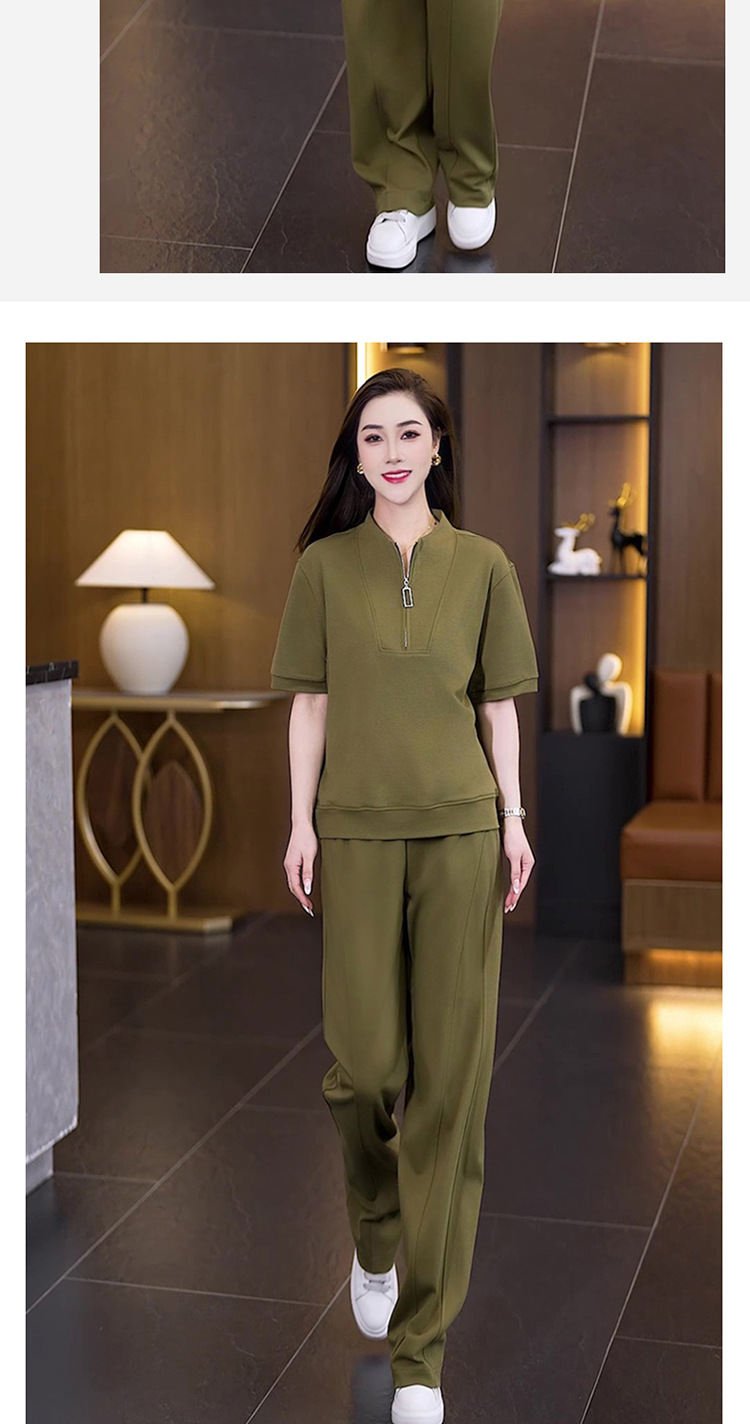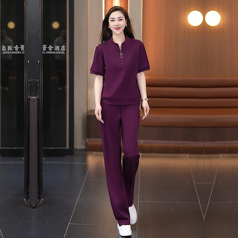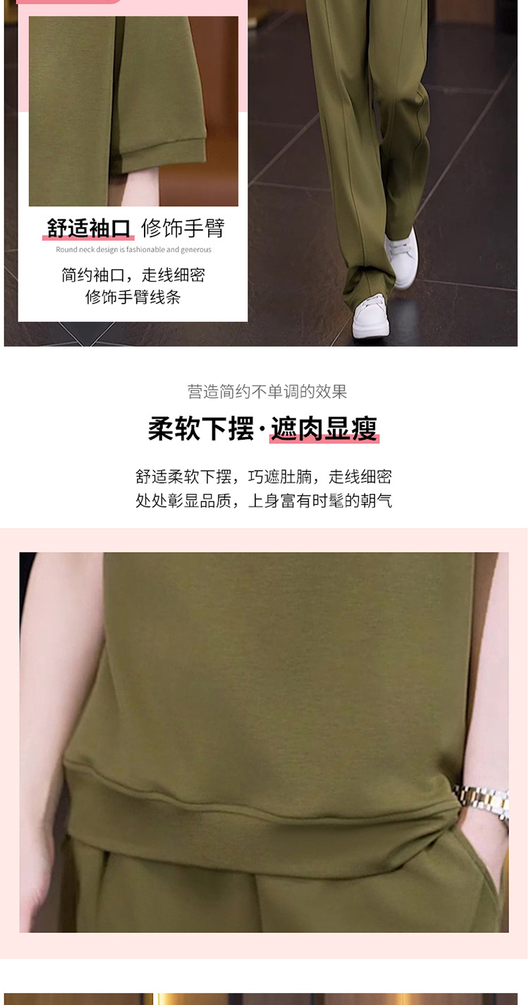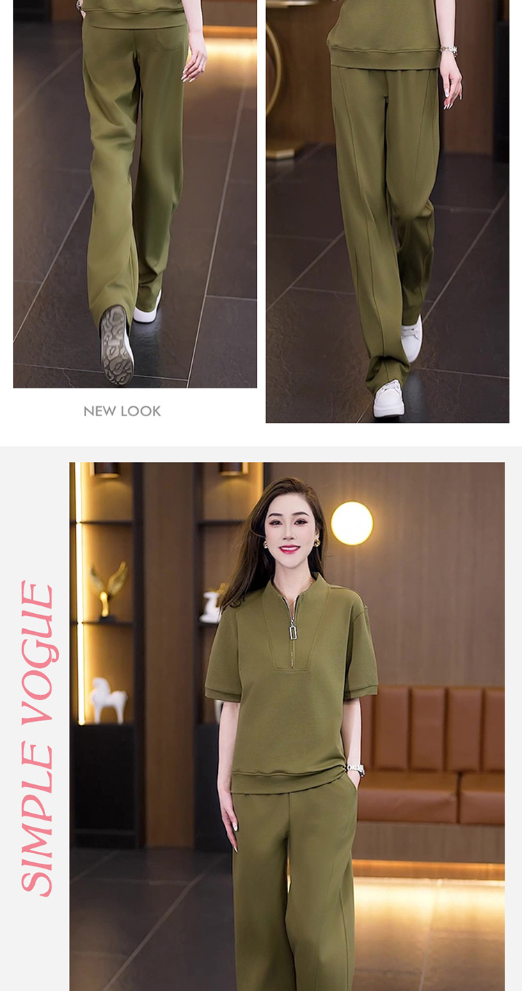 아이스 실크 캐주얼 스포츠웨어 세트 여성 2025 년 여름 새로운 서양식 슬리밍 반팔 탑 와이드 레그 바지 투피스 세트