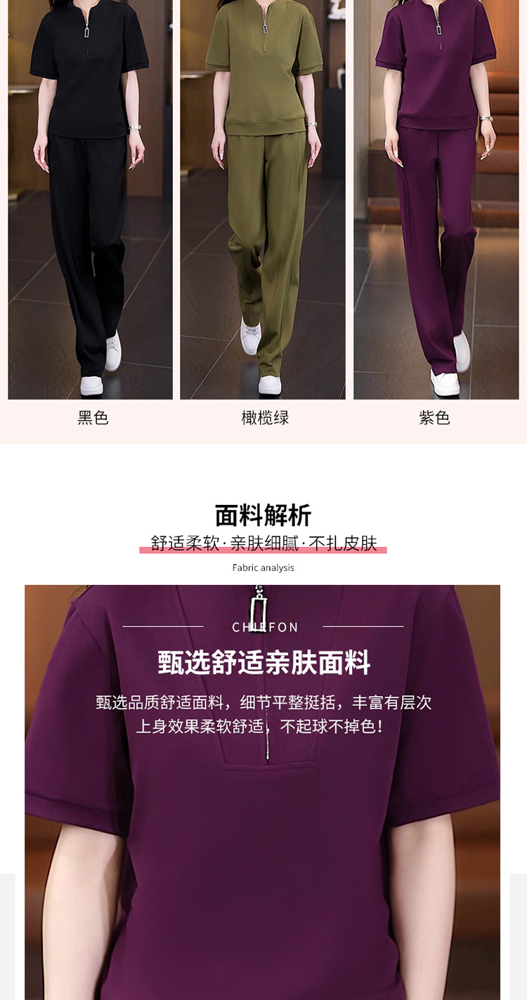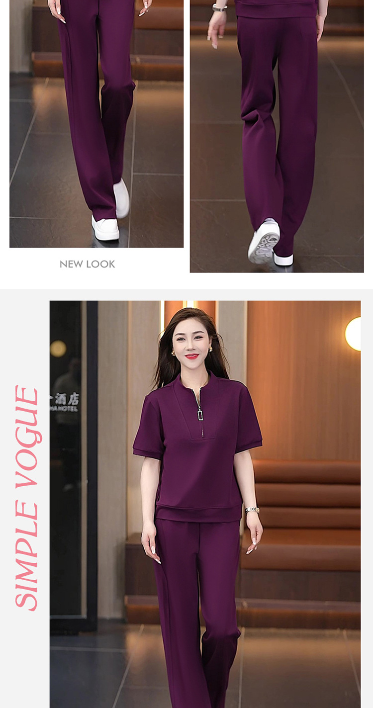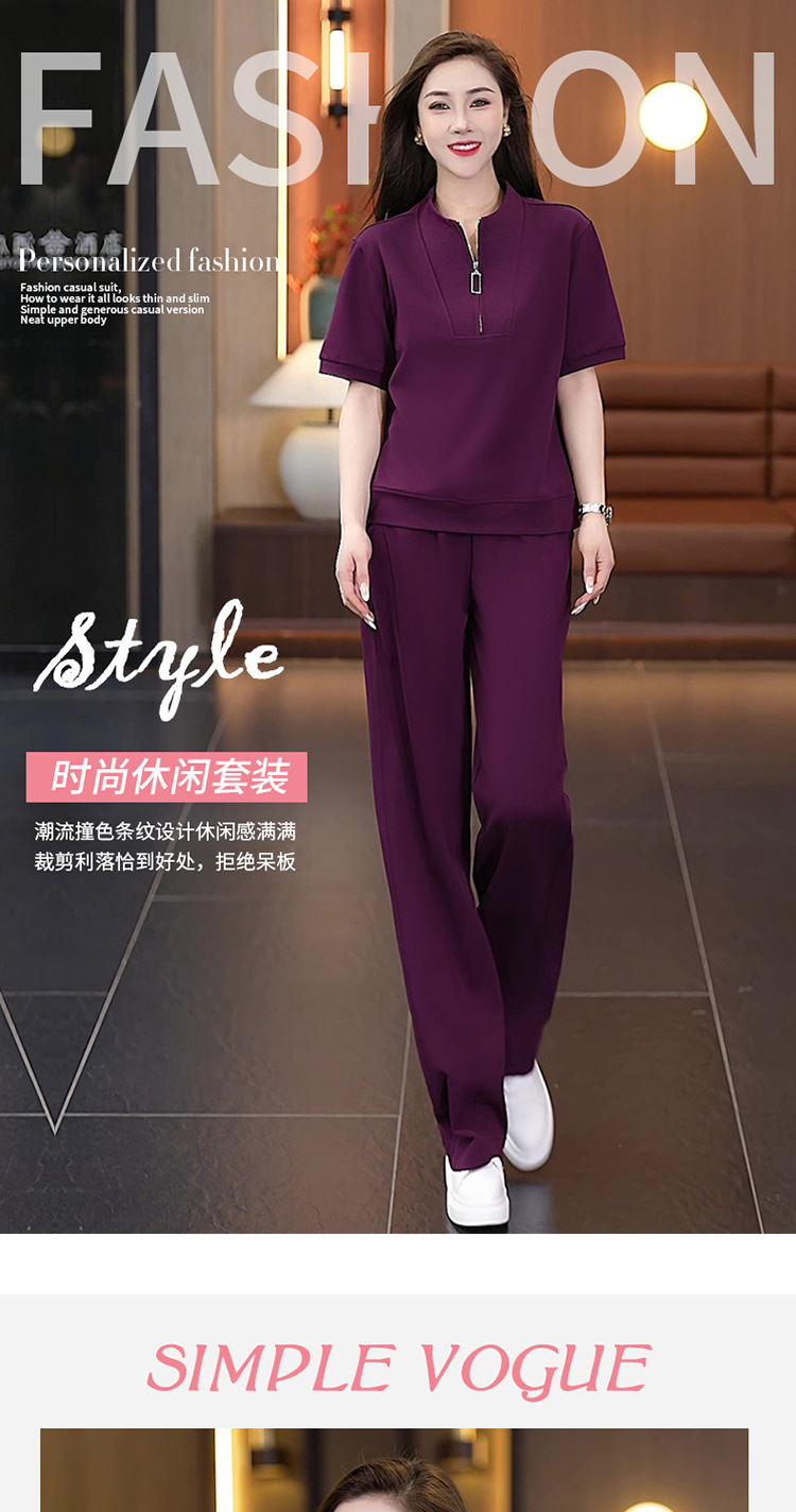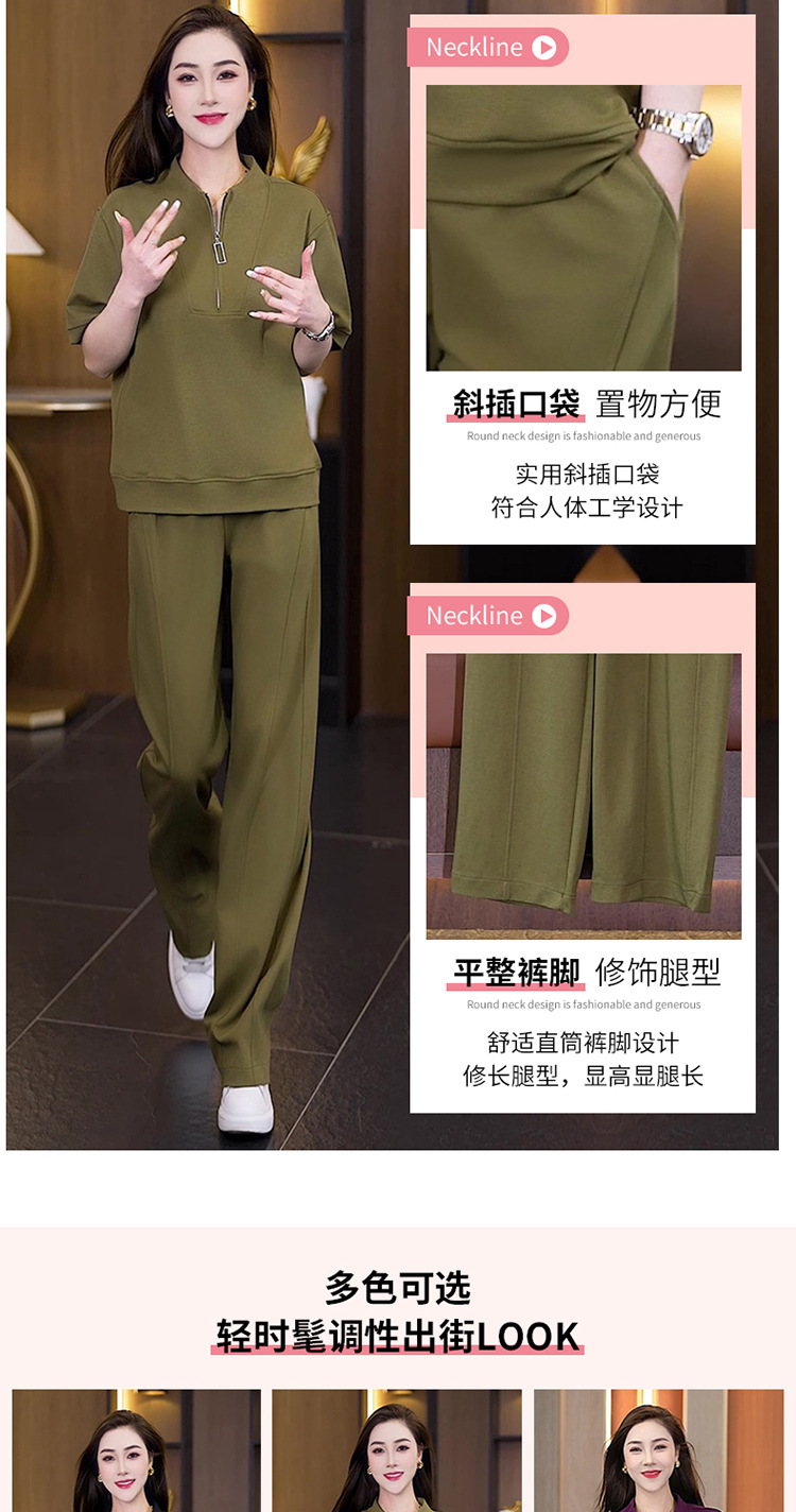 아이스 실크 캐주얼 스포츠웨어 세트 여성 2025 년 여름 새로운 서양식 슬리밍 반팔 탑 와이드 레그 바지 투피스 세트