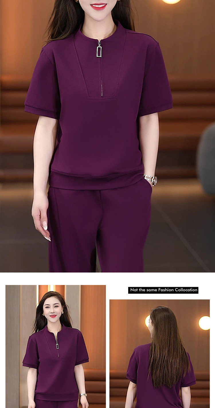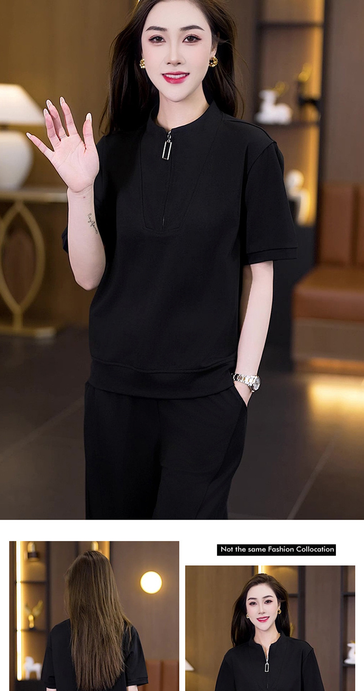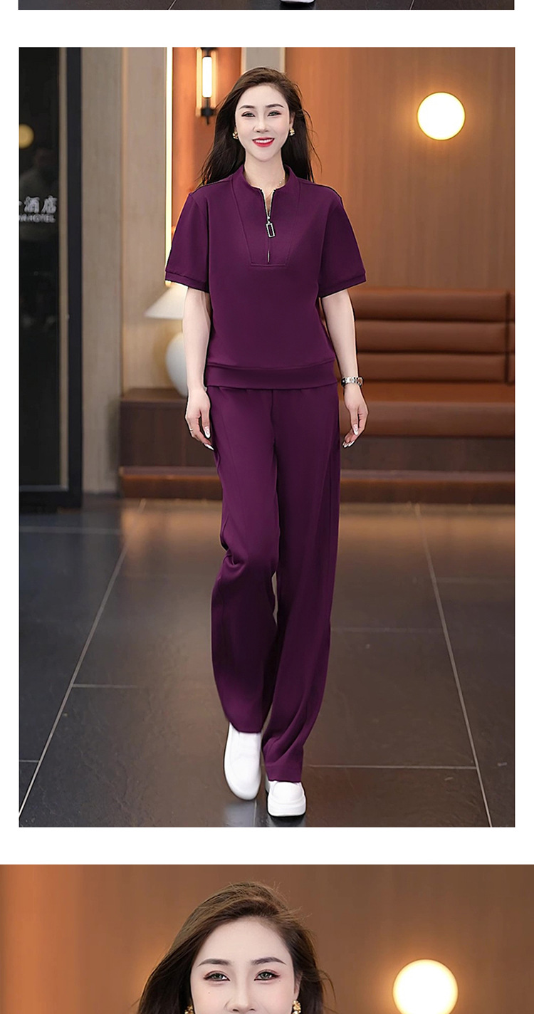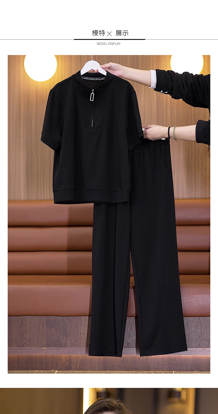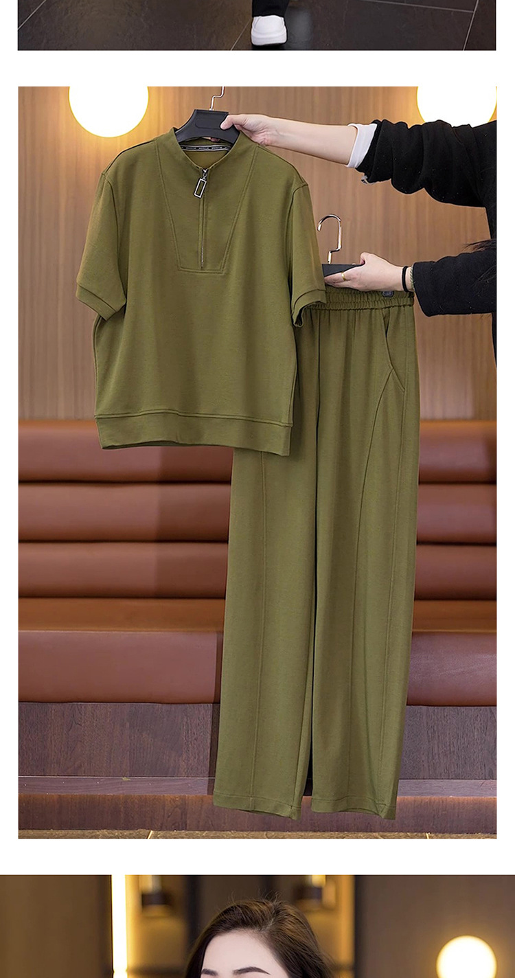 아이스 실크 캐주얼 스포츠웨어 세트 여성 2025 년 여름 새로운 서양식 슬리밍 반팔 탑 와이드 레그 바지 투피스 세트