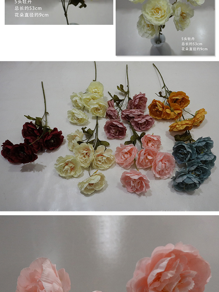 결혼식 인공 꽃 실크 꽃 5 머리 모란 가짜 꽃 꽃다발 장식 꽃 실내 아름다운 집 꽃꽂이