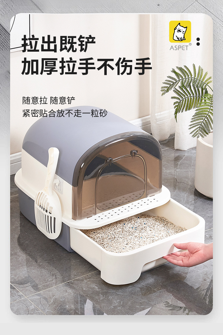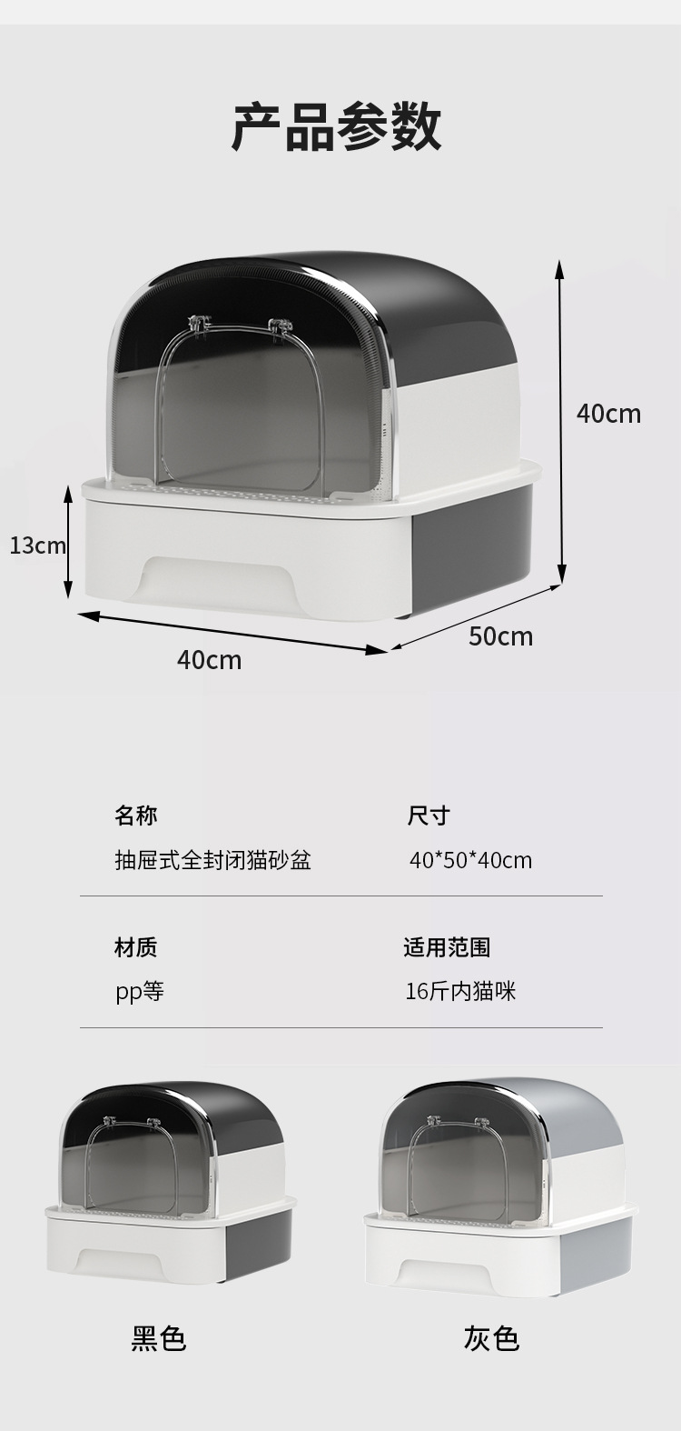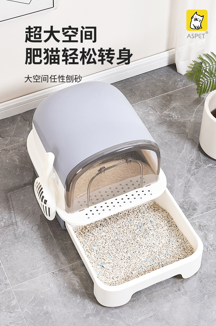 완전 밀폐형 고양이 화장실, 냄새 차단 및 물 튀김 방지, 대형 고양이 화장실, 새끼 고양이 화장실, 고양이용 서랍형 화장실