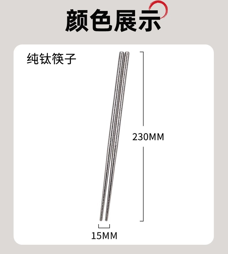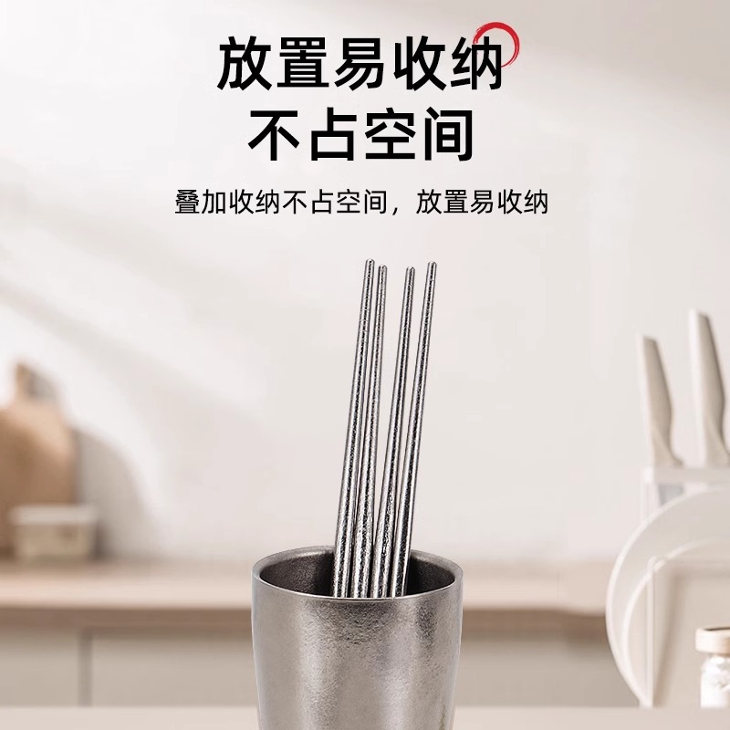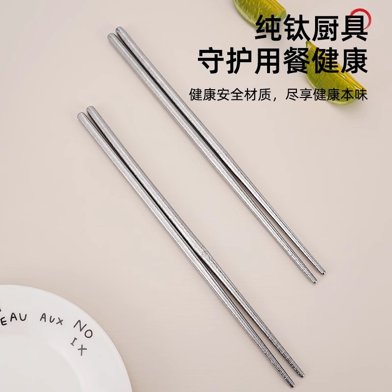 순수 티타늄 젓가락 가정용 식당 캠핑 티타늄 식기 미끄럼 방지 야외 고온 실버 라이트 바디 젓가락