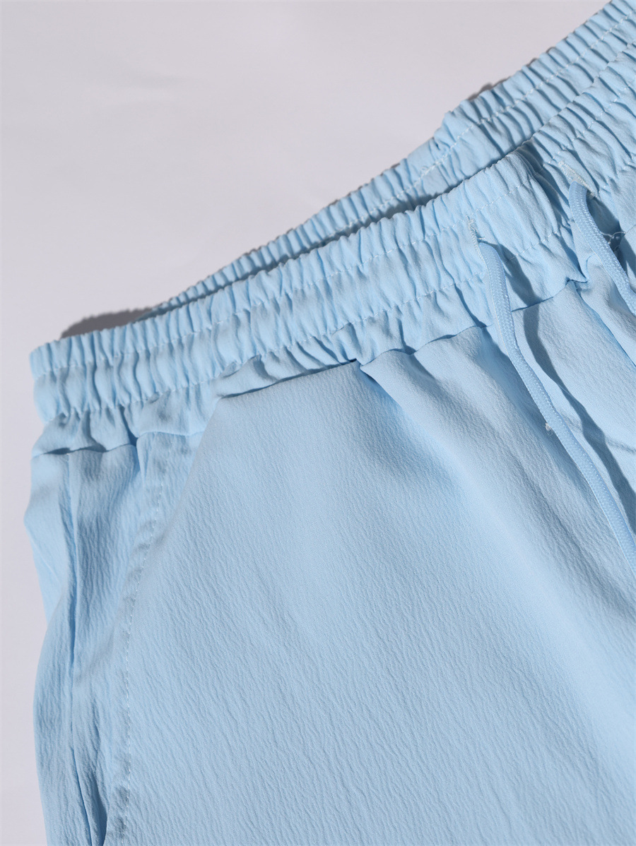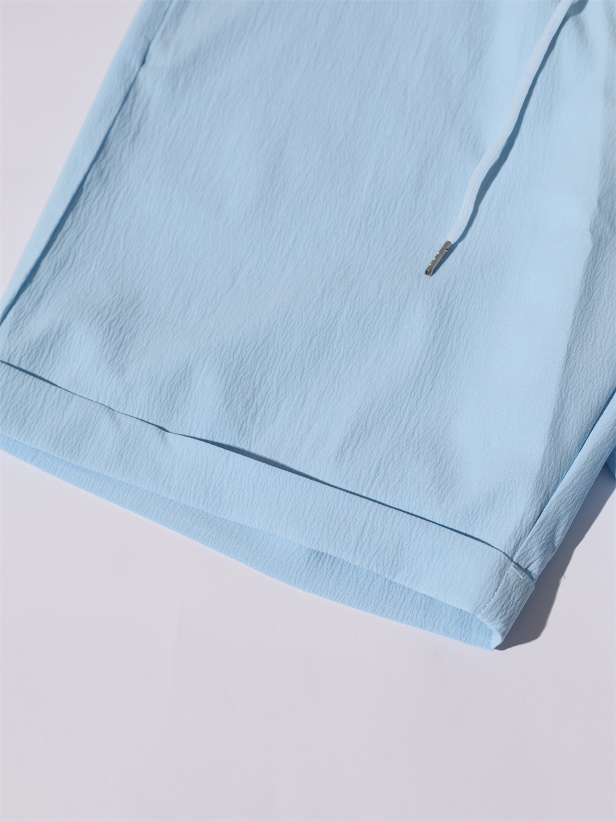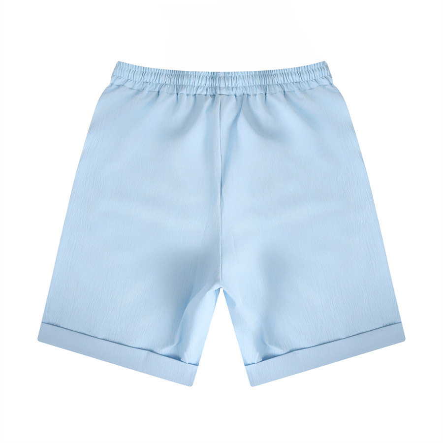 새로운 크로스보더 아마존 남성 여름 반바지 하이 스트리트 플리츠 캐주얼 바지 스트레이트 레그 플레인 편안한 통기성 반바지