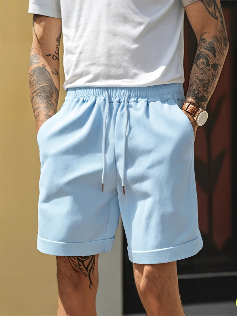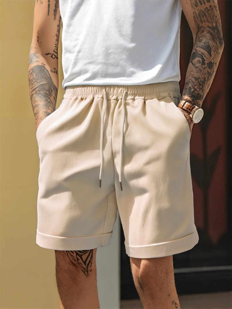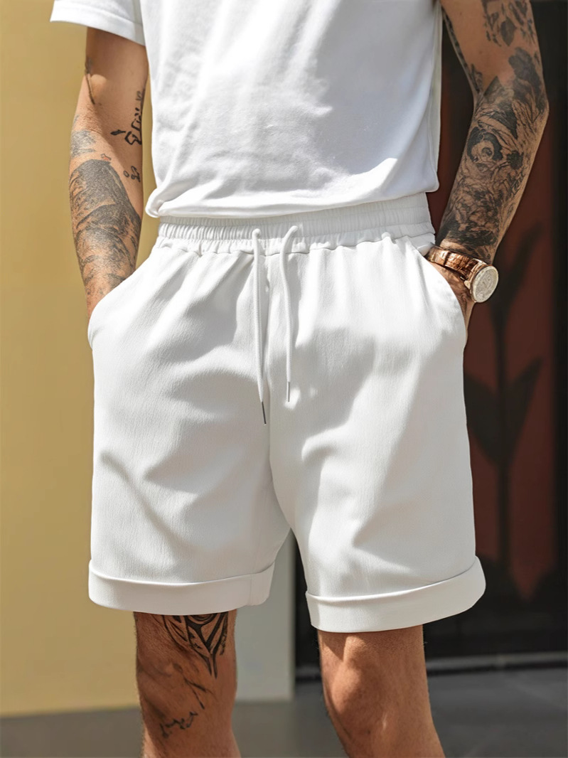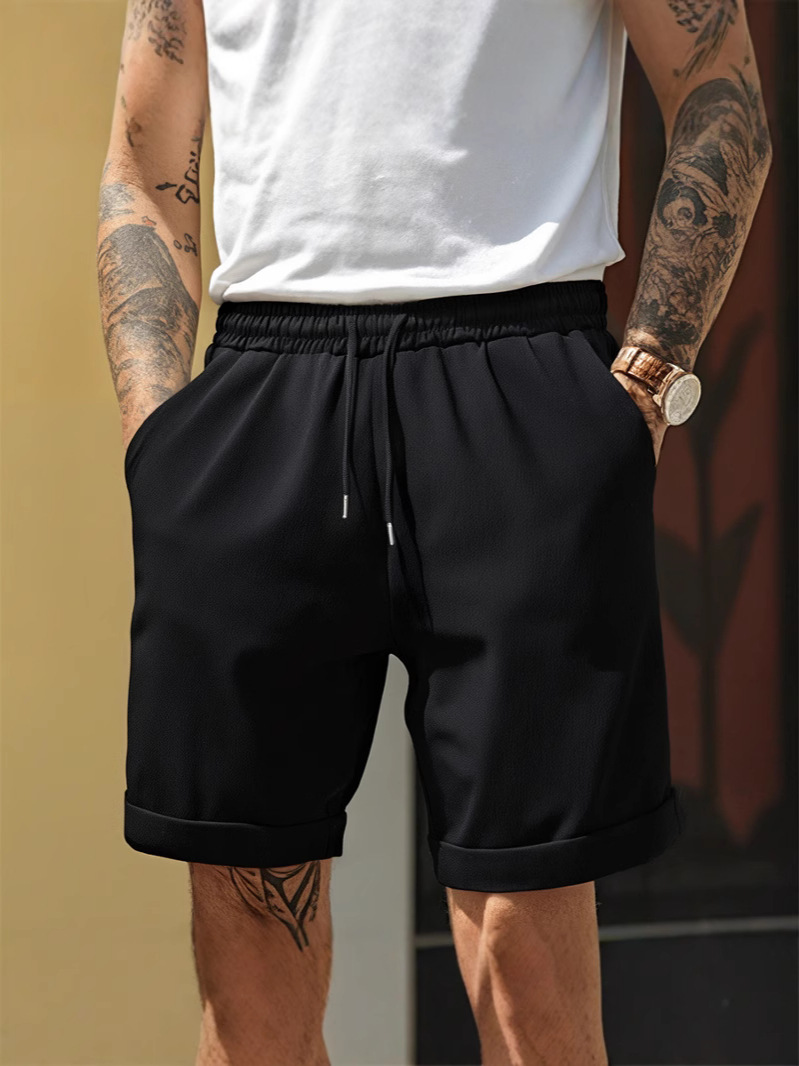 새로운 크로스보더 아마존 남성 여름 반바지 하이 스트리트 플리츠 캐주얼 바지 스트레이트 레그 플레인 편안한 통기성 반바지