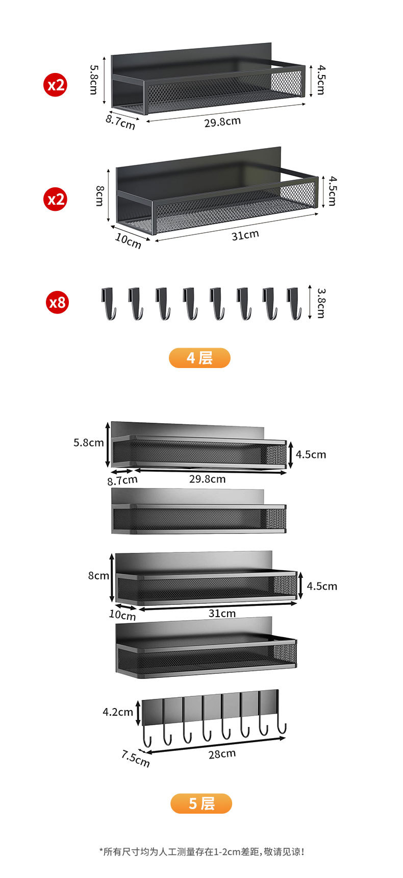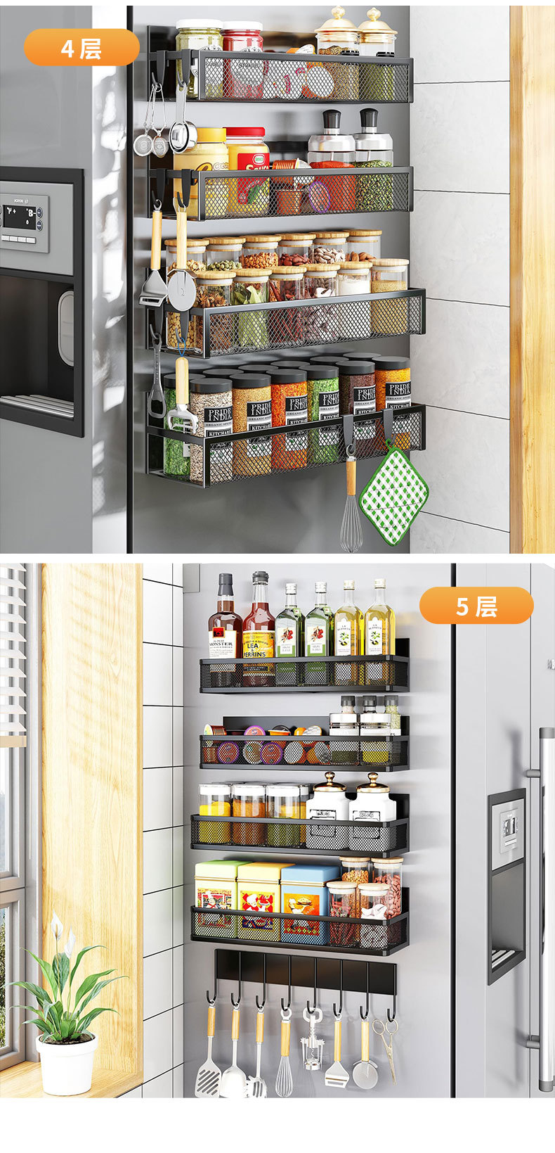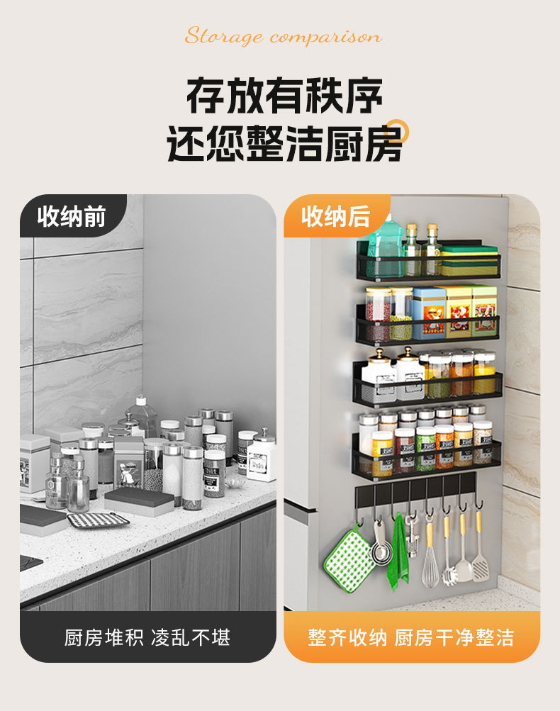 구멍이 없는 국경 간 자기 냉장고 보관 랙 세트 다층 주방 전자 레인지 커피 머신 보관 바구니 도매