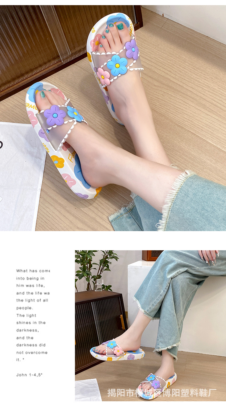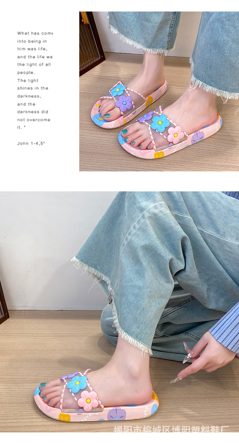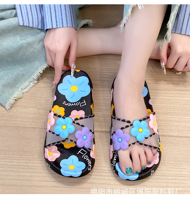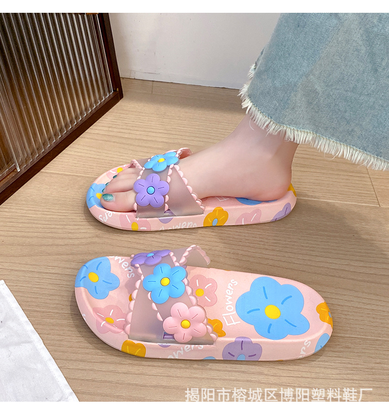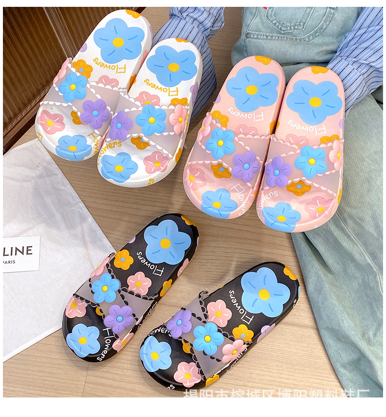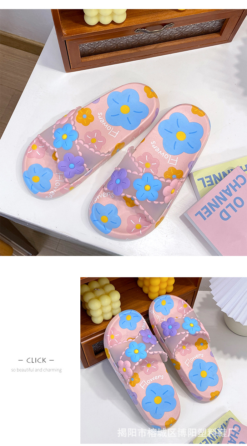 여름 인터넷 축하 인기있는 슬리퍼 여성의 귀여운 꽃 외부 부드러운 바닥 미끄럼 방지 홈 욕실 한 단어 드래그 여성 도매