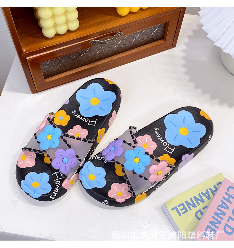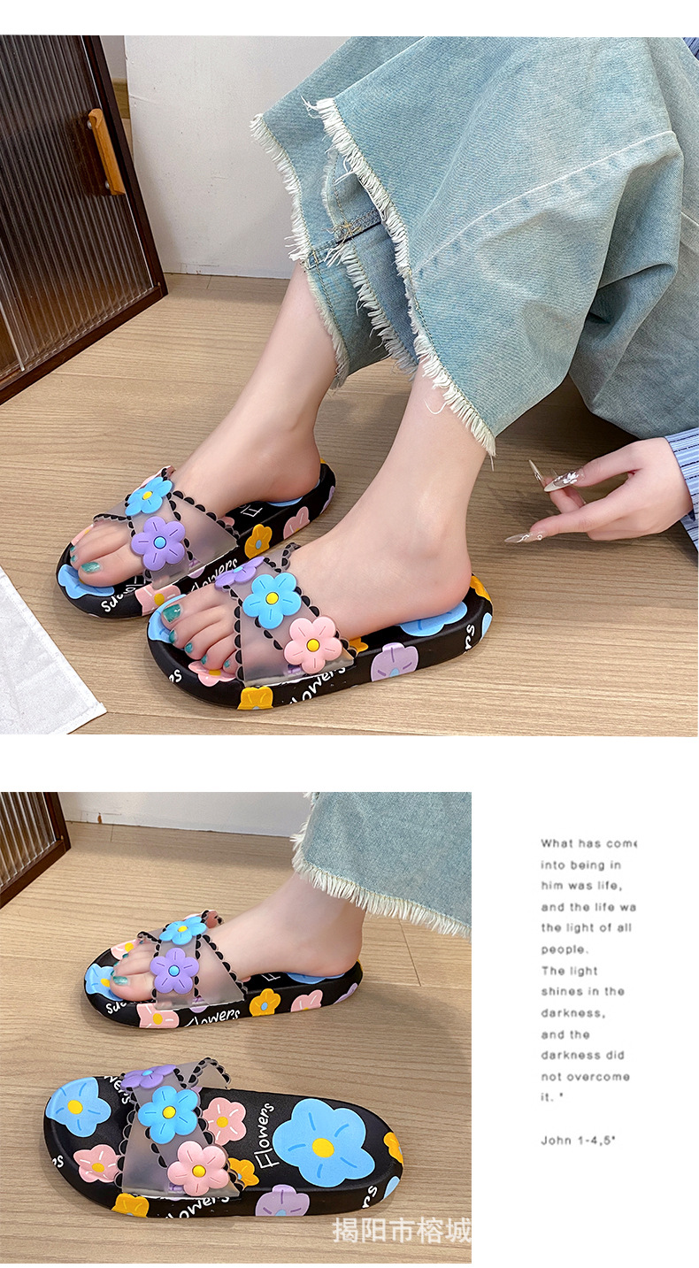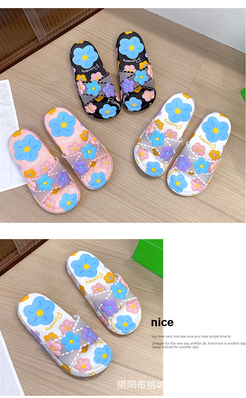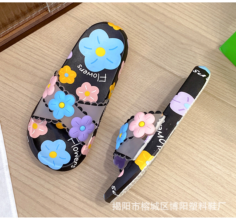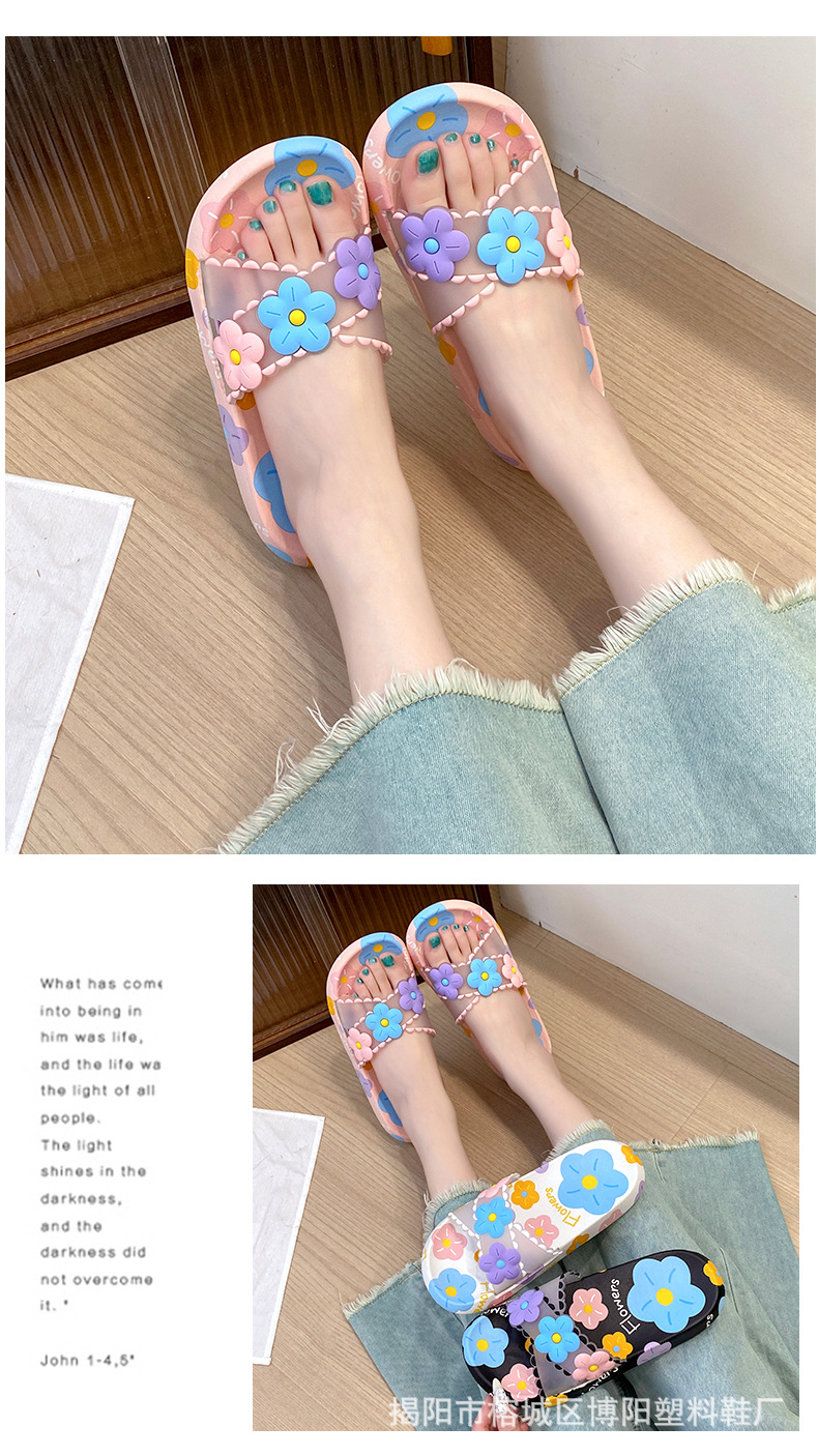 여름 인터넷 축하 인기있는 슬리퍼 여성의 귀여운 꽃 외부 부드러운 바닥 미끄럼 방지 홈 욕실 한 단어 드래그 여성 도매