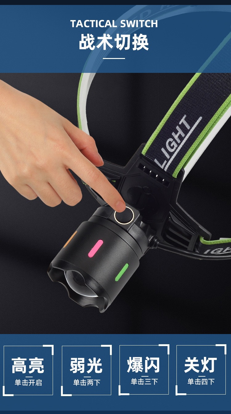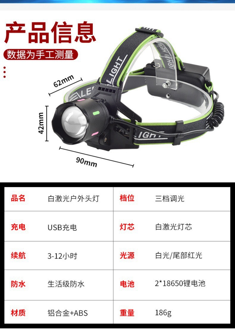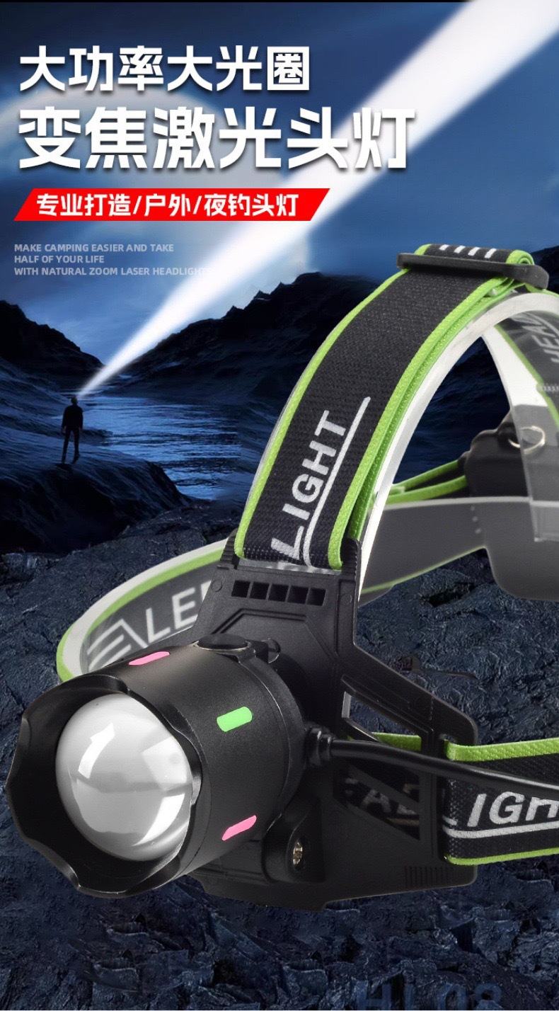 국경 백색 레이저 헤드 라이트 led 야외 다기능 강한 빛 휴대용 야간 낚시 램프 헤드 장착 손전등