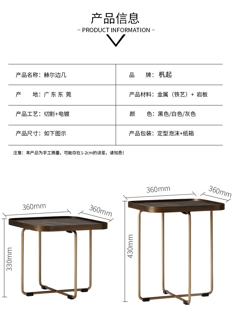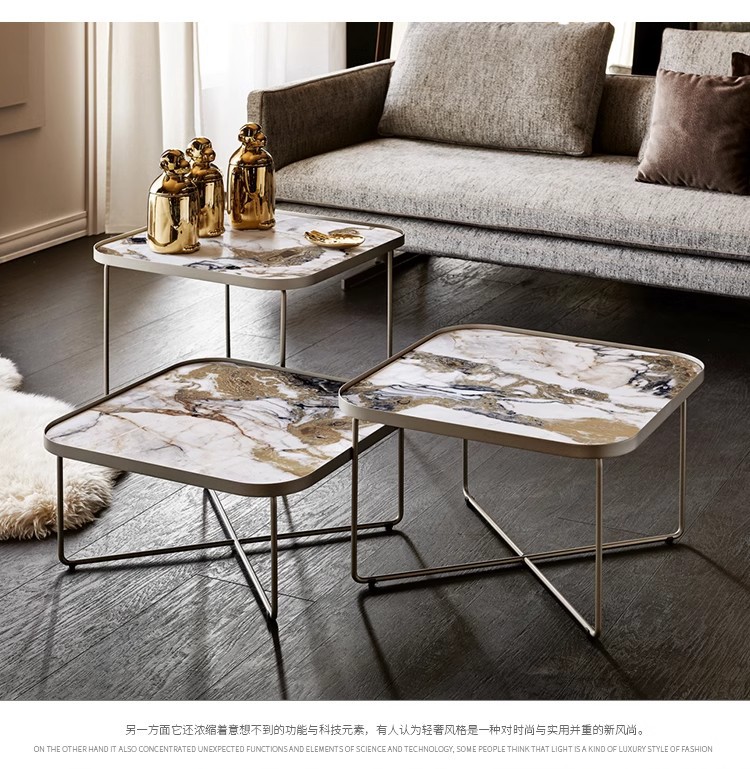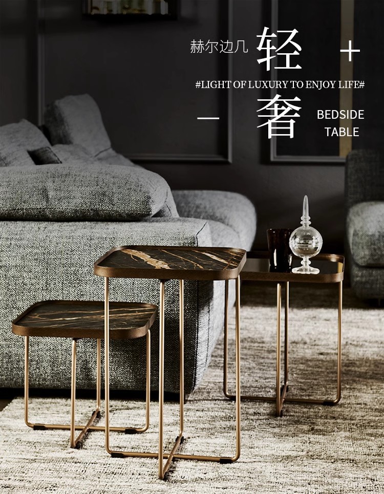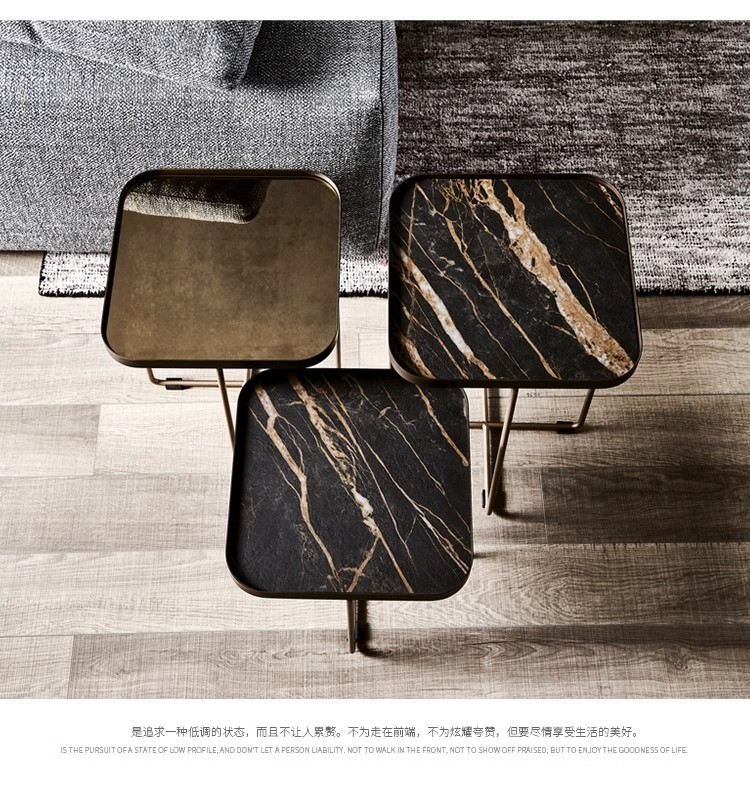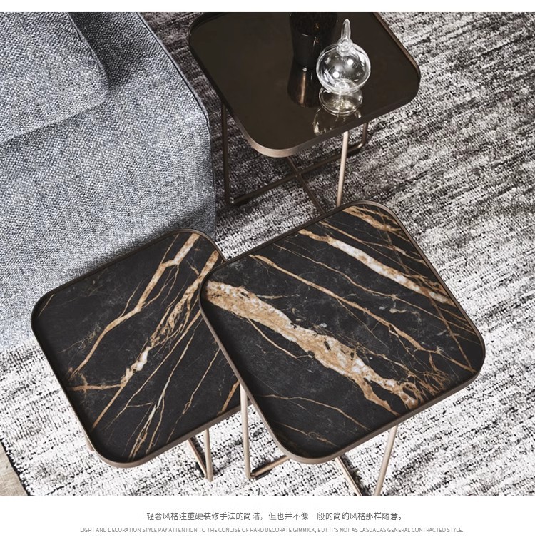 이탈리안 슬레이트 사이드 테이블, 가볍고 고급스러운 모던 소파 코너 테이블, 디자이너 스퀘어 미니멀리스트 대리석 소형 커피 테이블, 스퀘어 테이블