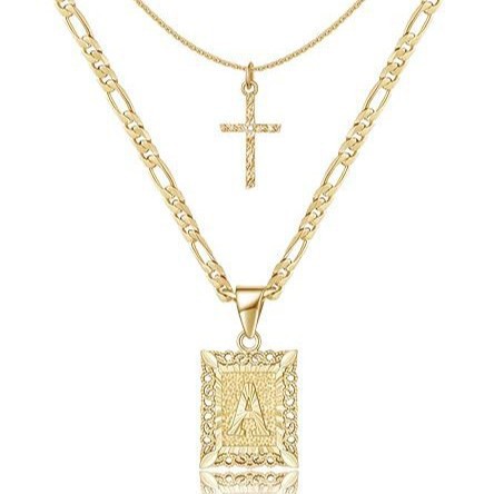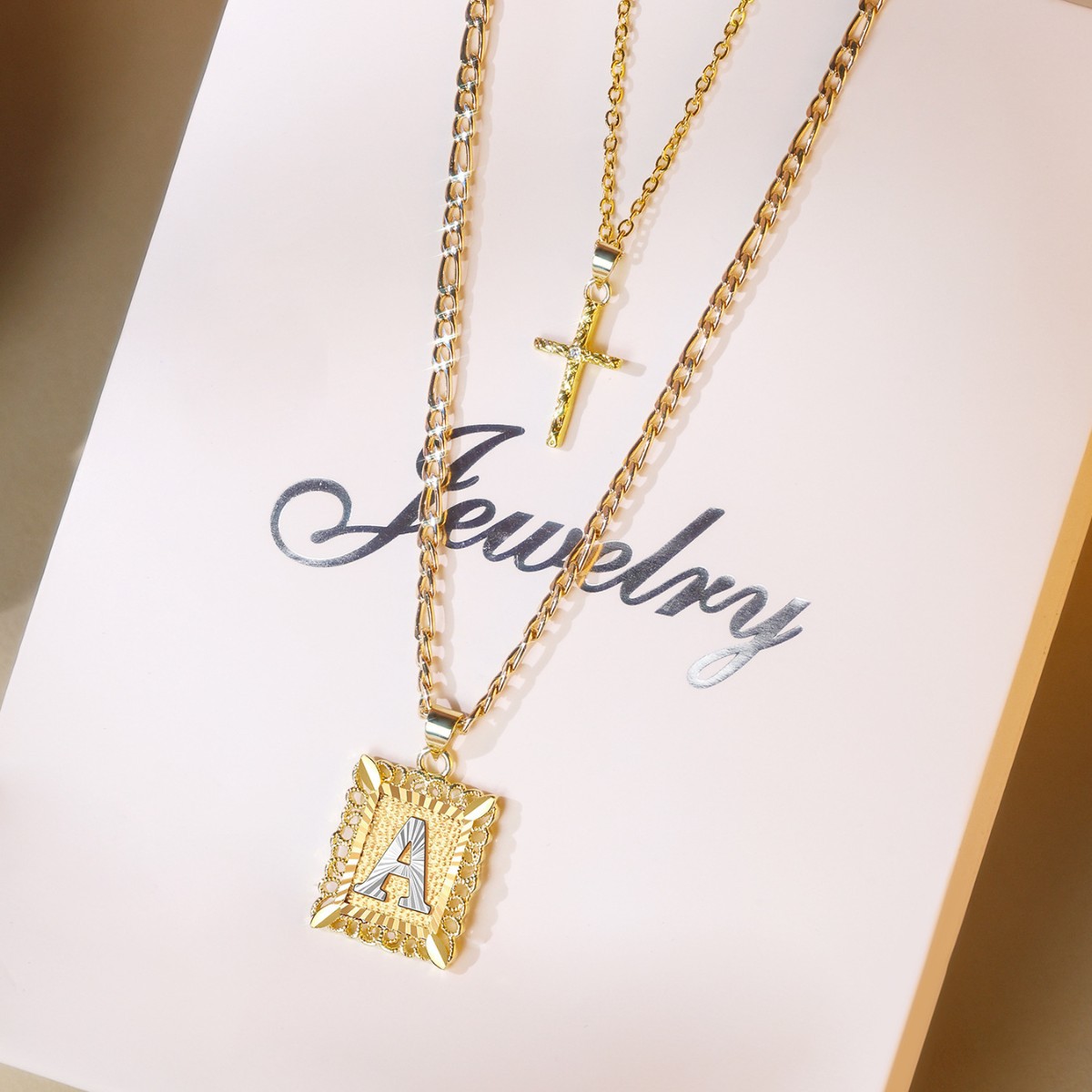 유럽 및 미국 스타일 이중 레이어 사각 십자가 멜론 버튼 펜던트 목걸이 세트 도매