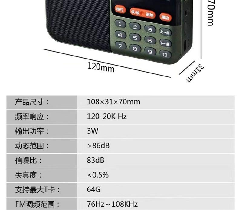 Xiaobawang S57 노인 미니 라디오 카드 소형 오디오 워크맨 플레이어 U 디스크 외부 충전 스피커