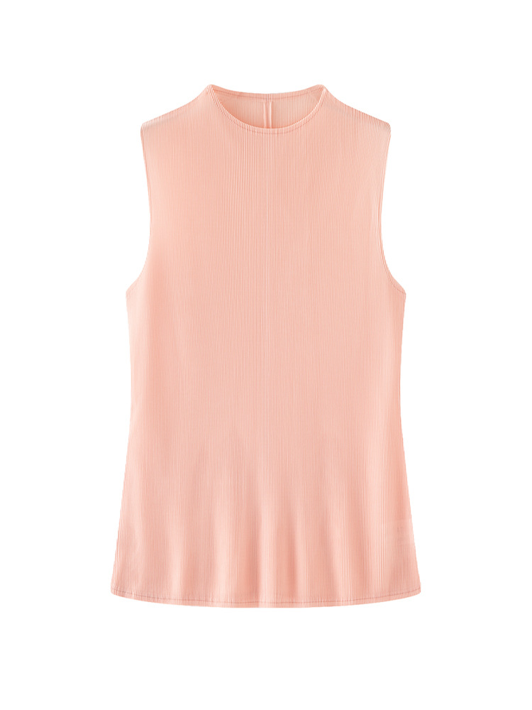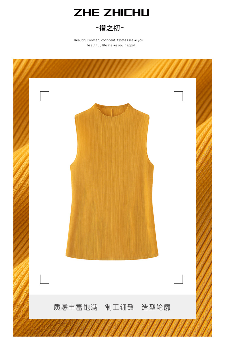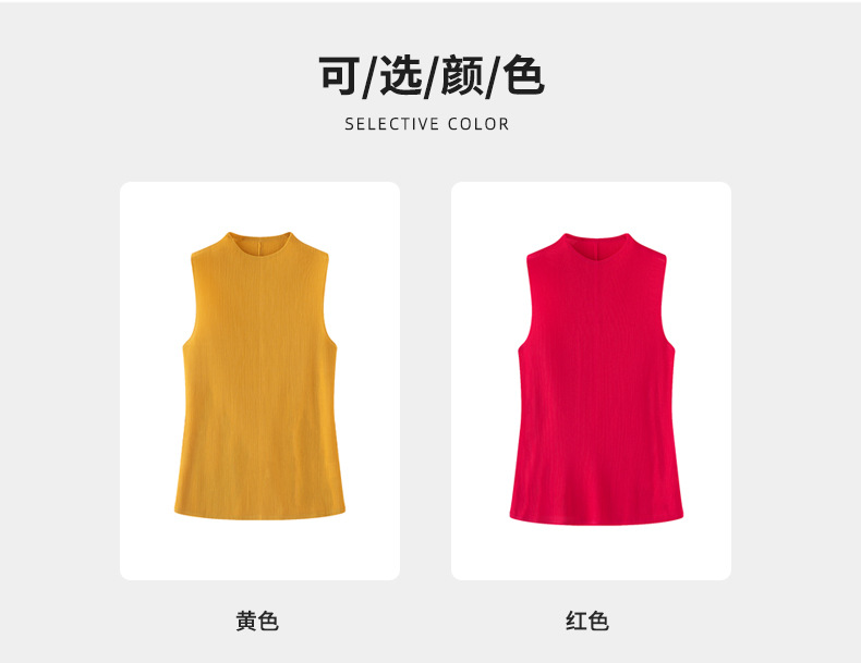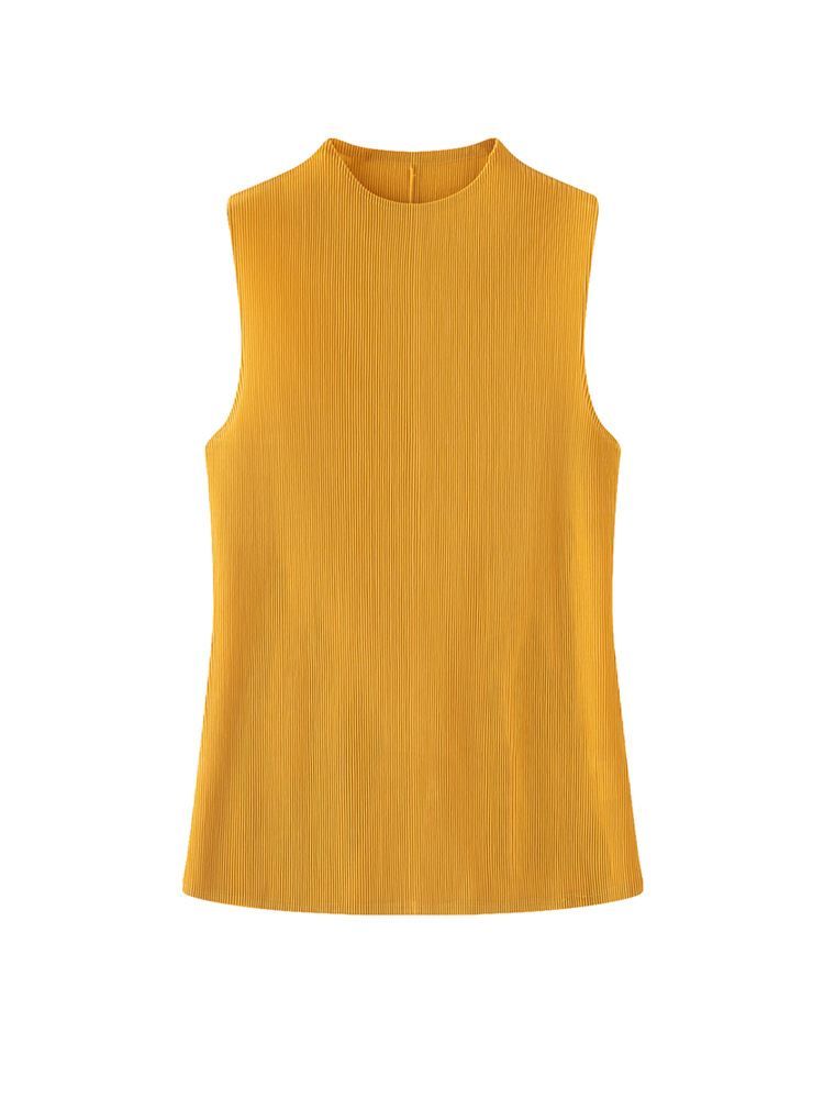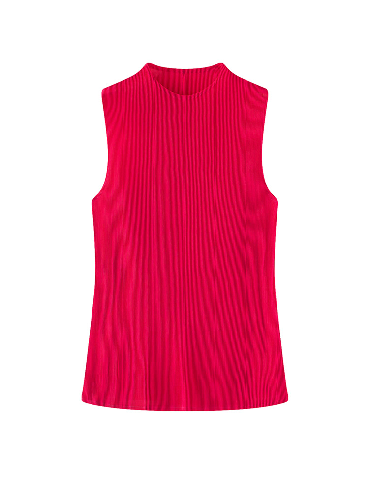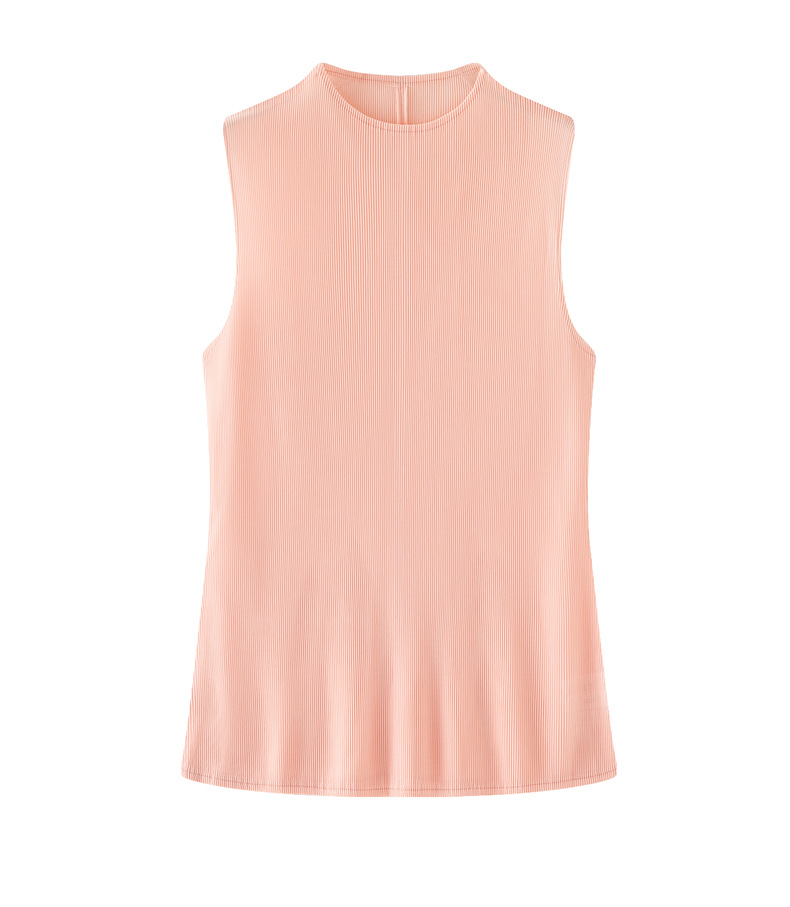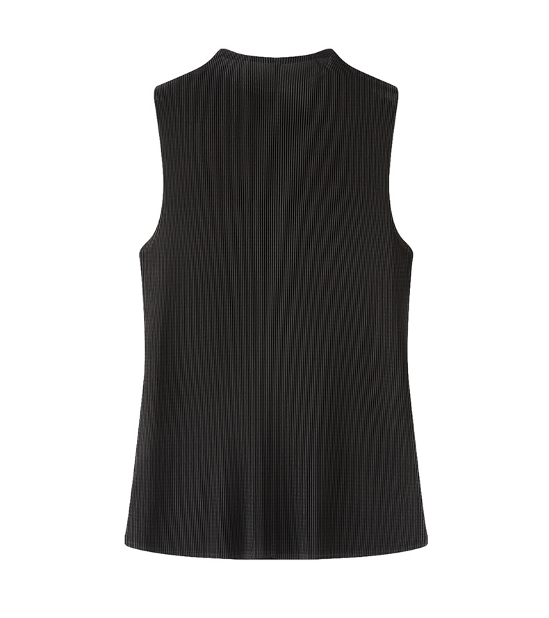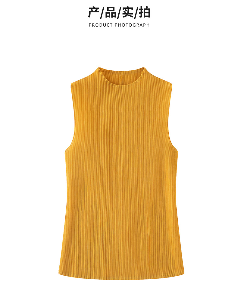미야케 탑 플리츠 조끼 2025 신상 민소매 하이넥 조끼 여성 슬리밍 아우터 다용도 티셔츠 탑