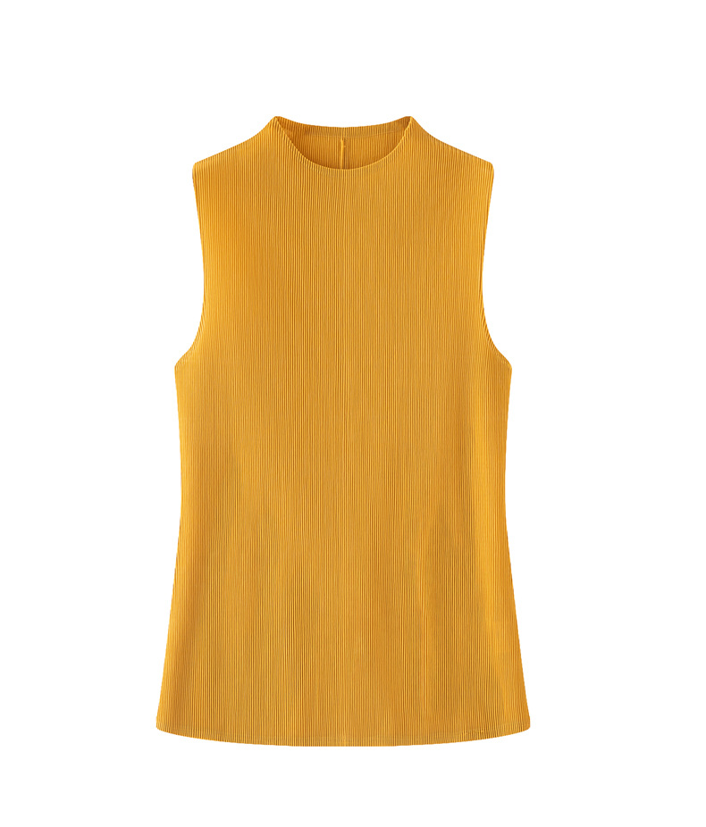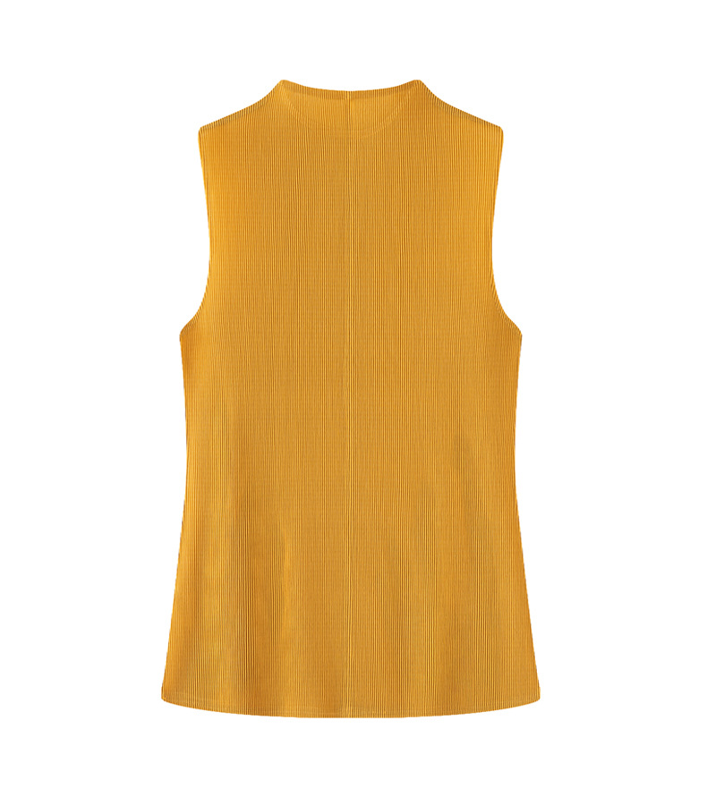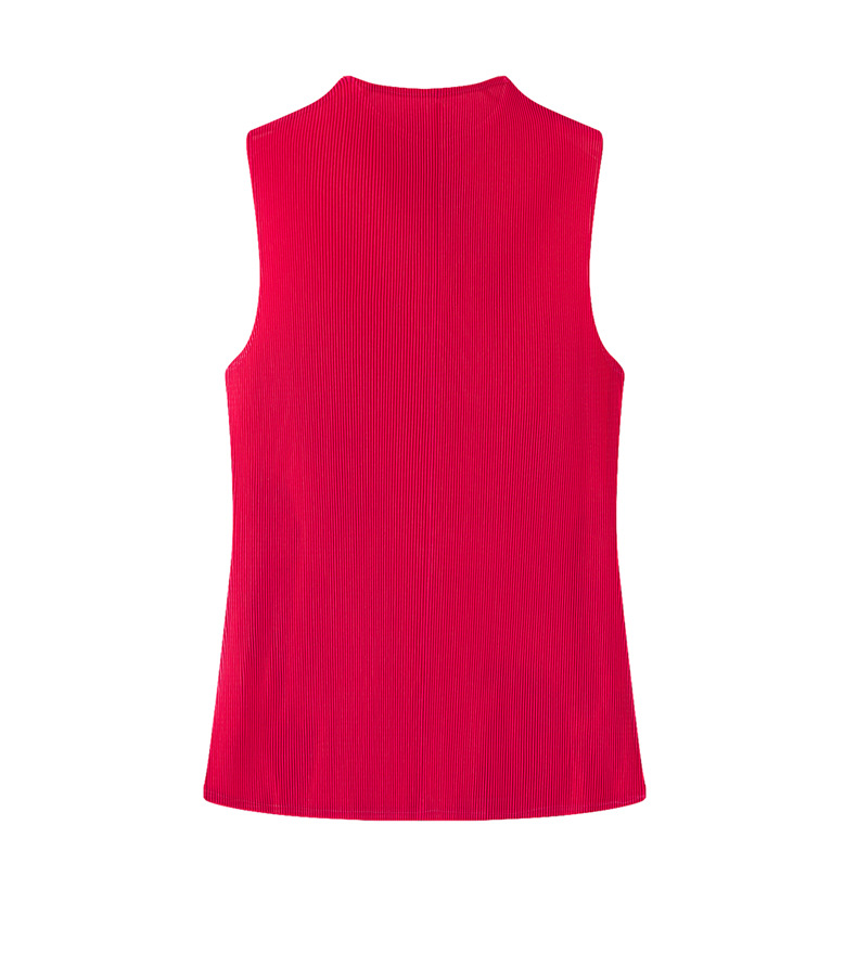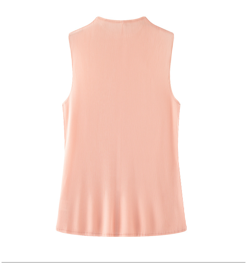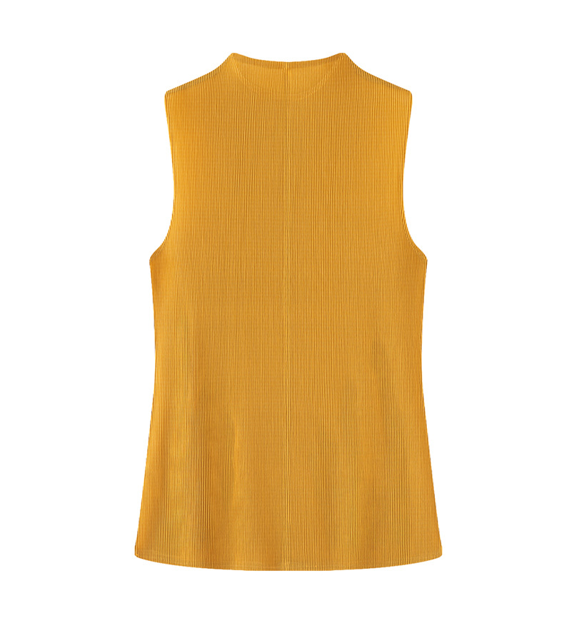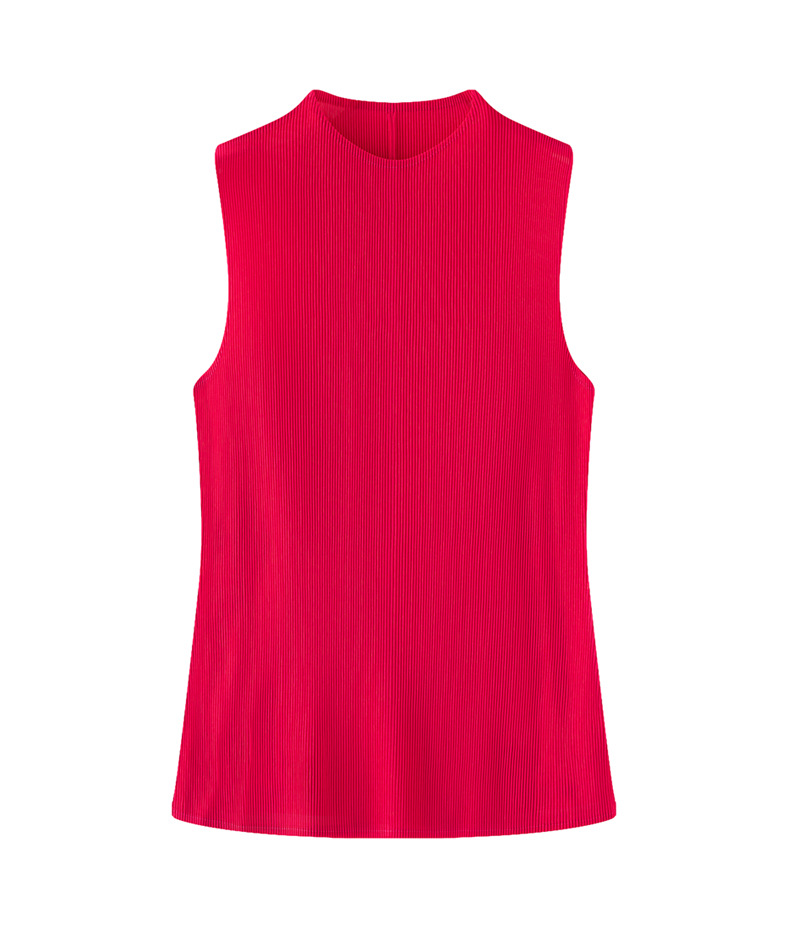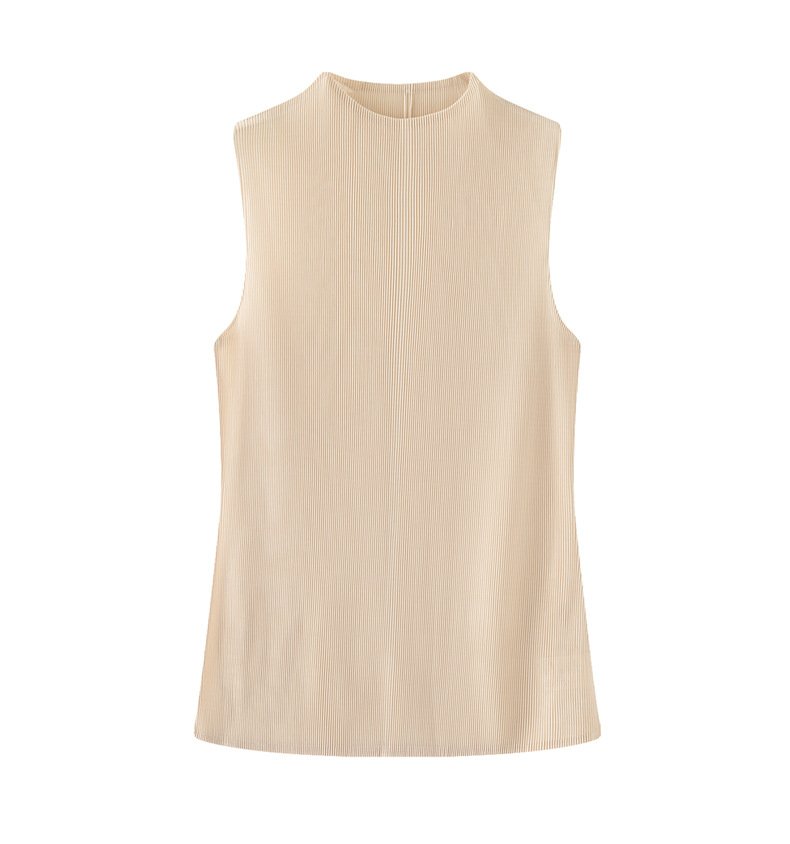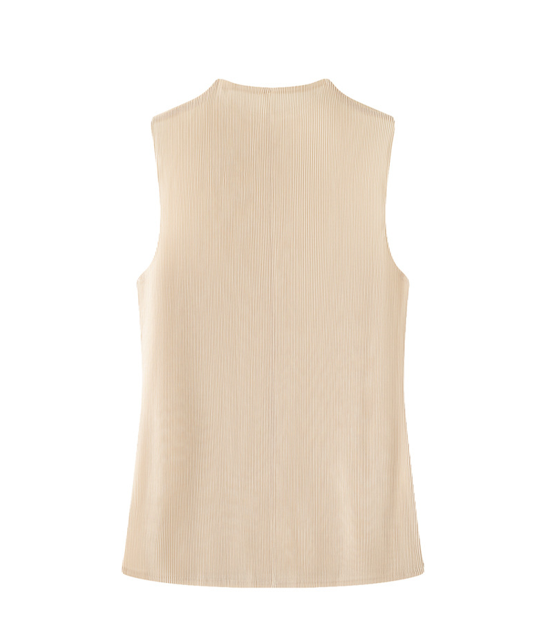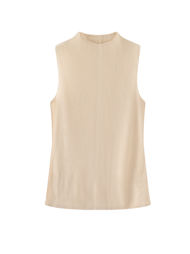 미야케 탑 플리츠 조끼 2025 신상 민소매 하이넥 조끼 여성 슬리밍 아우터 다용도 티셔츠 탑