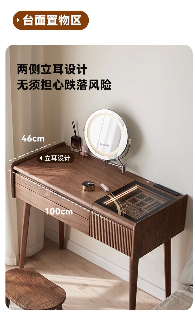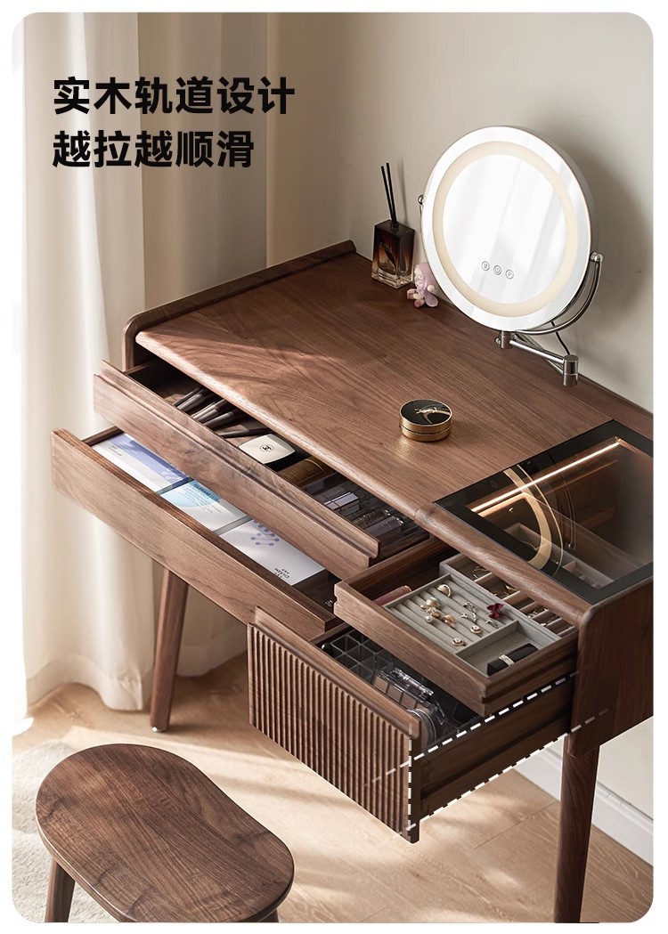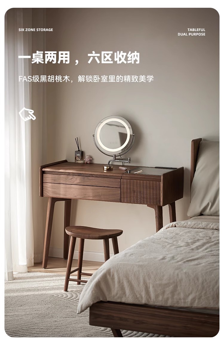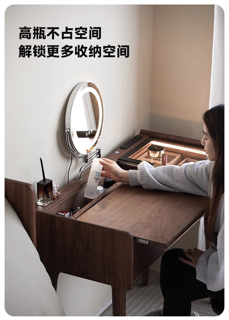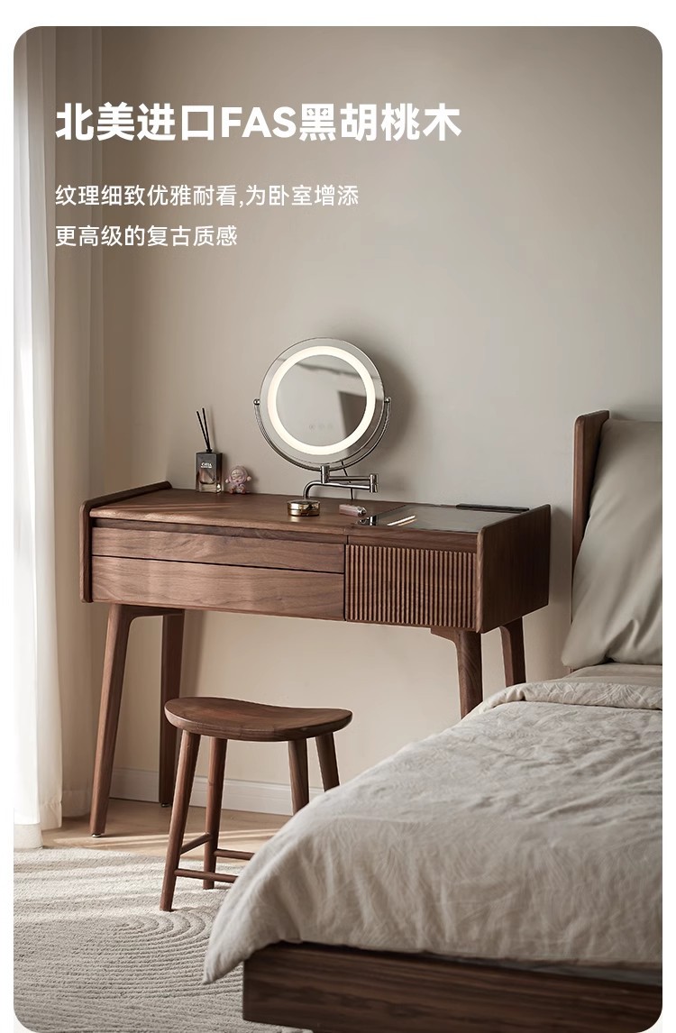 북미 검은 호두 나무 화장대 중고 책상 통합 작은 침실 단단한 나무 화장대 수납
