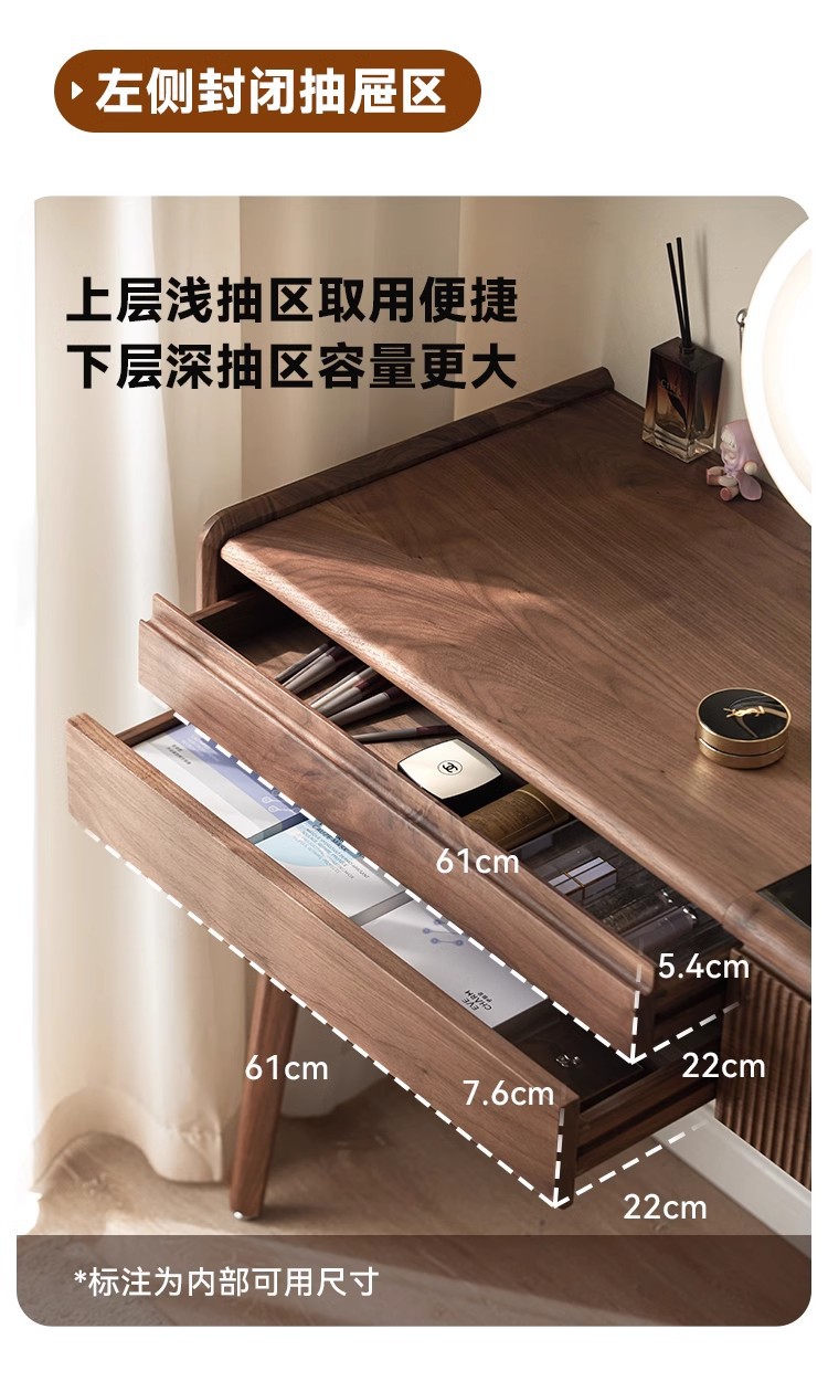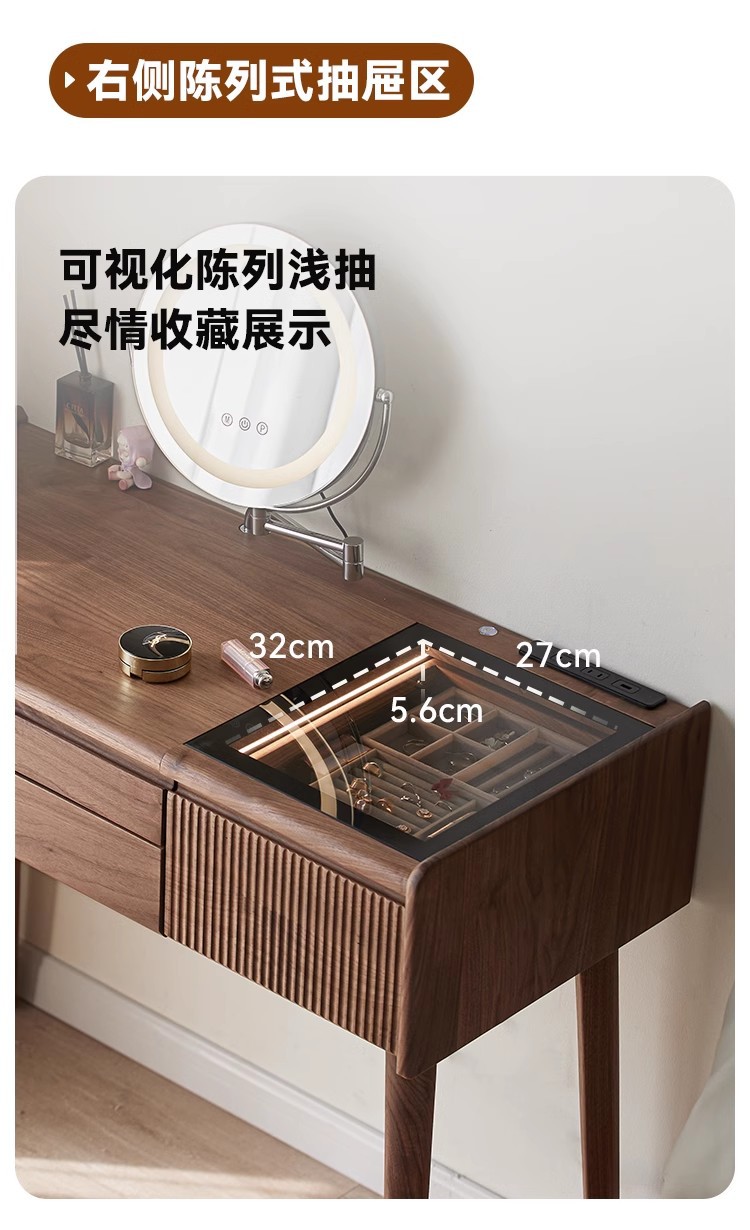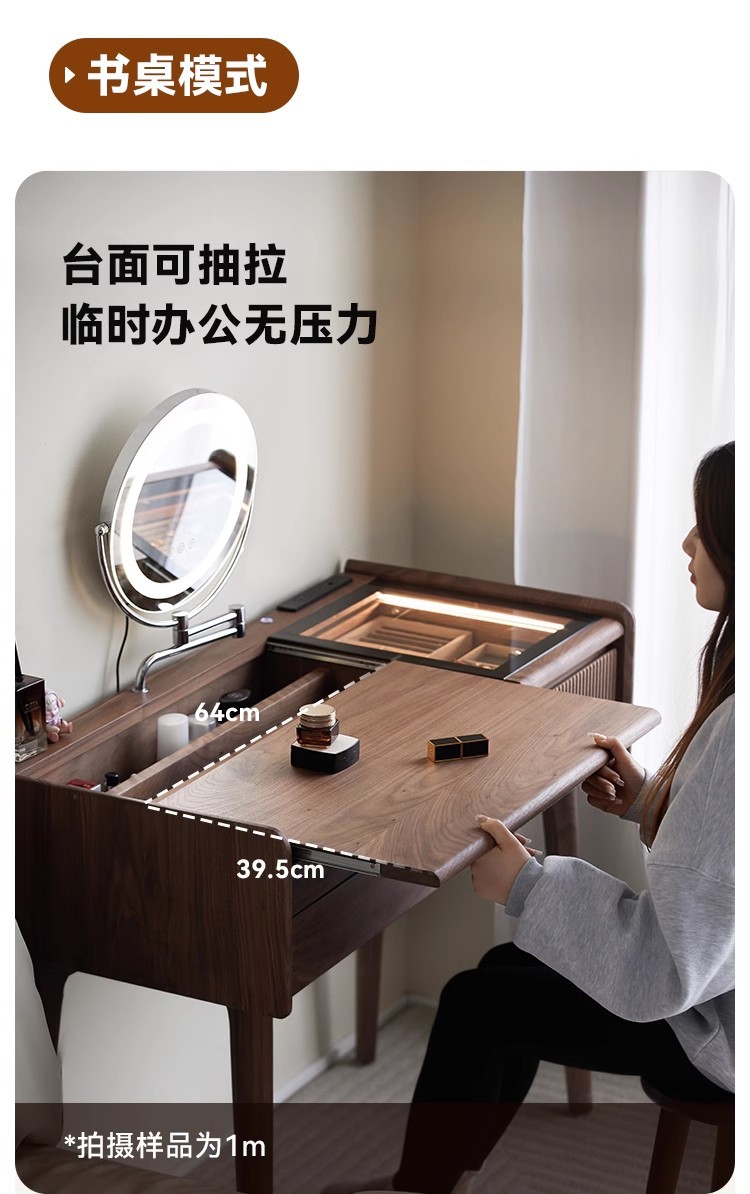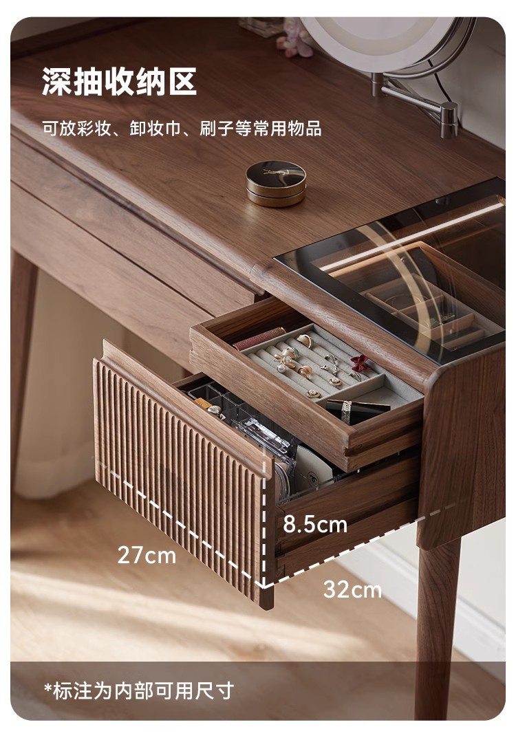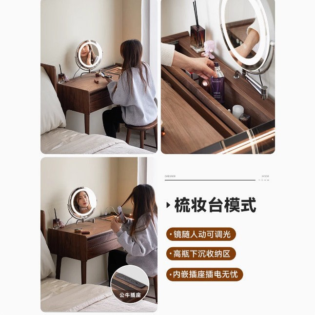 북미 검은 호두 나무 화장대 중고 책상 통합 작은 침실 단단한 나무 화장대 수납