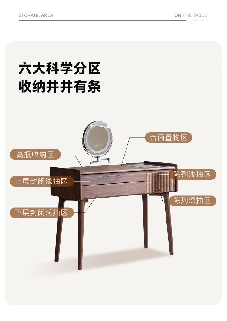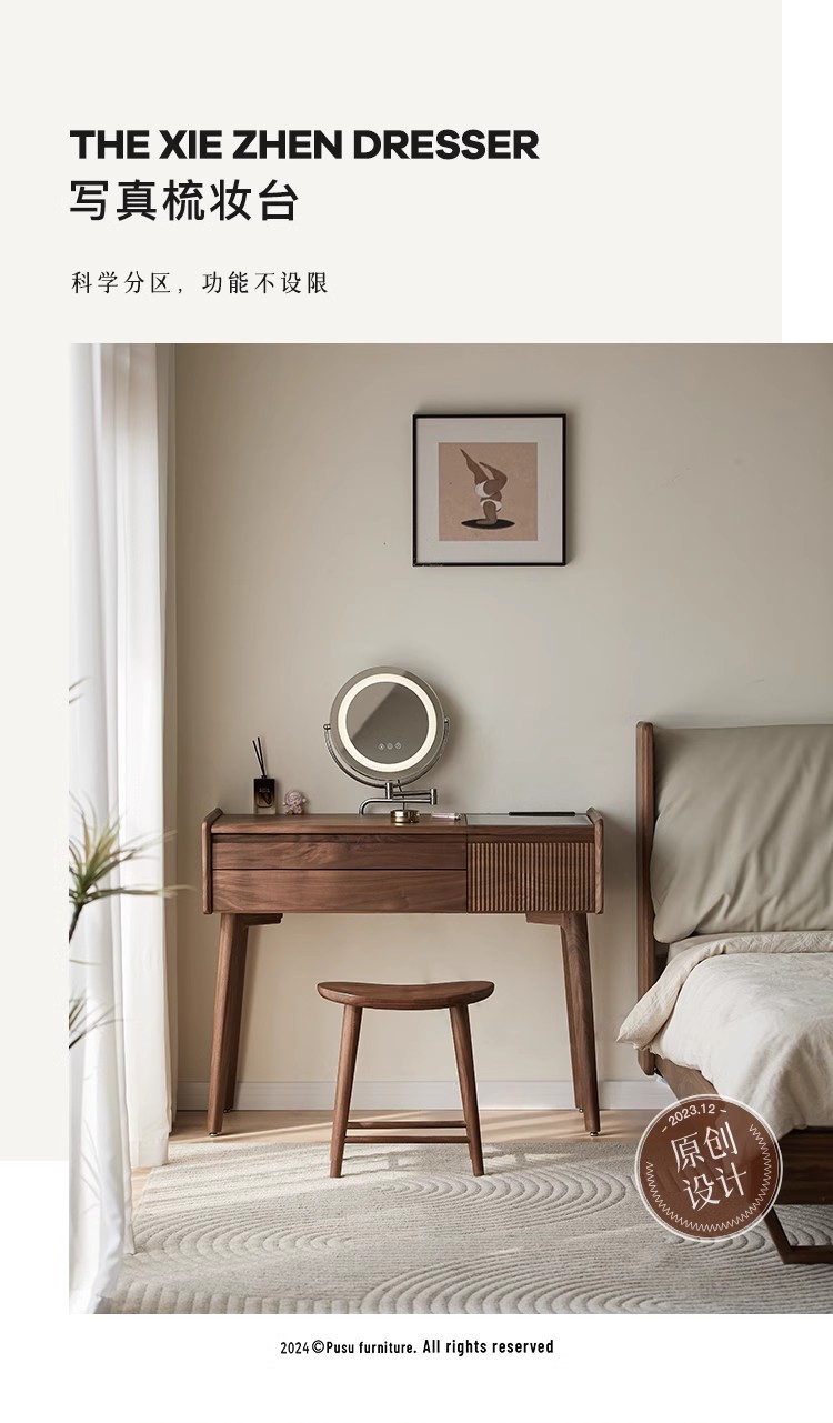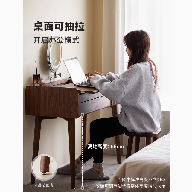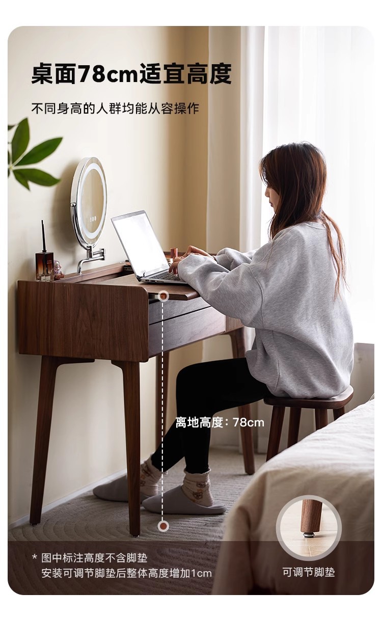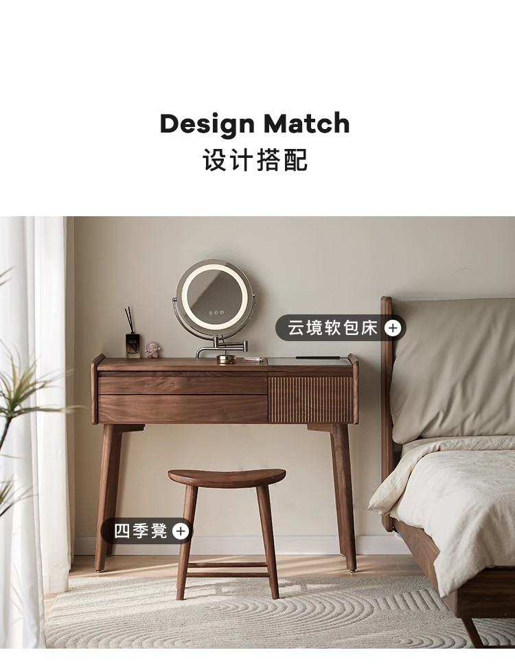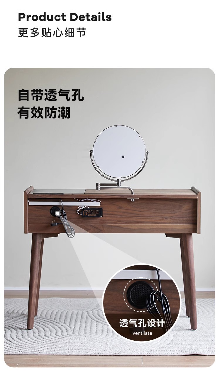 북미 검은 호두 나무 화장대 중고 책상 통합 작은 침실 단단한 나무 화장대 수납