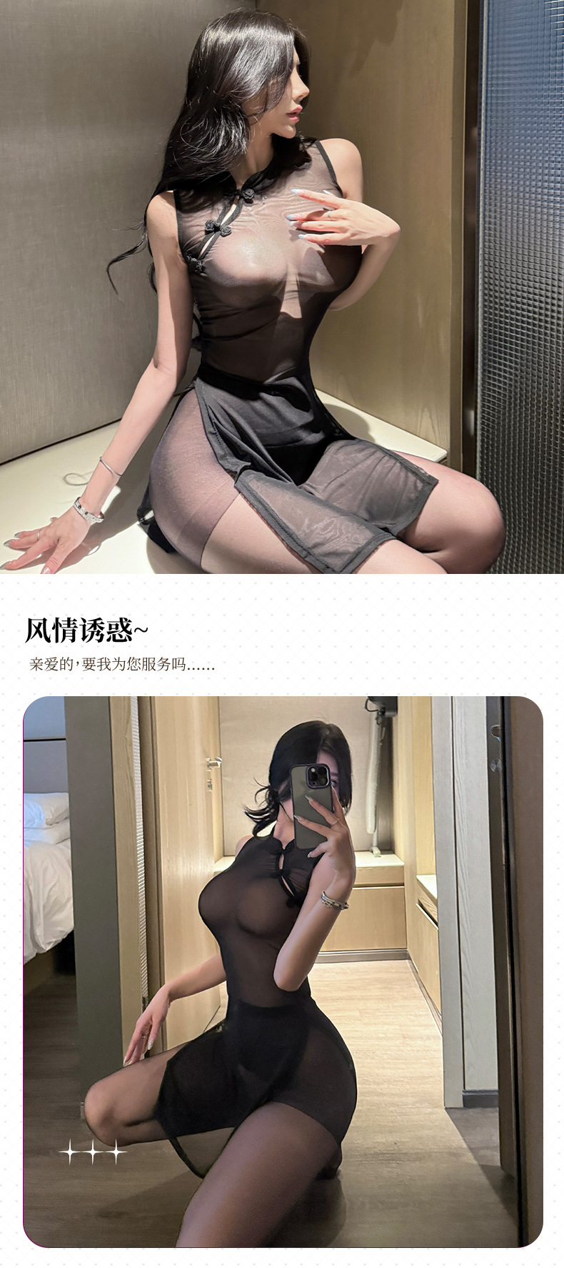 4476 섹시 시스루 치파오 + S1 블랙 레이스 스타킹