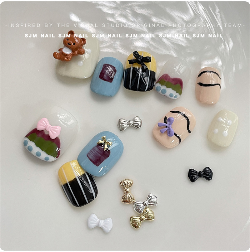 일본과 한국의 네일 아트 미니 활 4*4mm 금속 네일 아트 쥬얼리 절묘한 리본 나비 넥타이 네일 DIY 액세서리