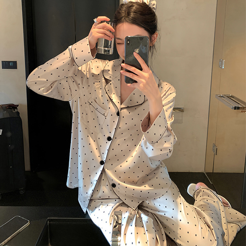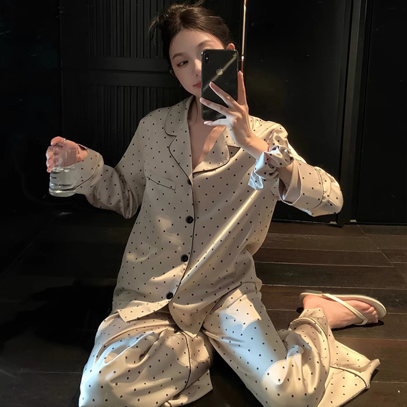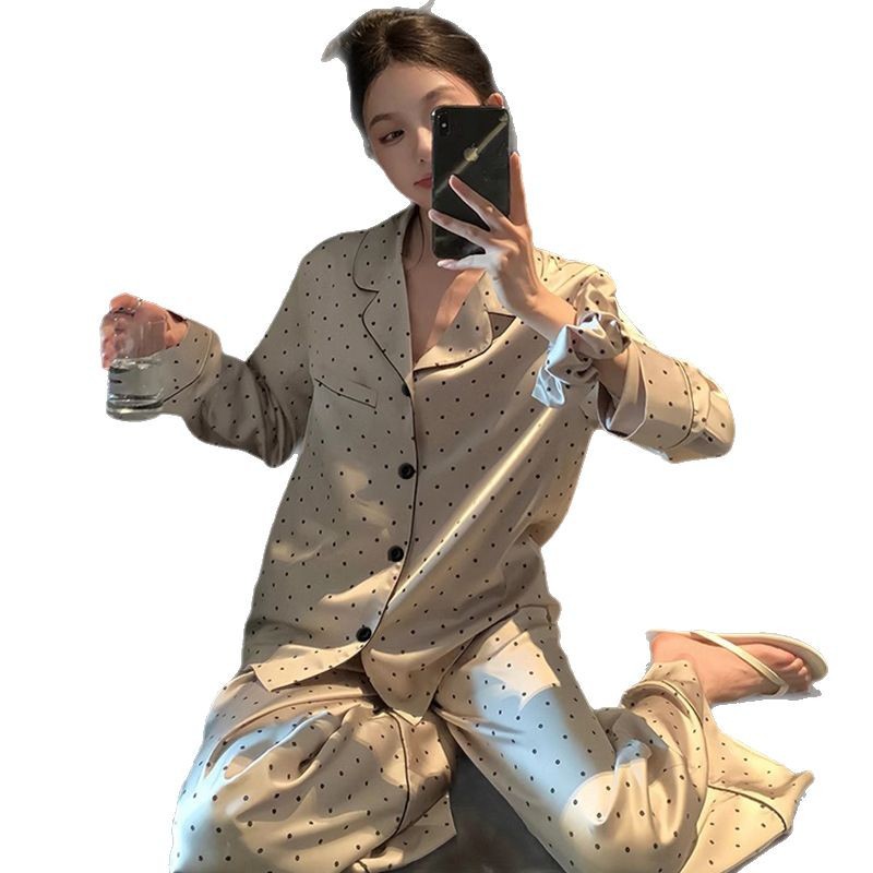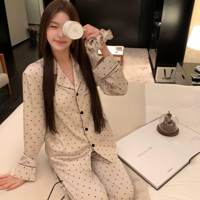 2025 새로운 봄, 여름 잠옷 여성 카디건 긴팔 가정 의류 얼음 실크 캐주얼 인터넷 연예인 스타일 한국어 버전