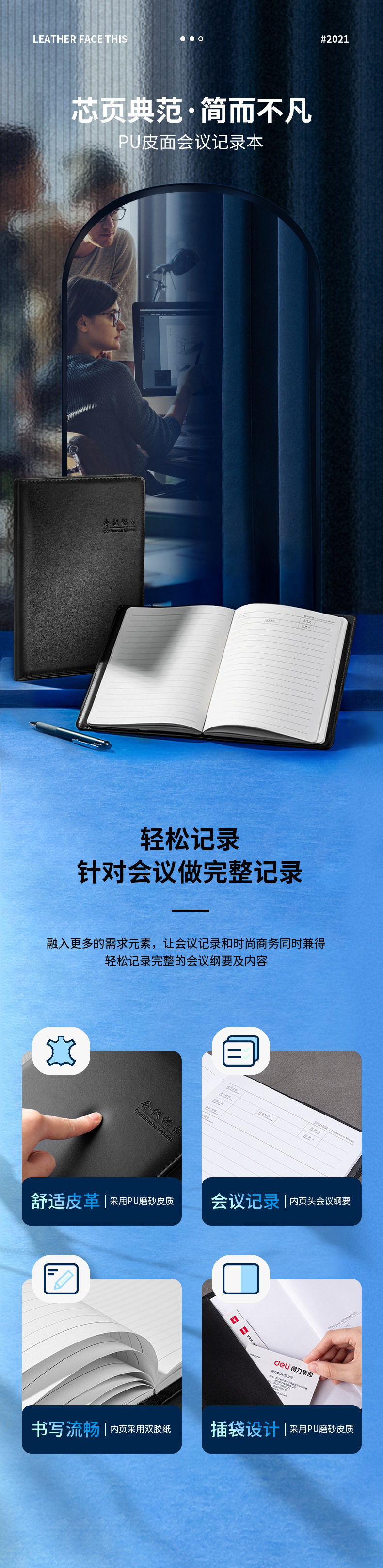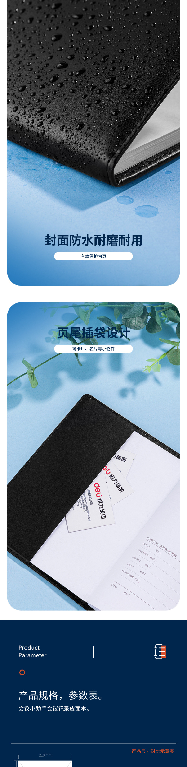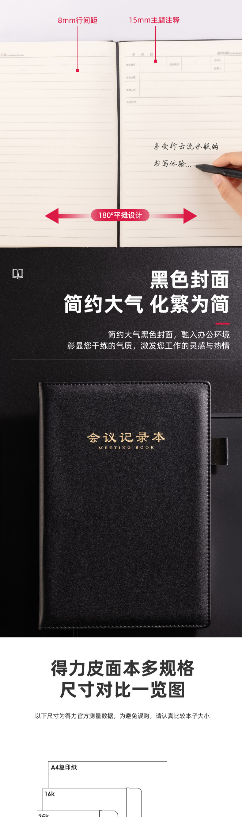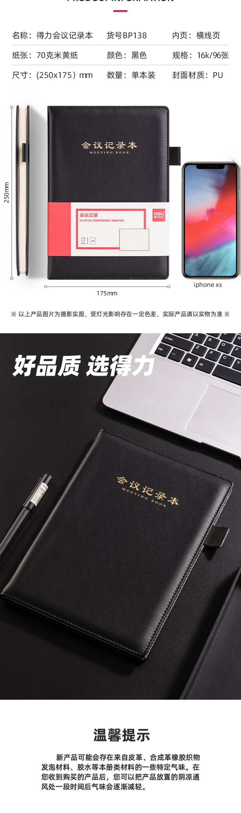 델리 7949 노트 문구 16K 80페이지 회의 노트 비즈니스 가죽 노트 대형 노트 심플 데일리